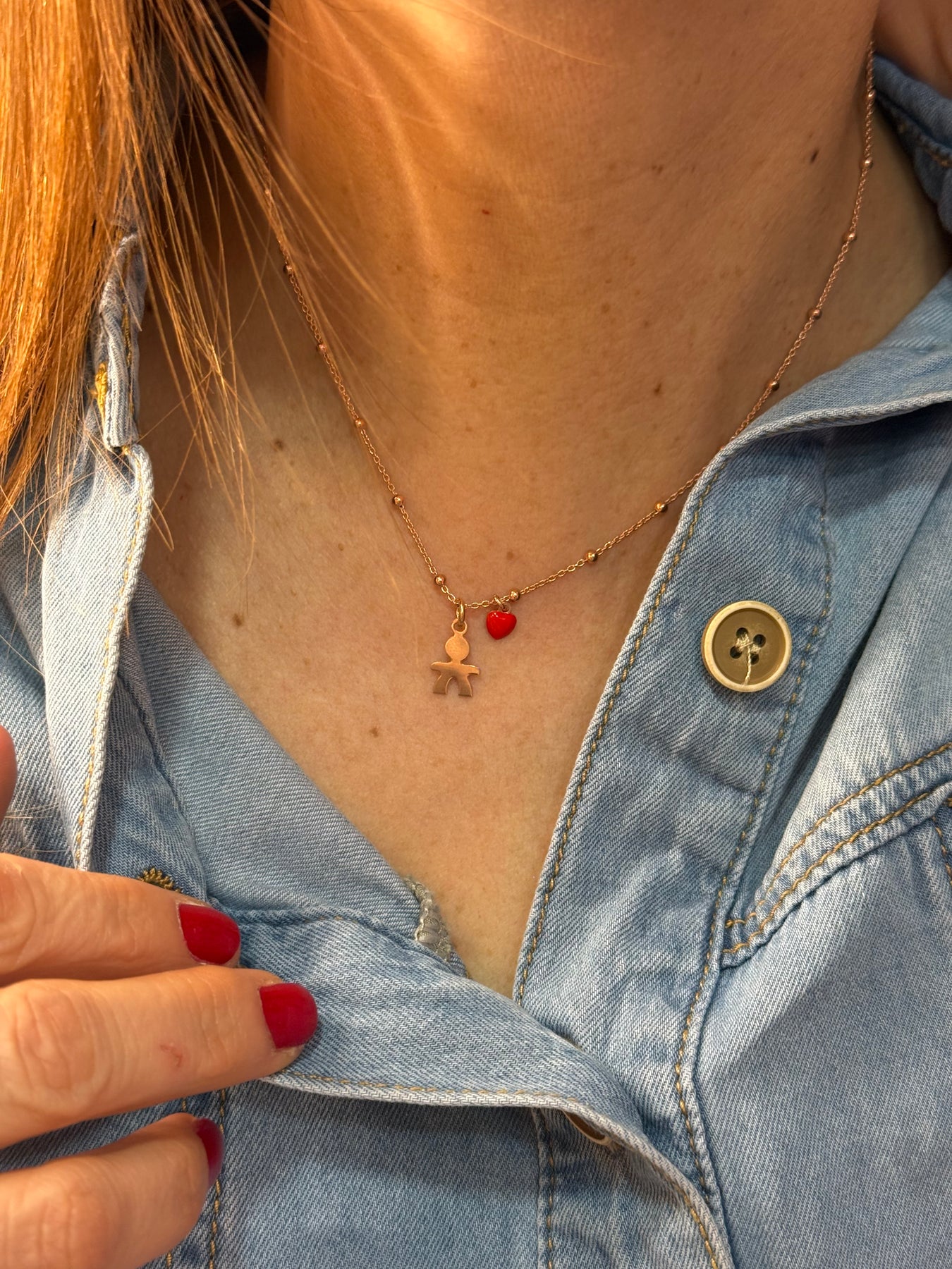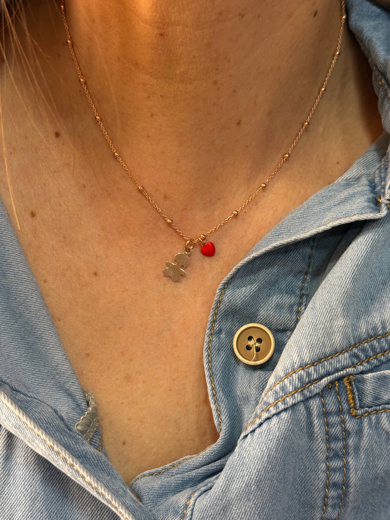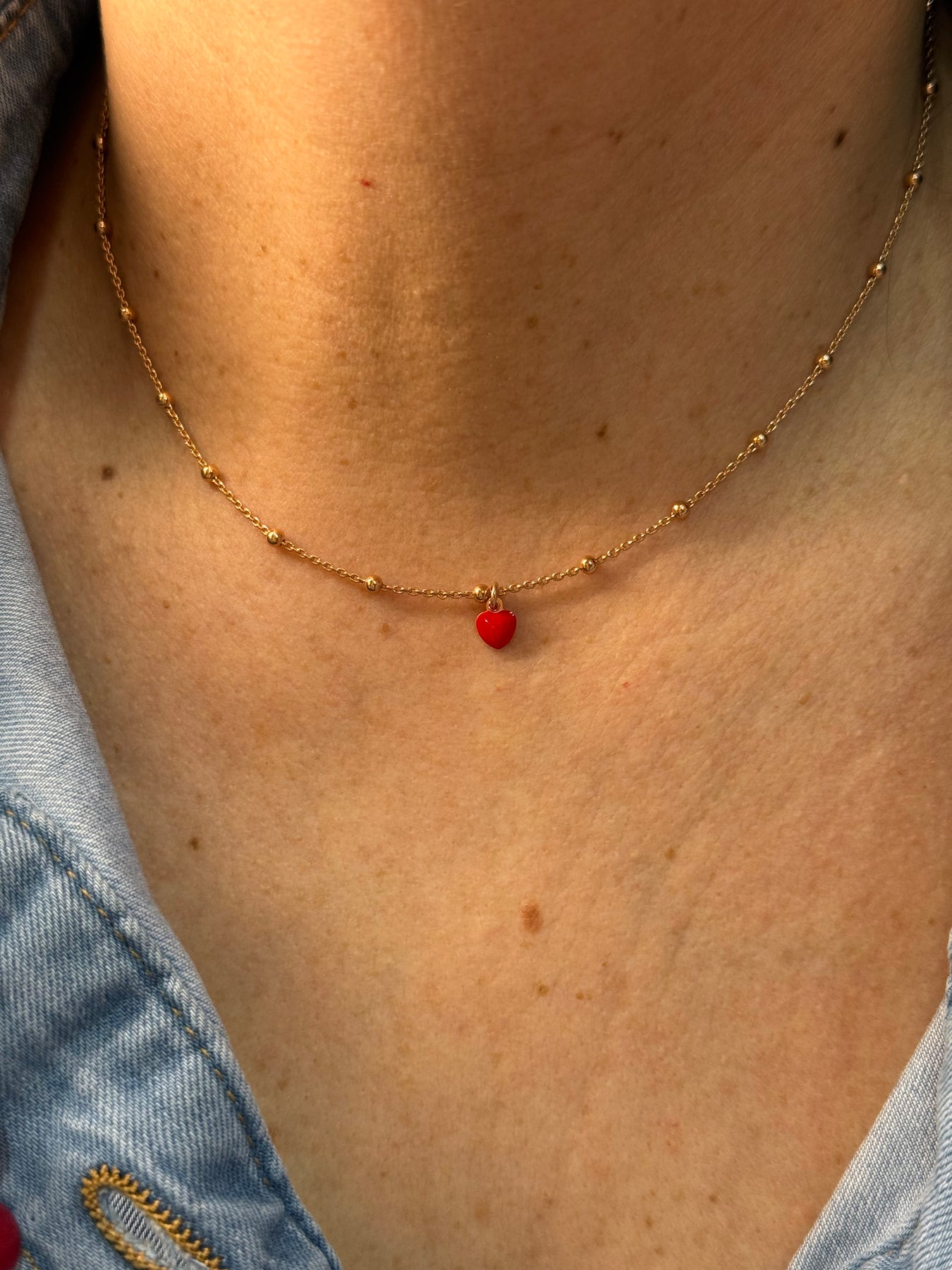 Collana in argento 925 con mini cuore bombato smaltato ambo i lati