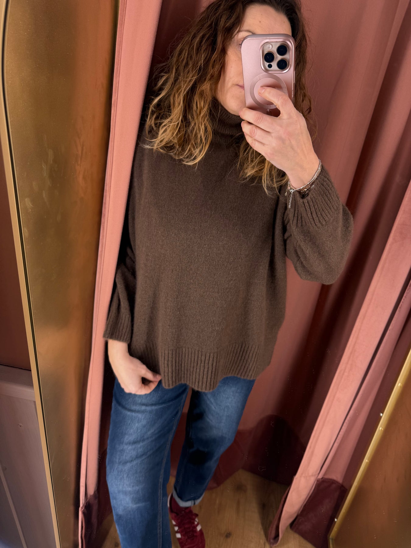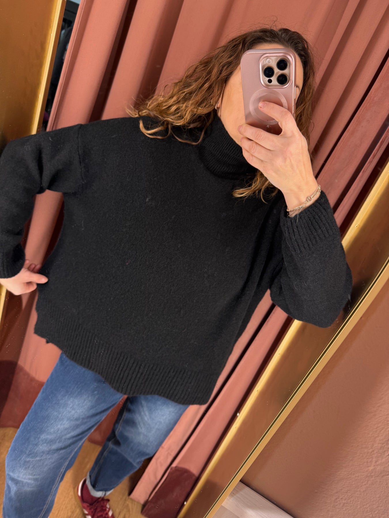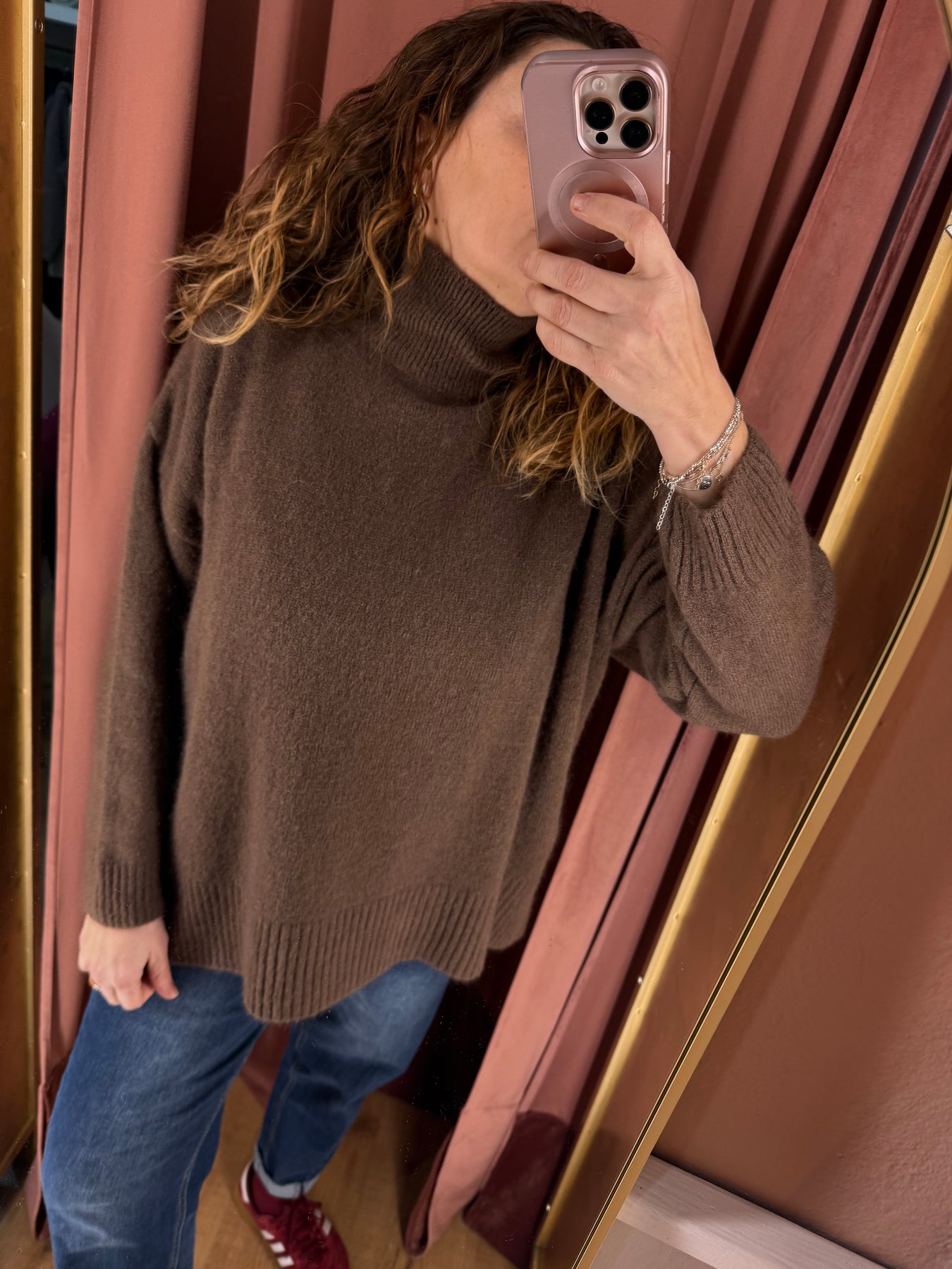 Maglione dolcevita tagliato a scatola ,in morbissima e fluffy lana alpaca