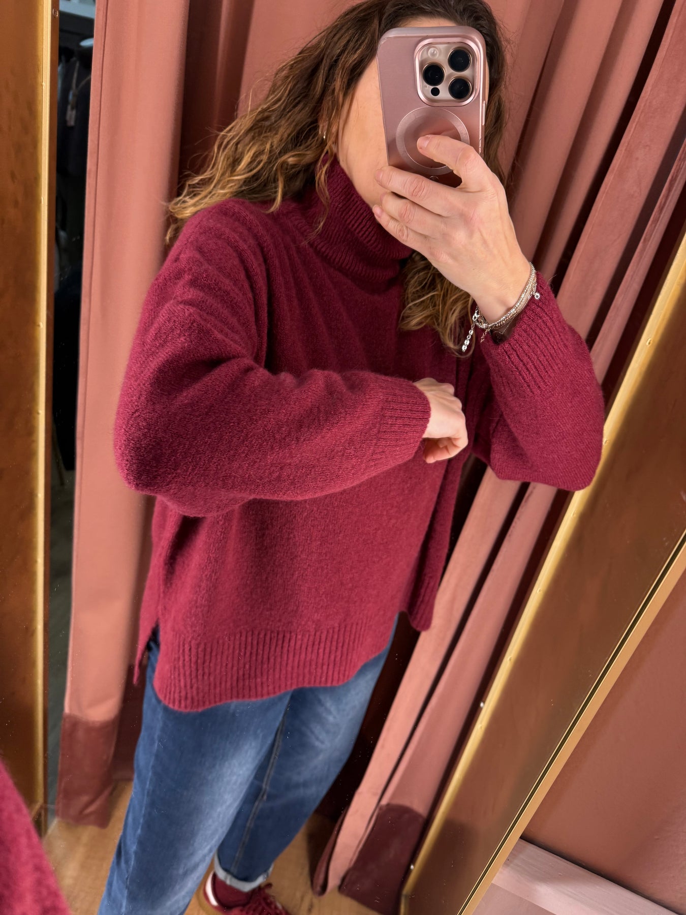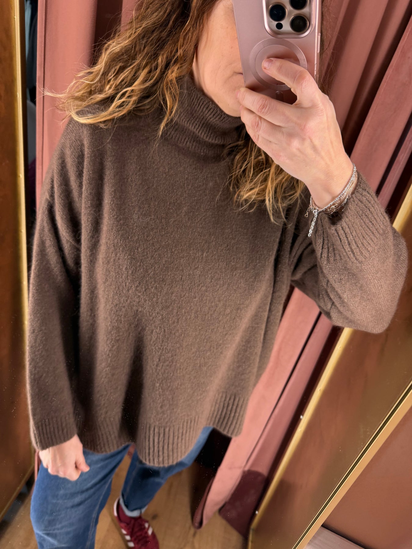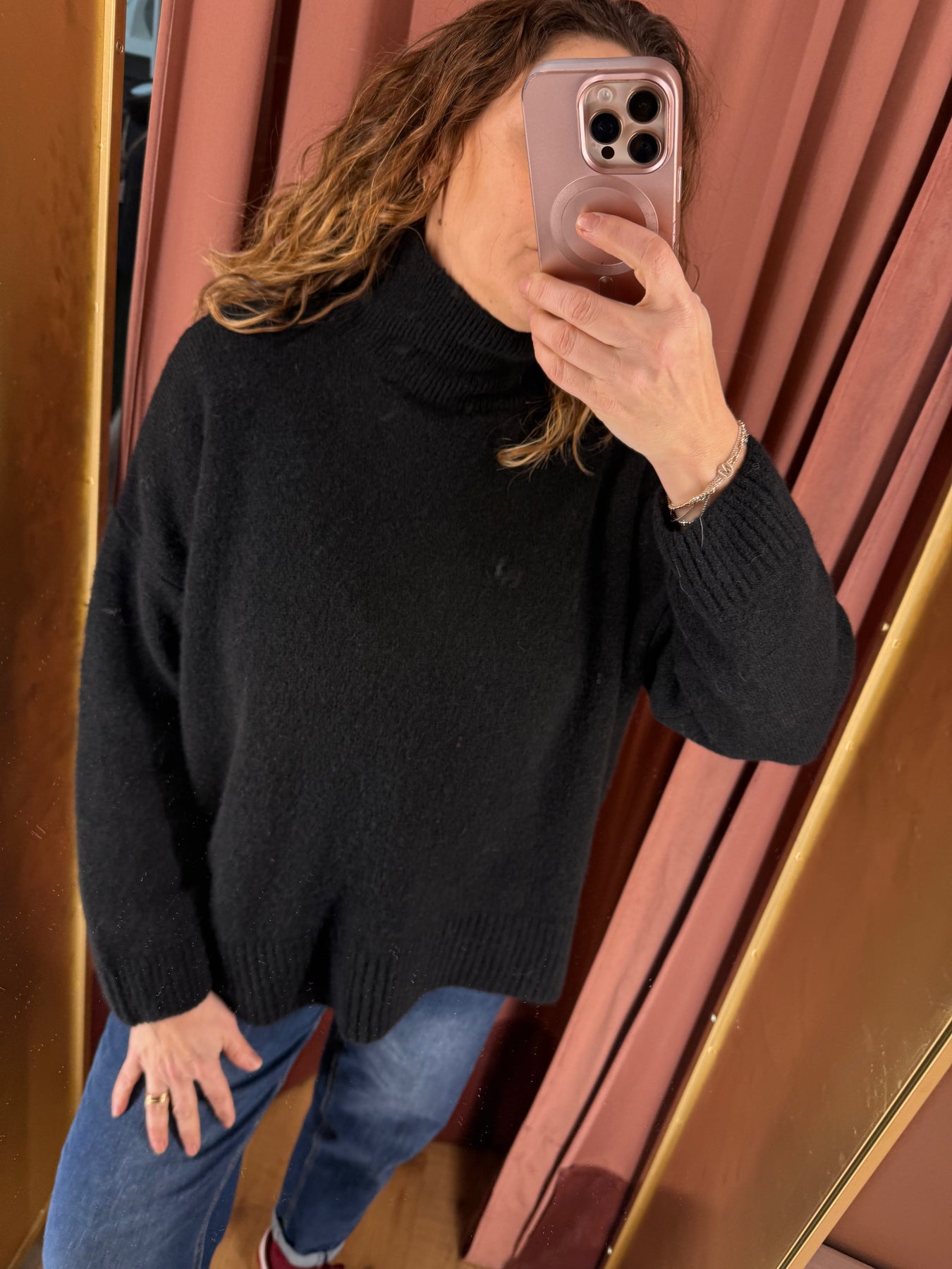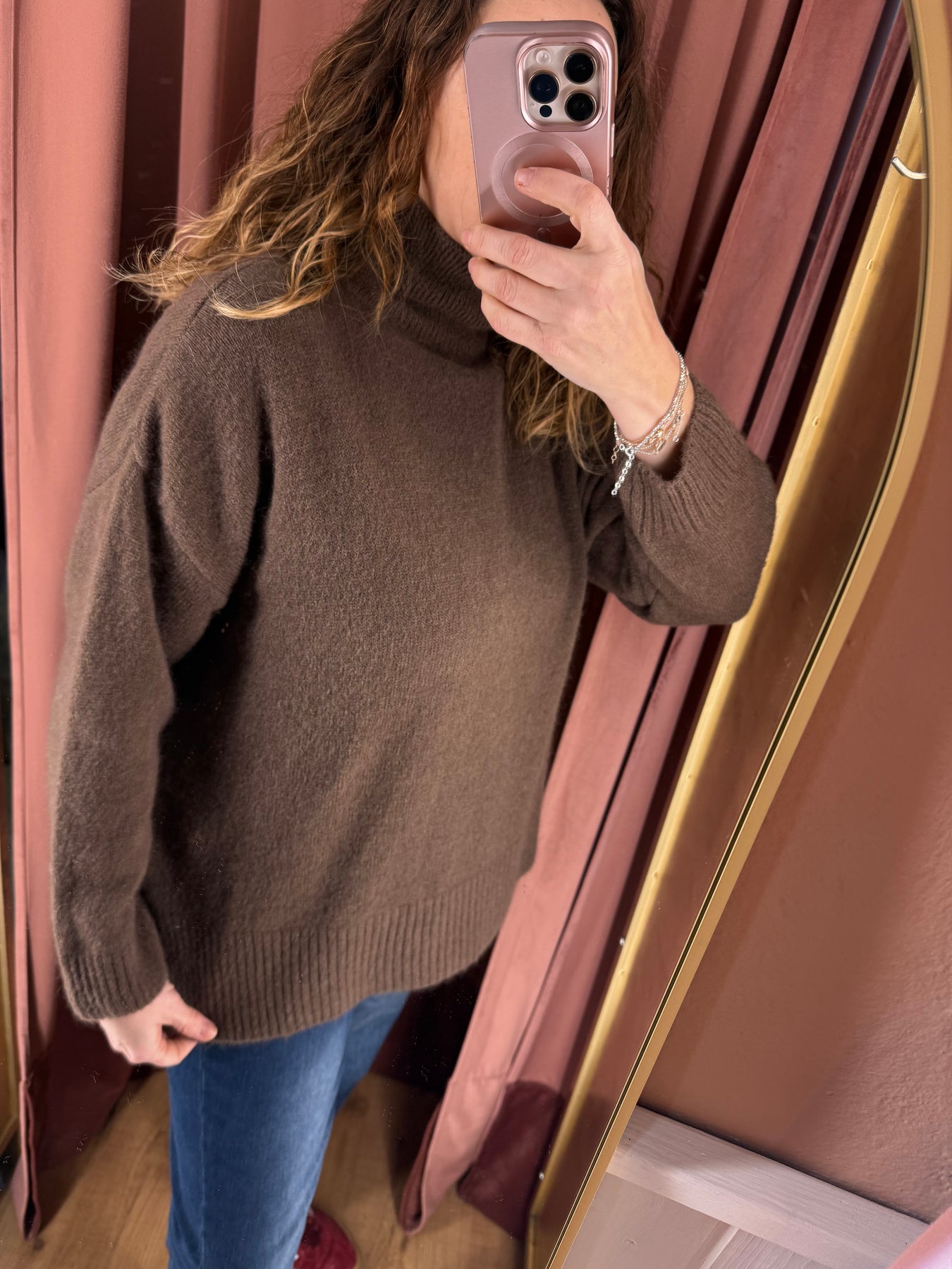 Maglione dolcevita tagliato a scatola ,in morbissima e fluffy lana alpaca