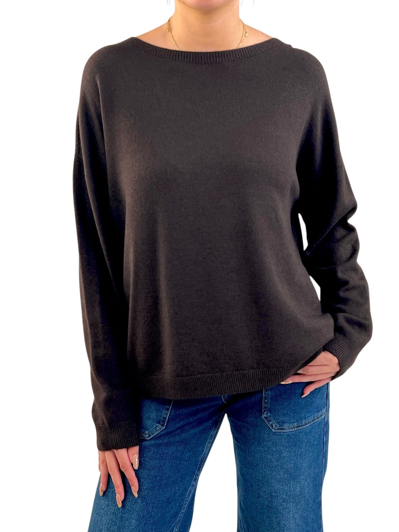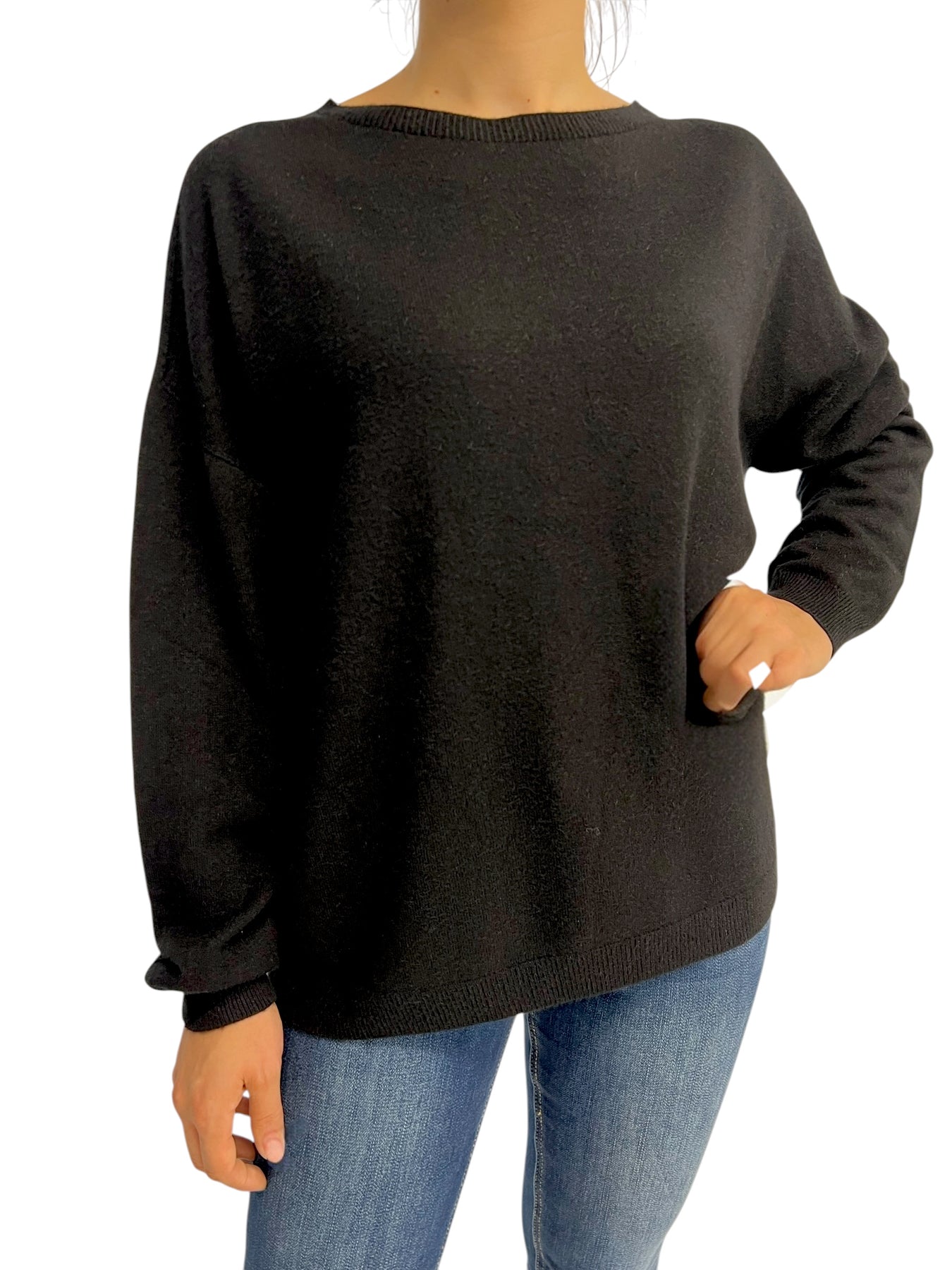 Maglione girocollo barchetta lungo , leggermente over e manica lunga tagli unica, vestibilita fino XL