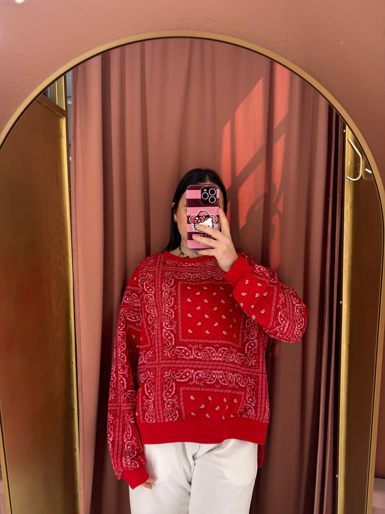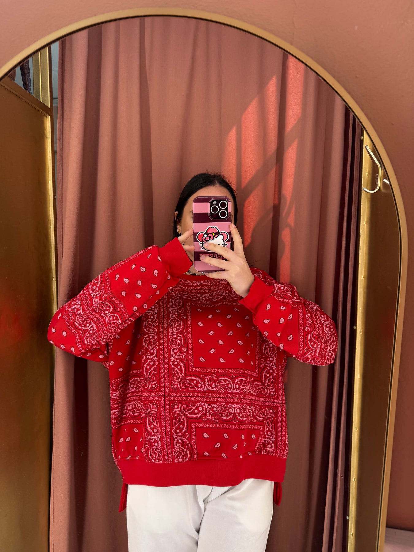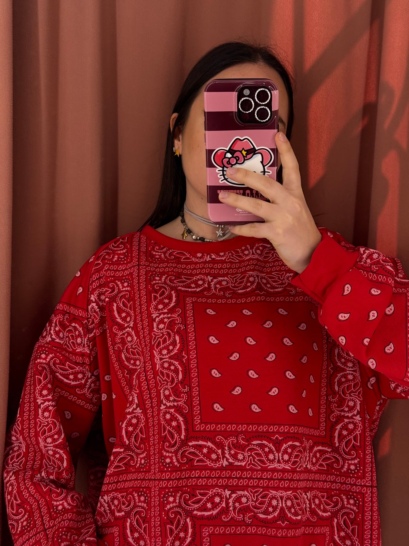 Felpa in cotone modello over , taglia unica, con disegno stampa bandana