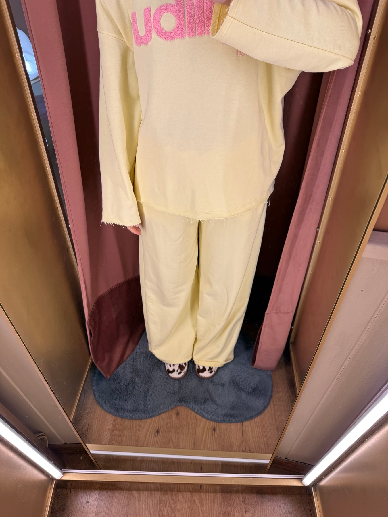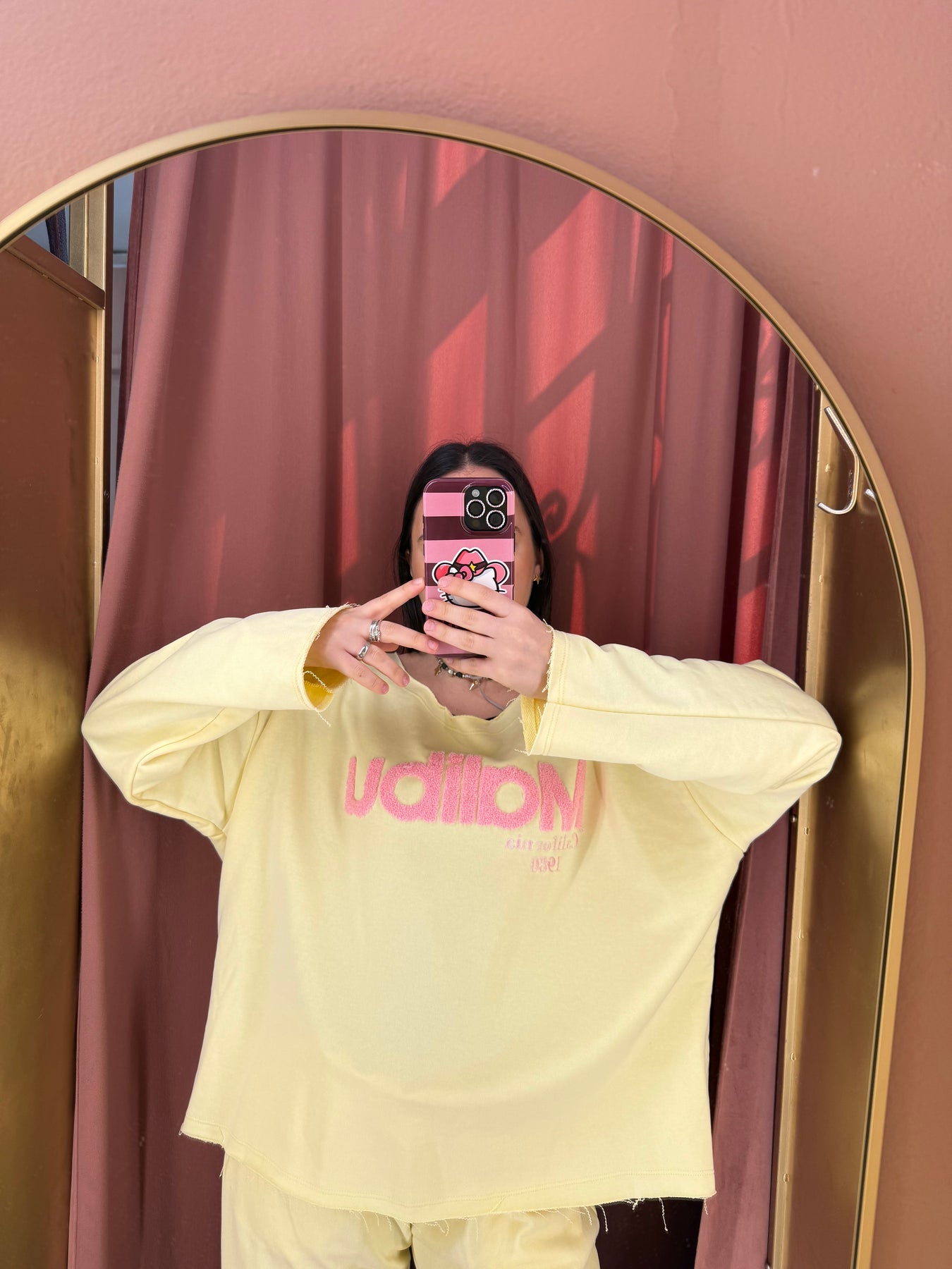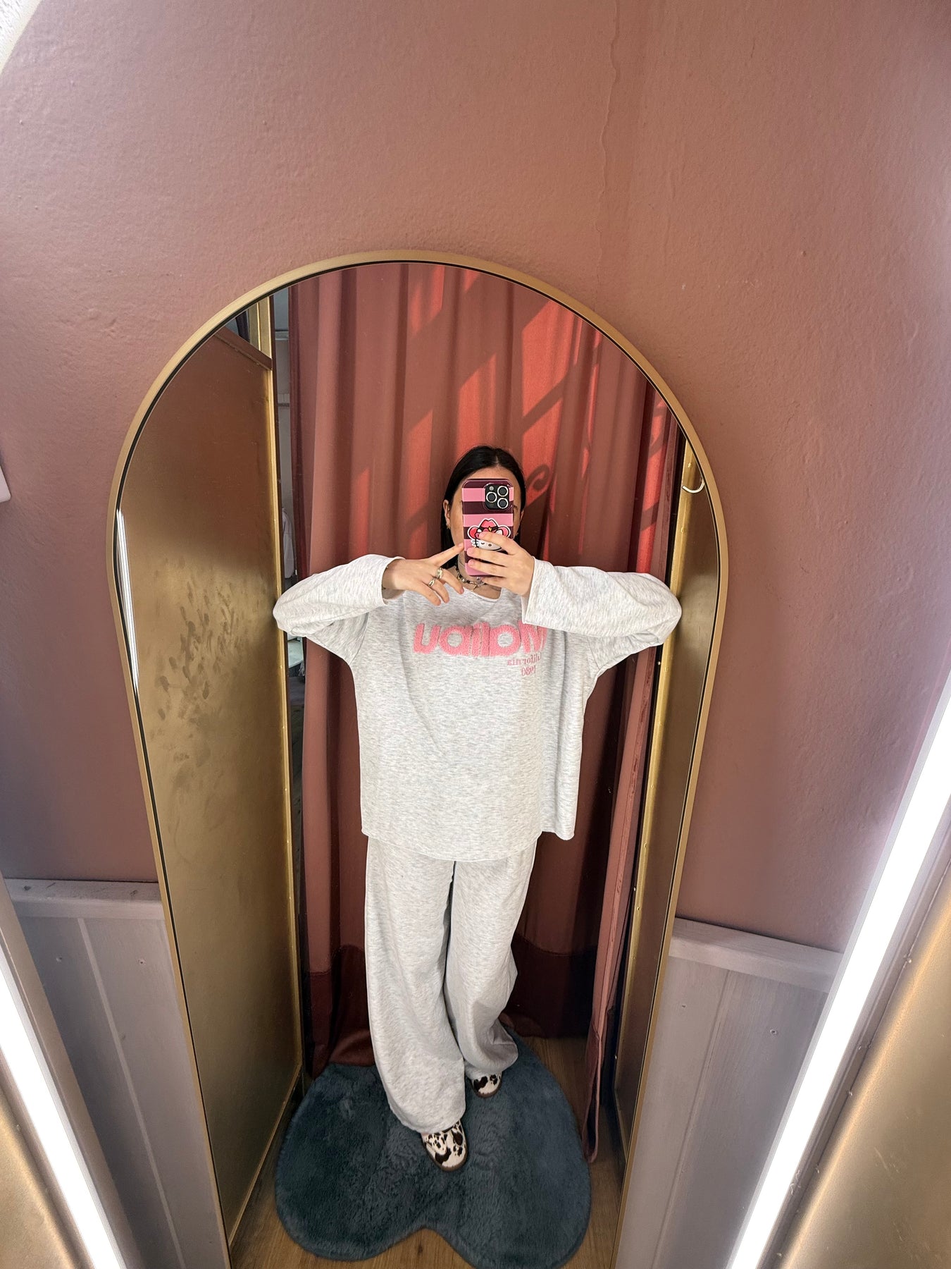 Tuta completa con scritta davanti , taglia unica, pantalone vita elasticizzata .