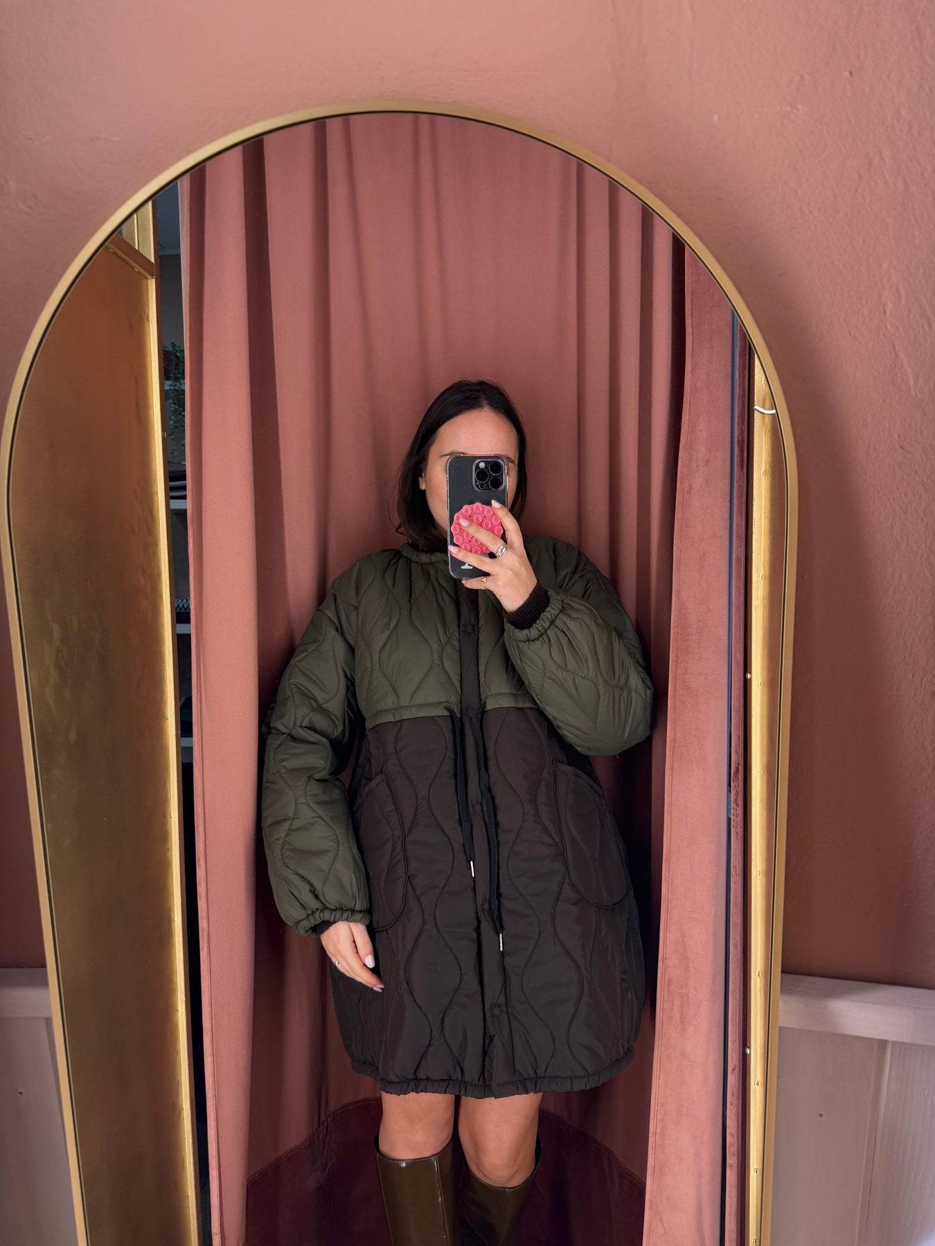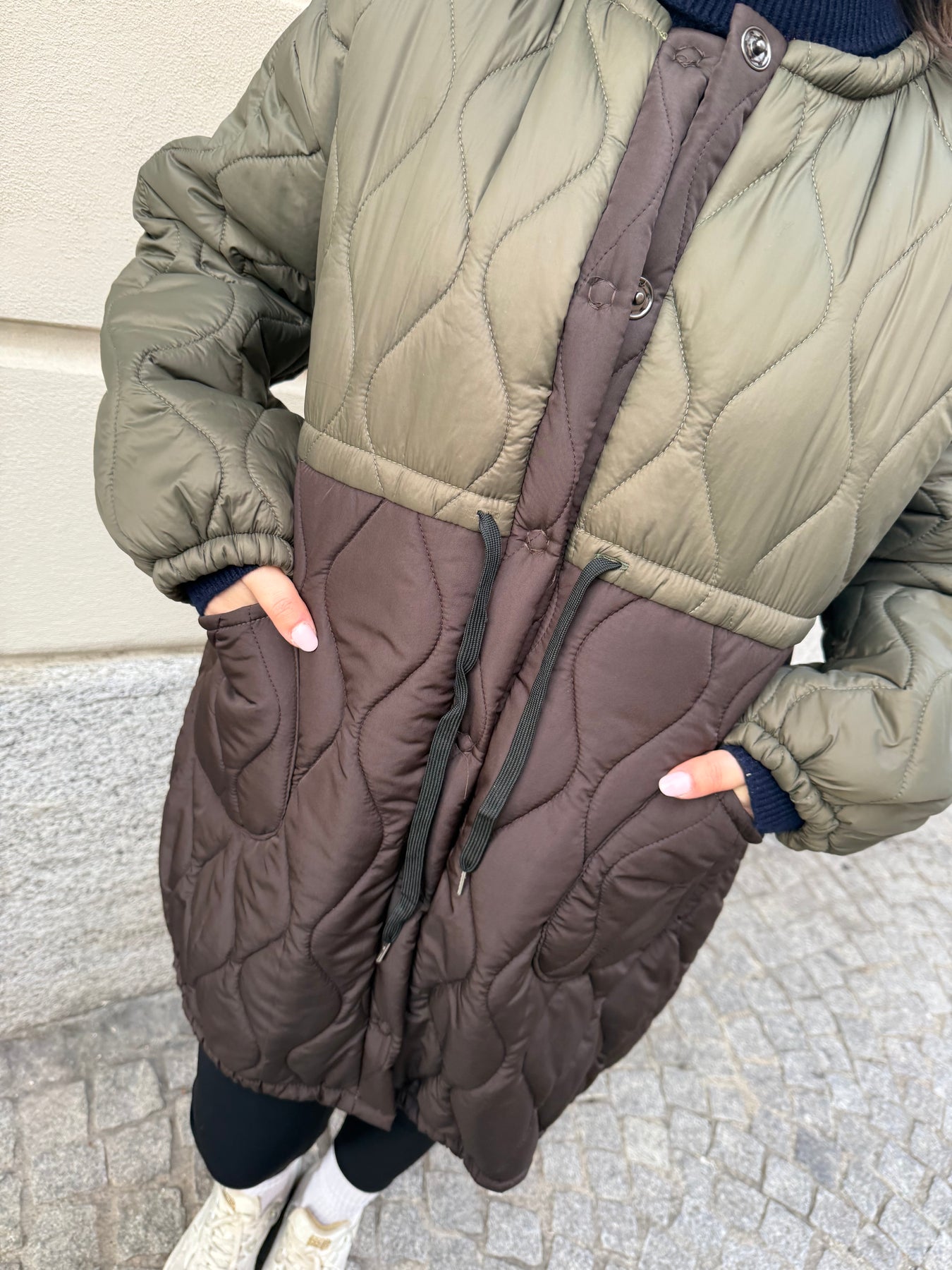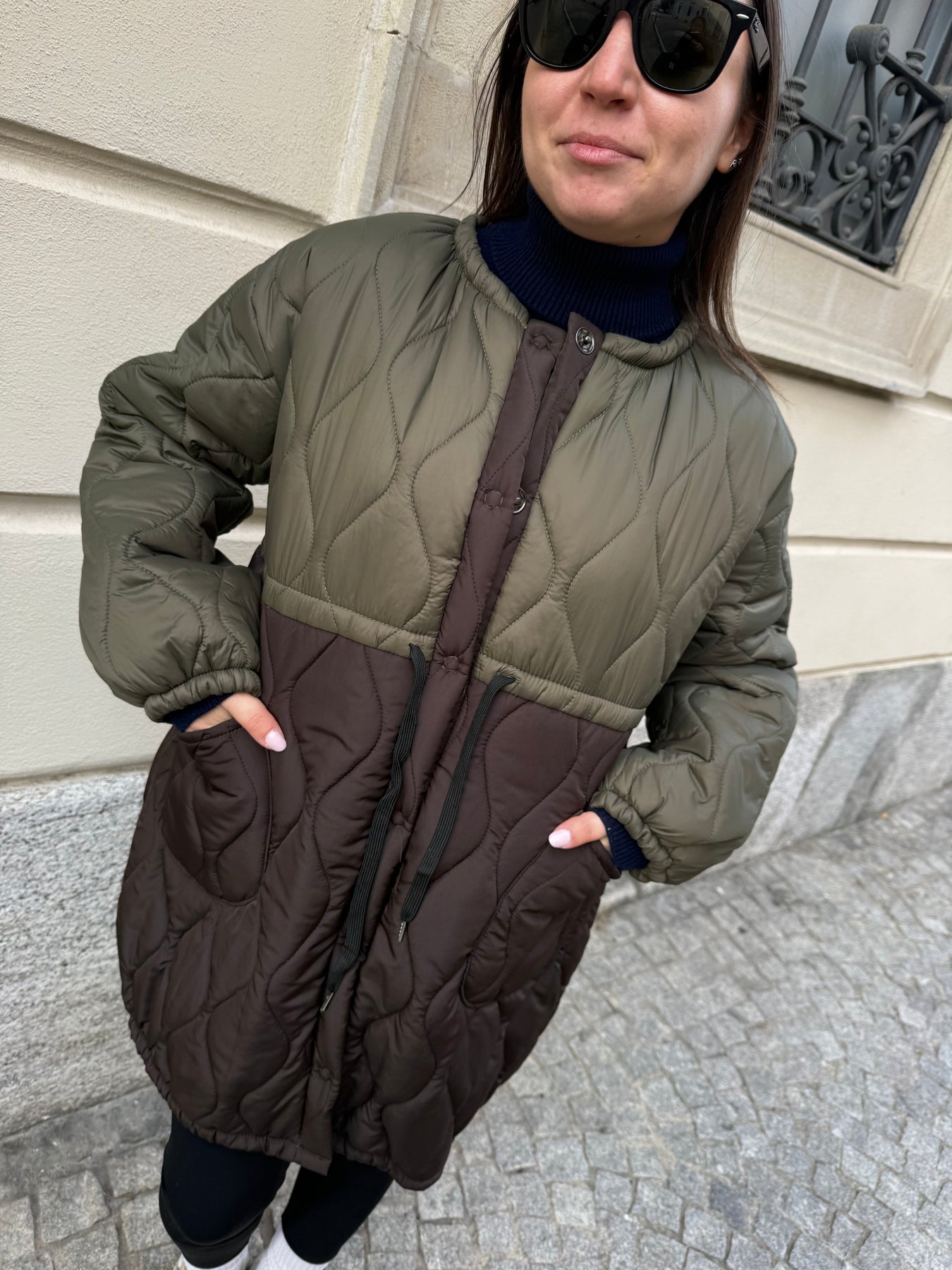 Piumino doppio colore verde e marrone , taglia unica.