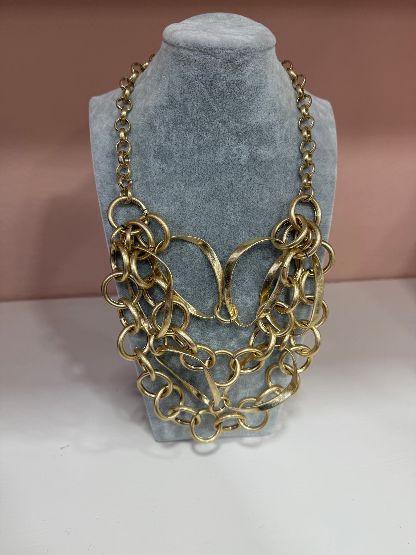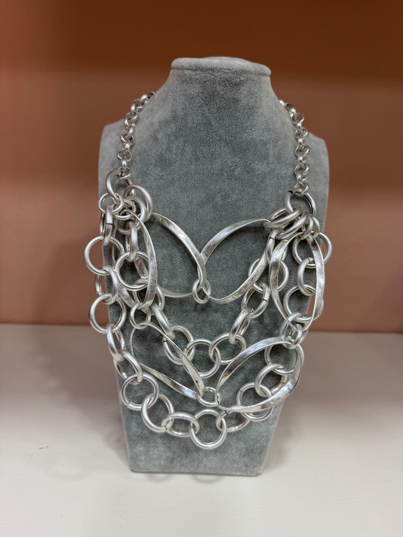 Collana a girocollo con un insieme di forme con moschettone , disponibile oro e argento