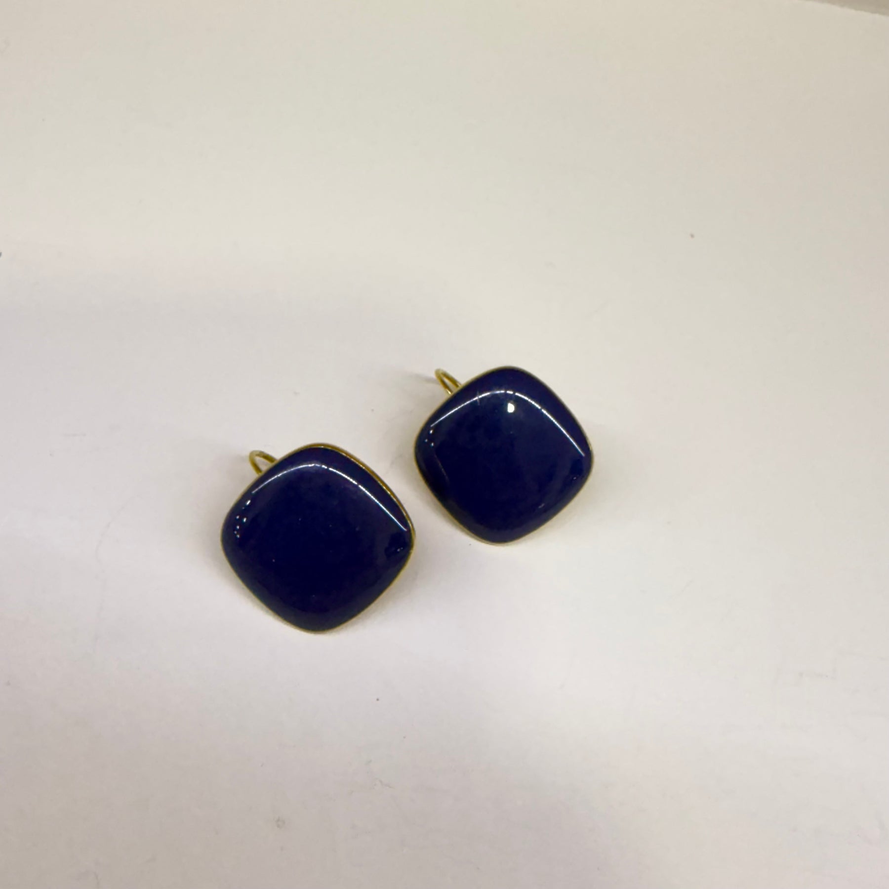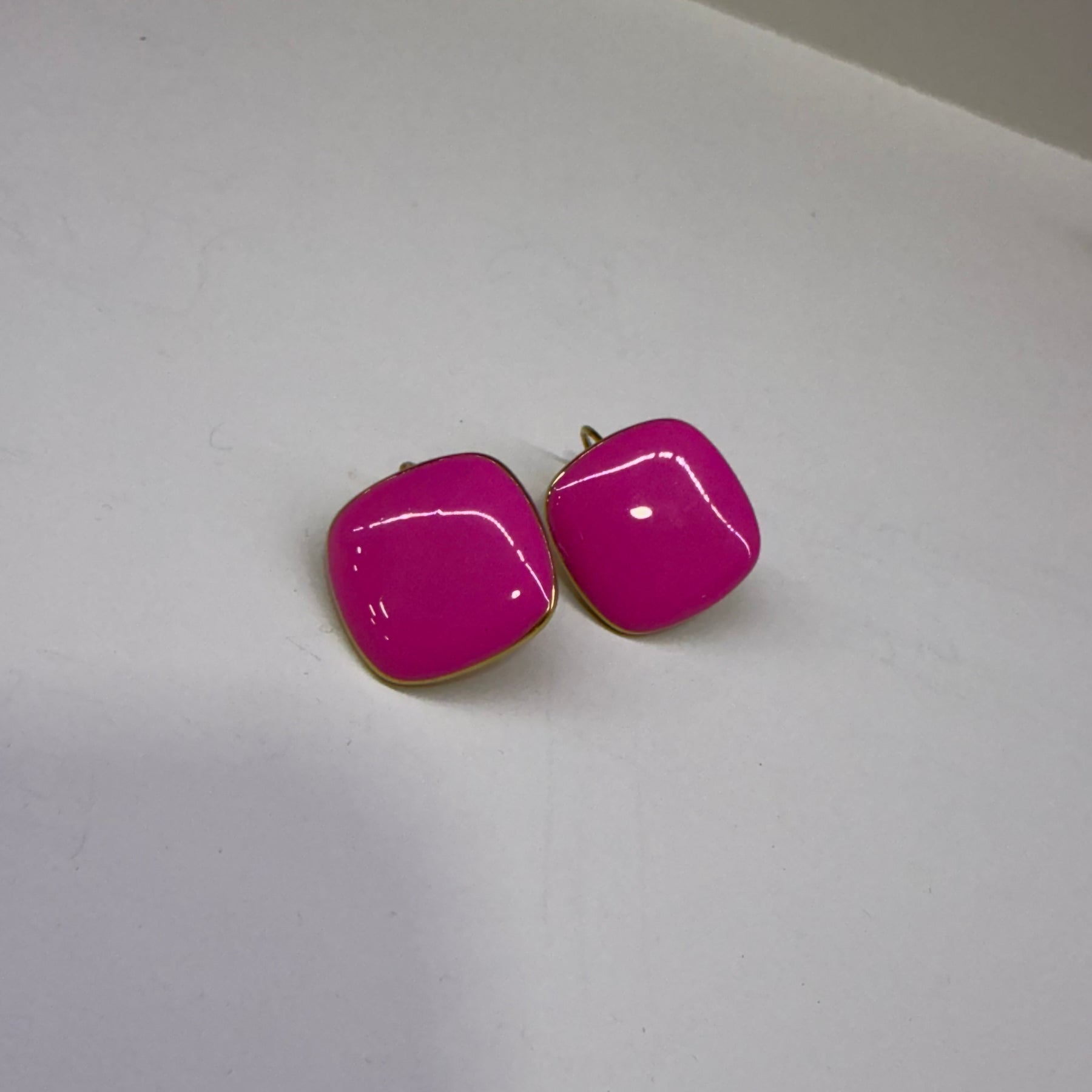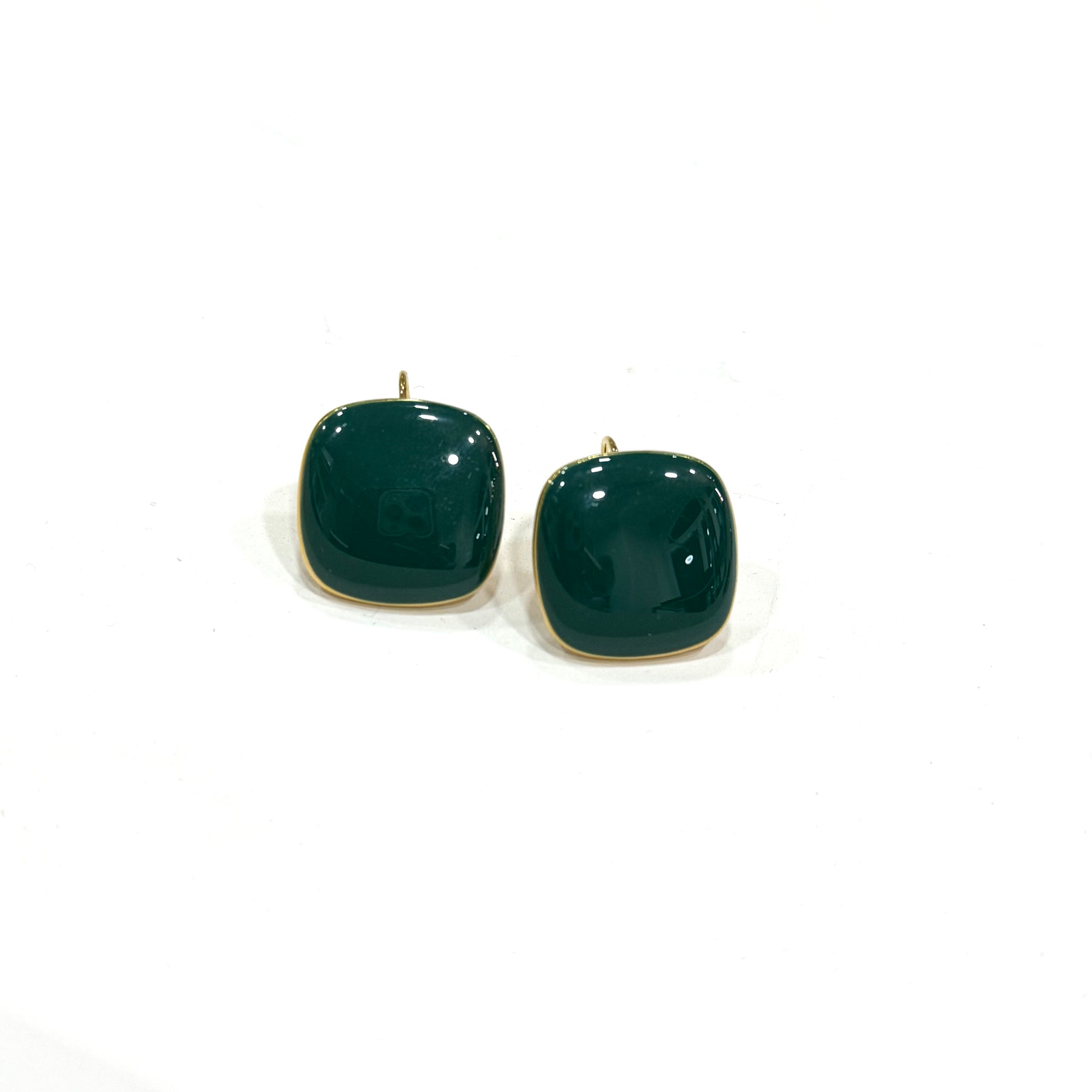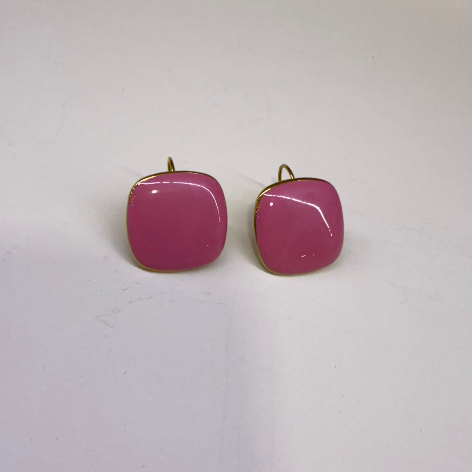 Orecchino con monachella e quadrato smaltato base oro, disponibile in diverse varianti colore.