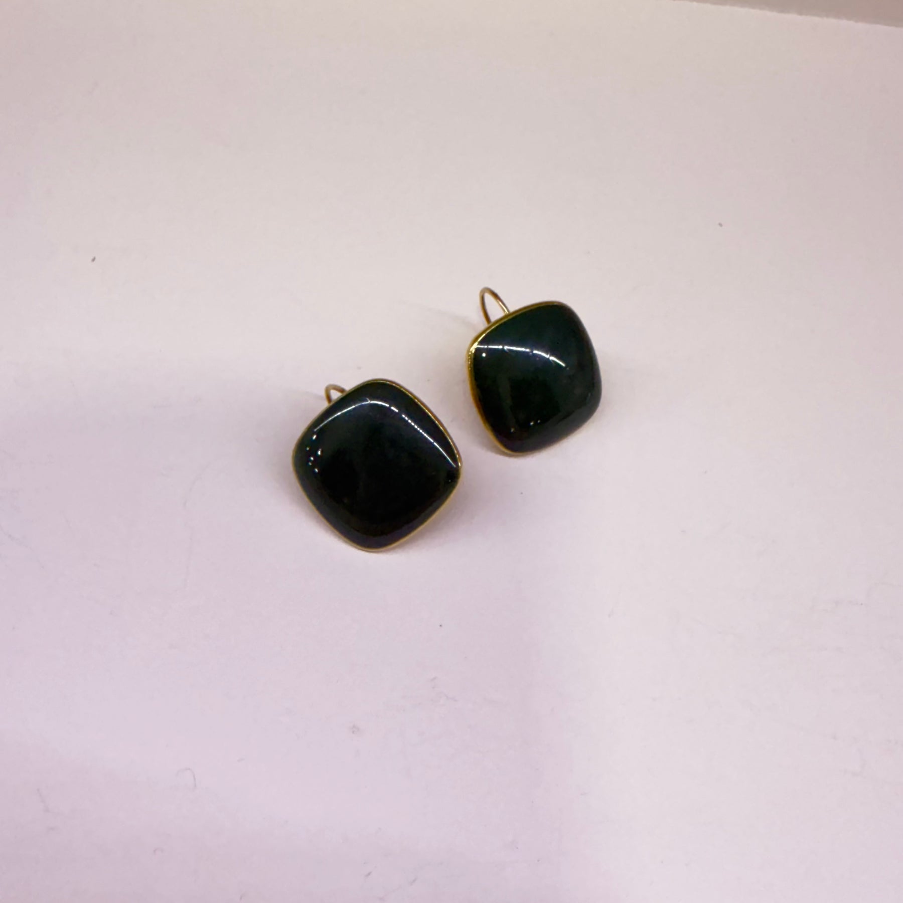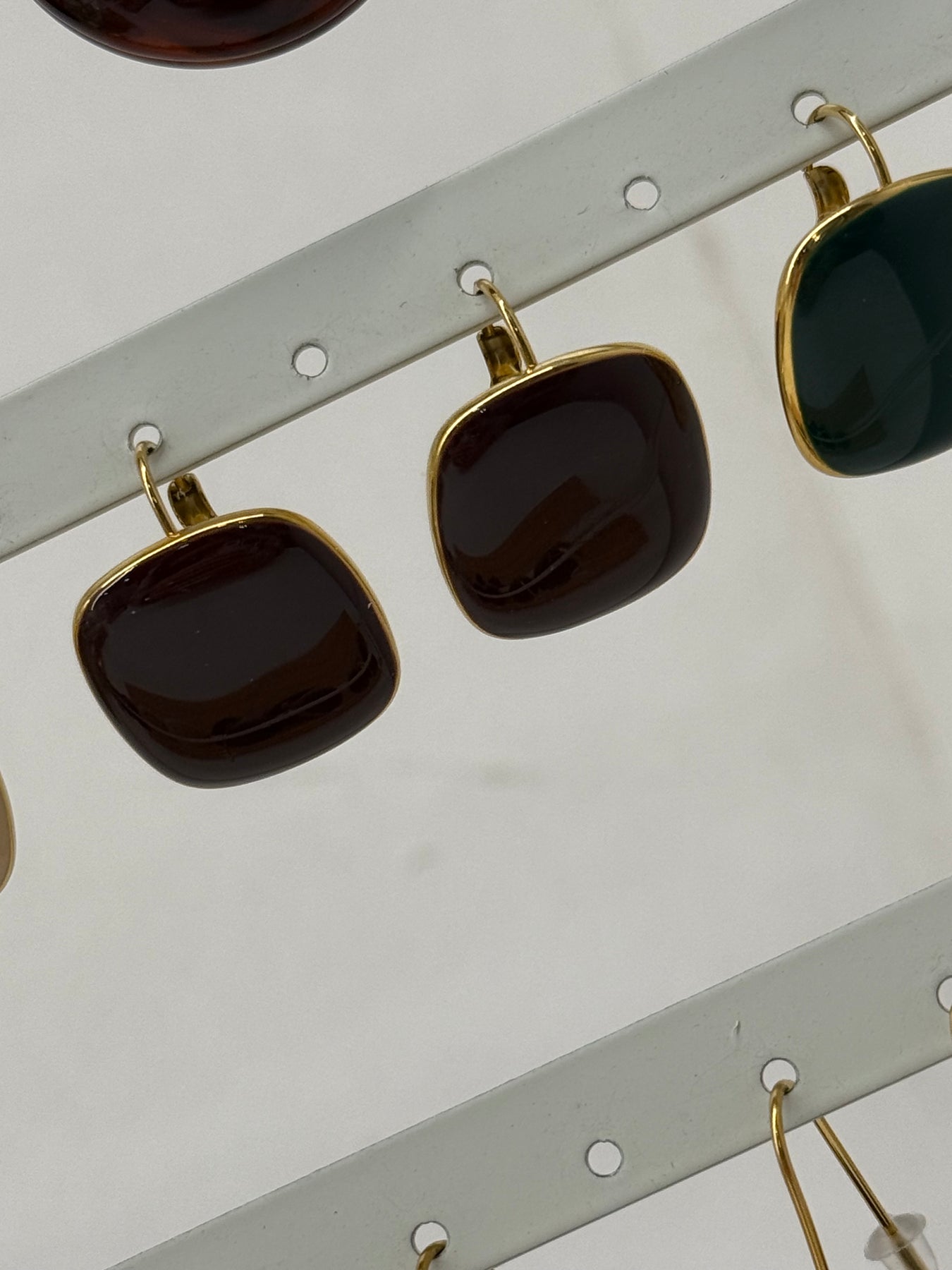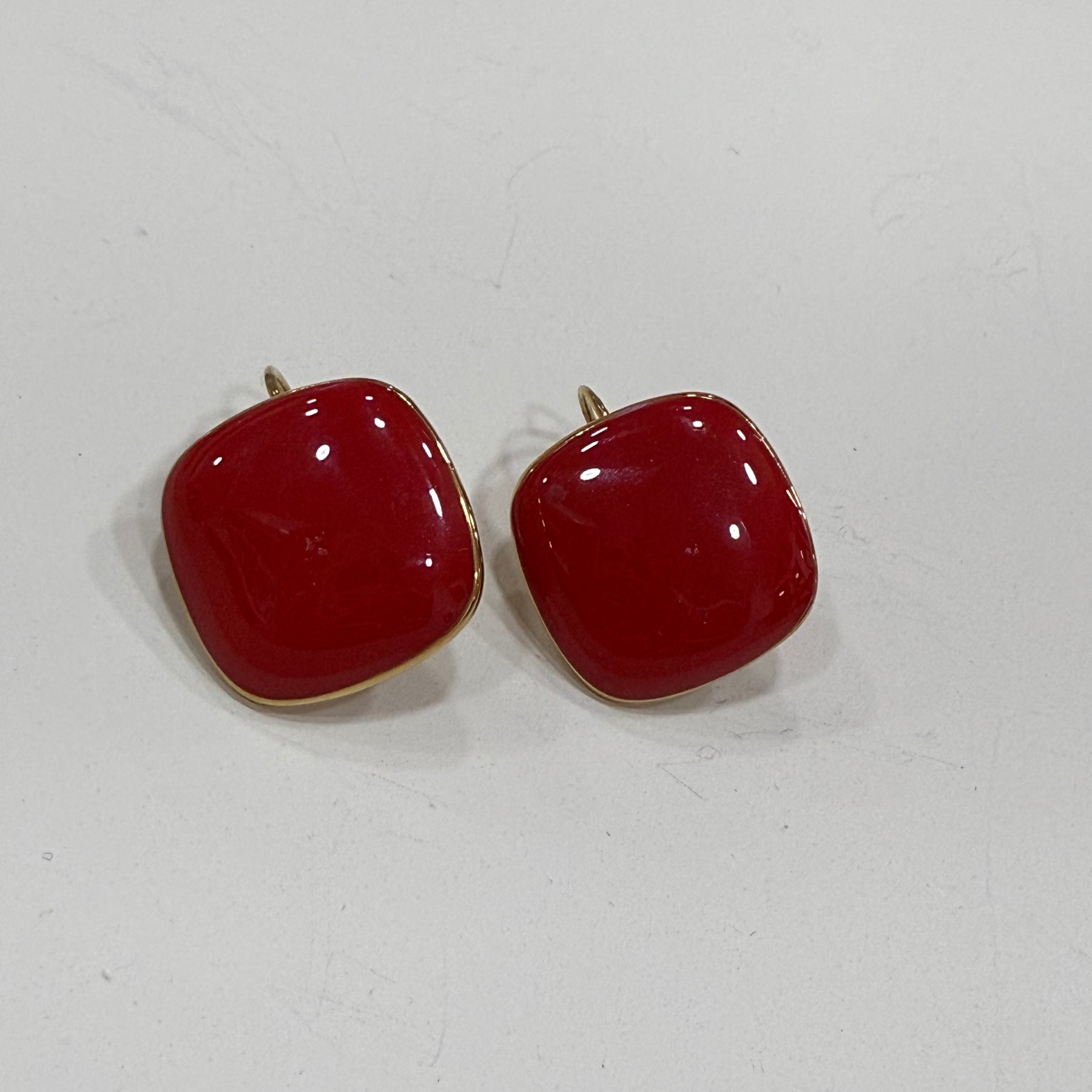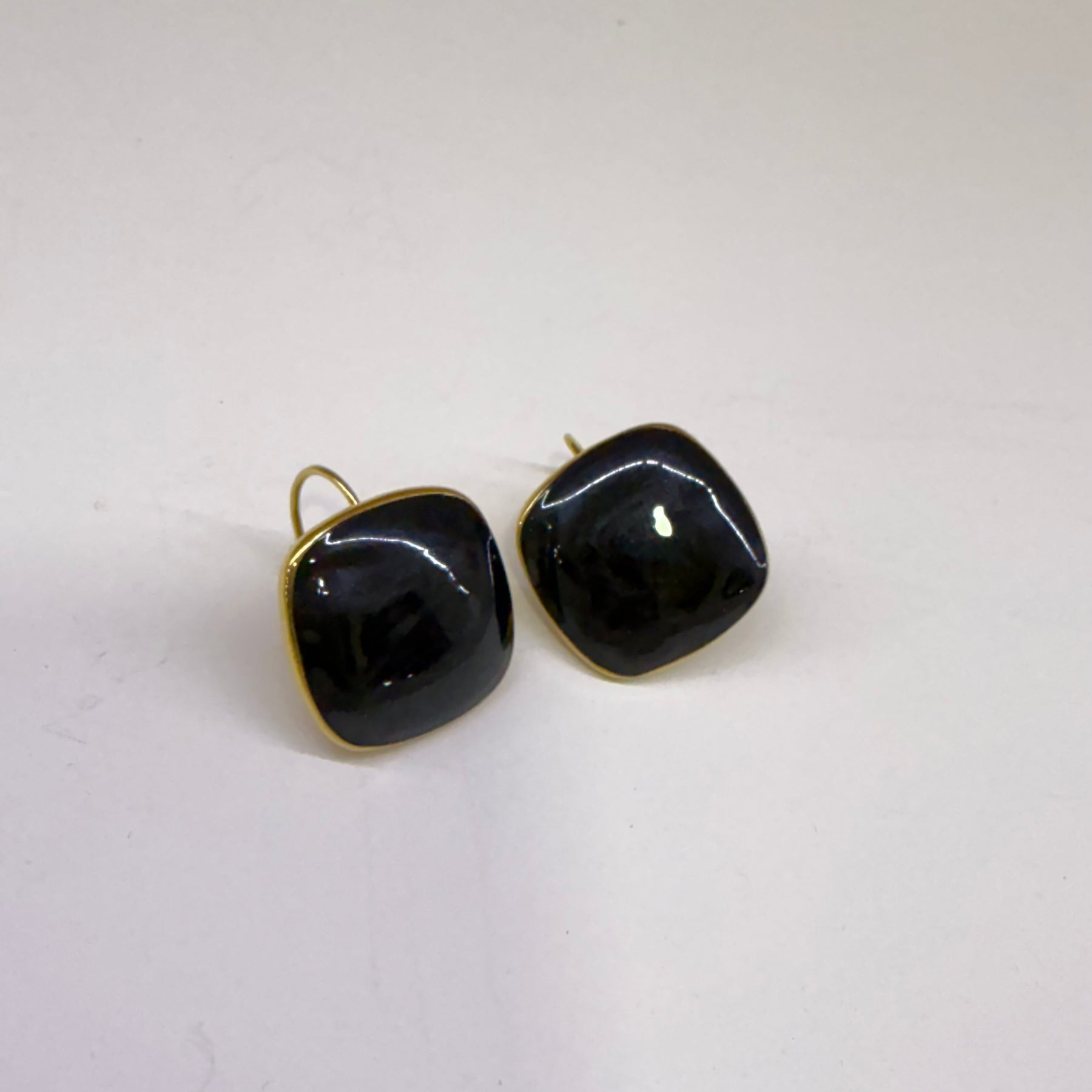 Orecchino con monachella e quadrato smaltato base oro, disponibile in diverse varianti colore.