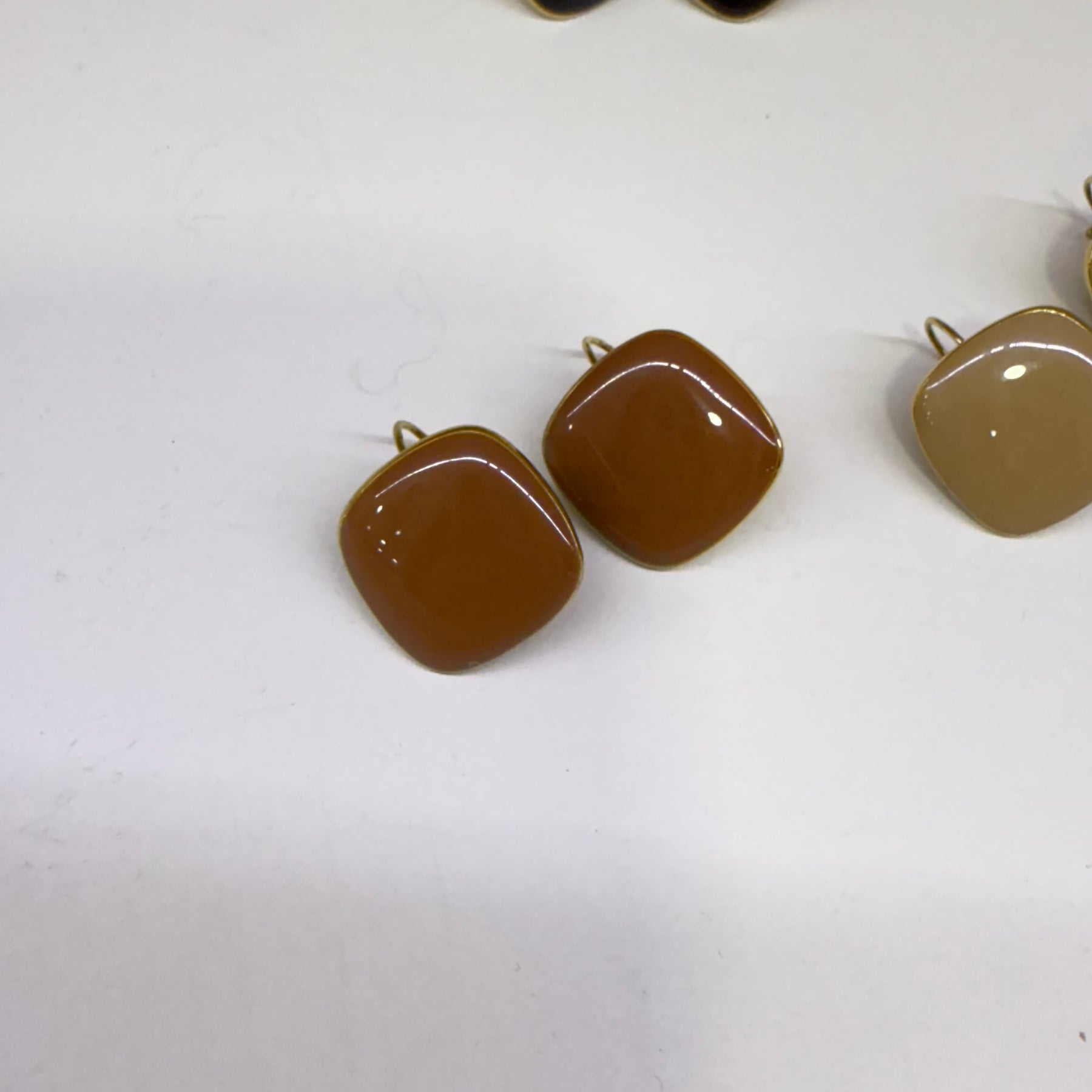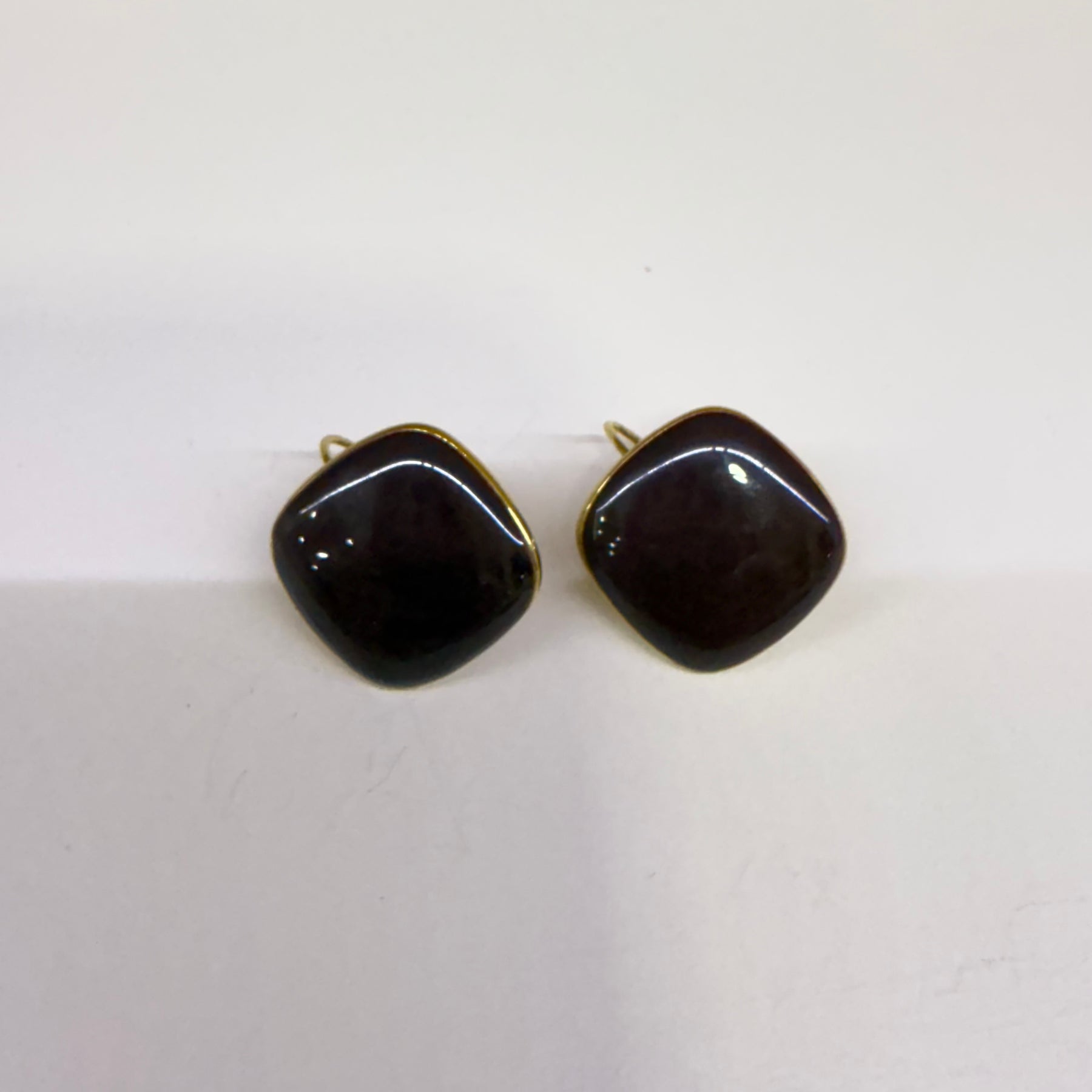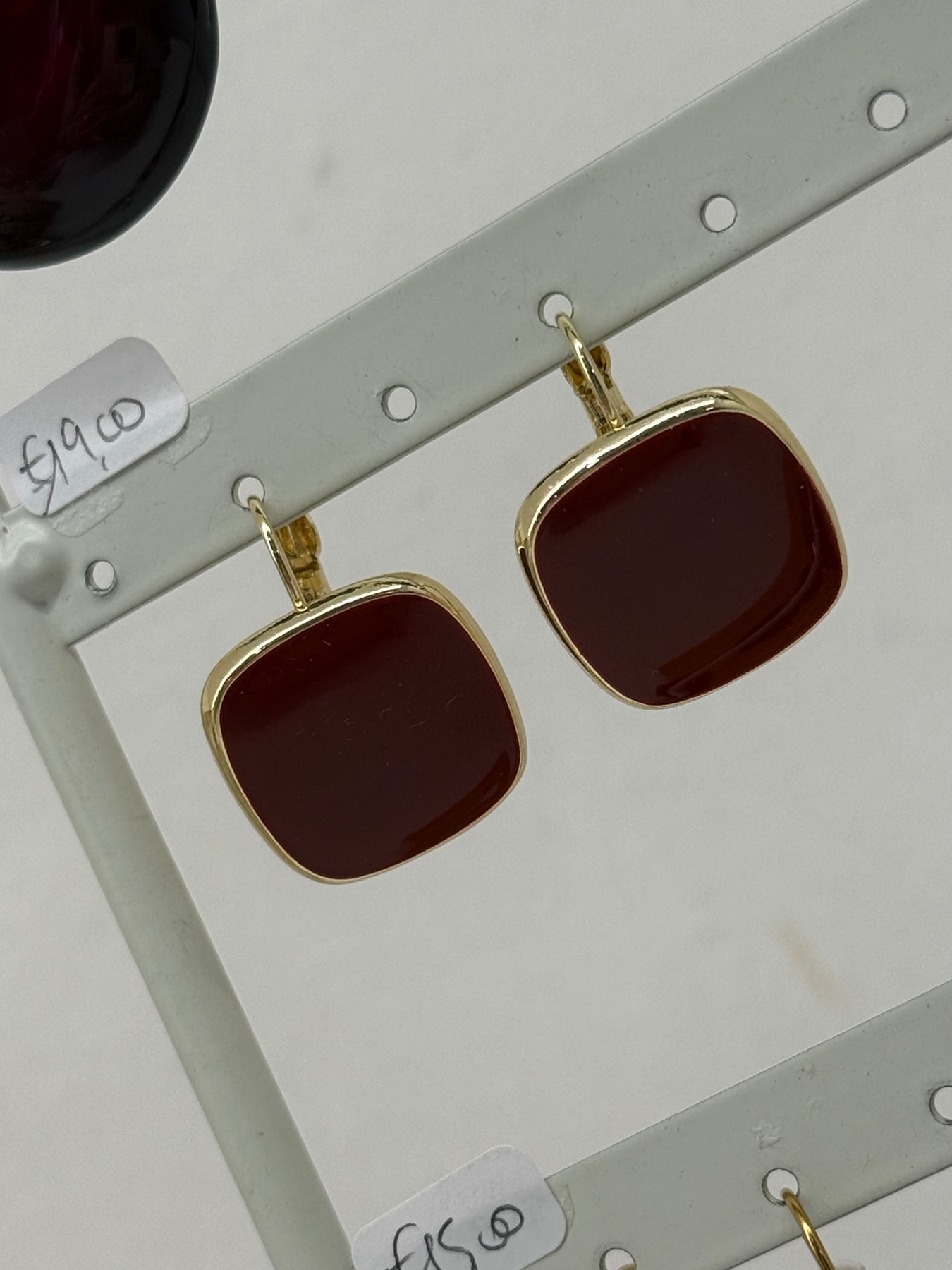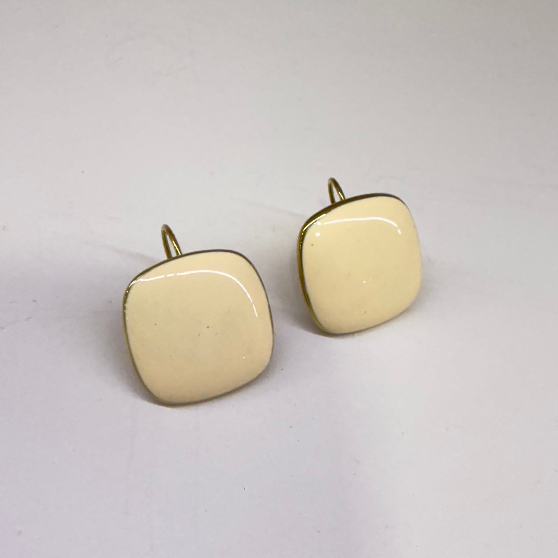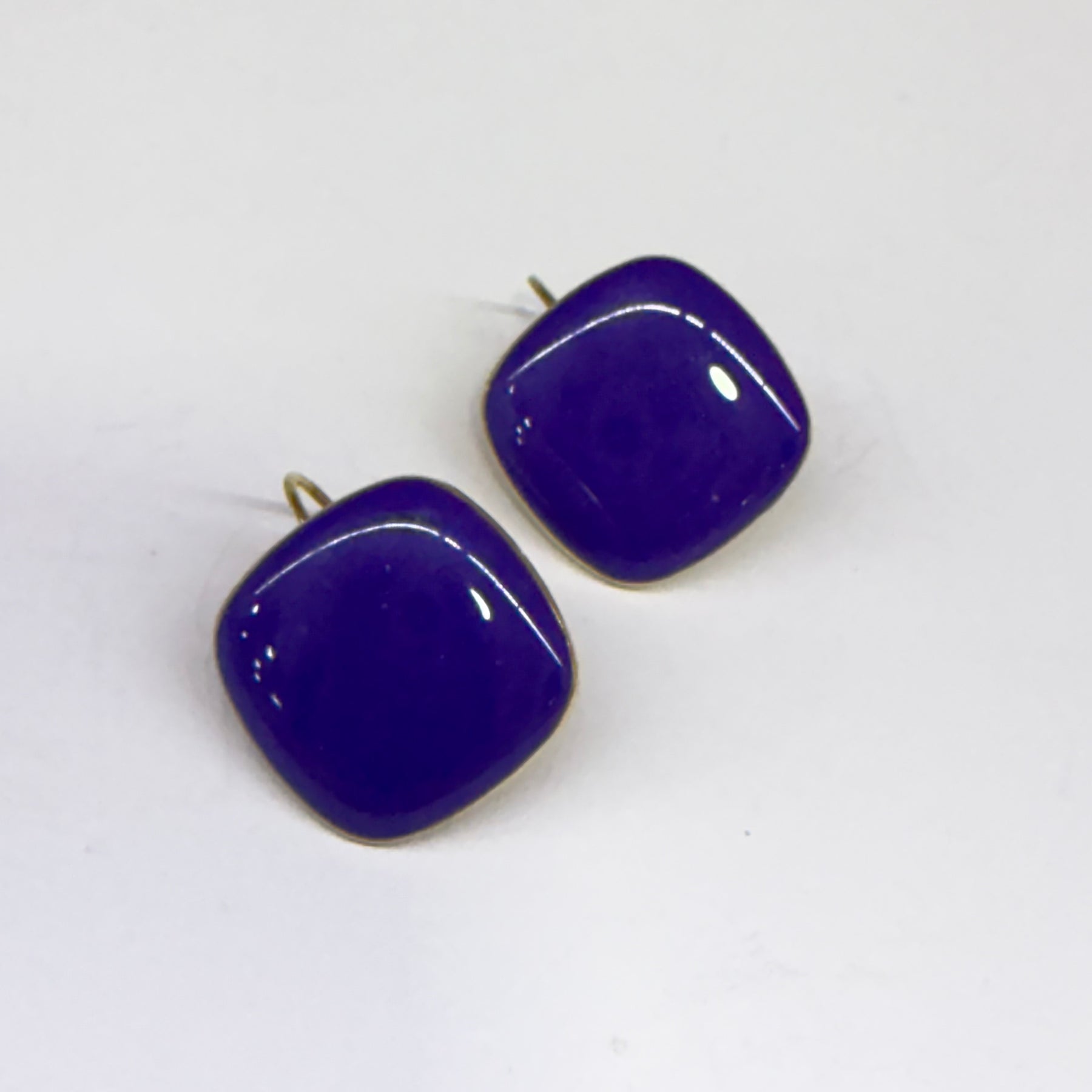 Orecchino con monachella e quadrato smaltato base oro, disponibile in diverse varianti colore.