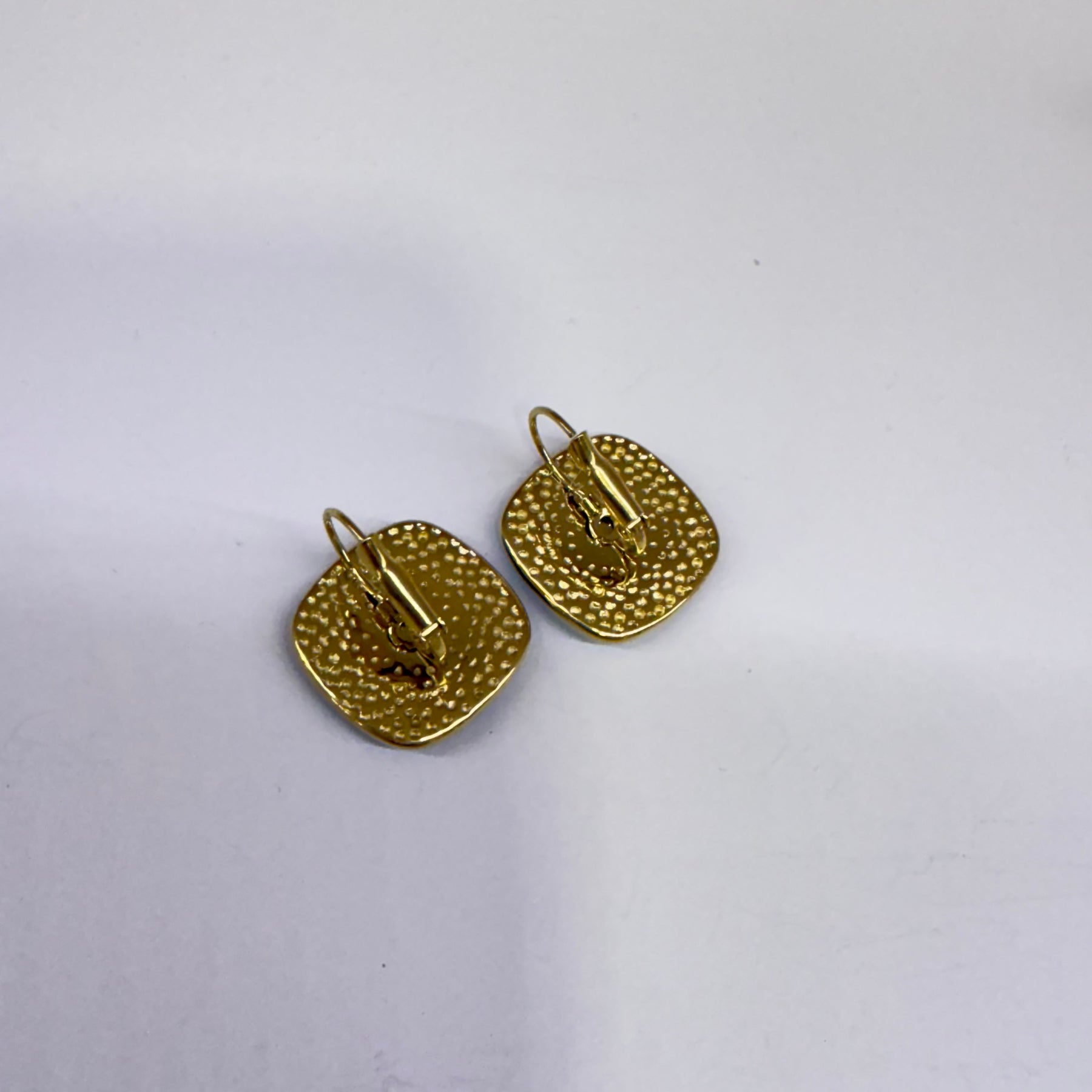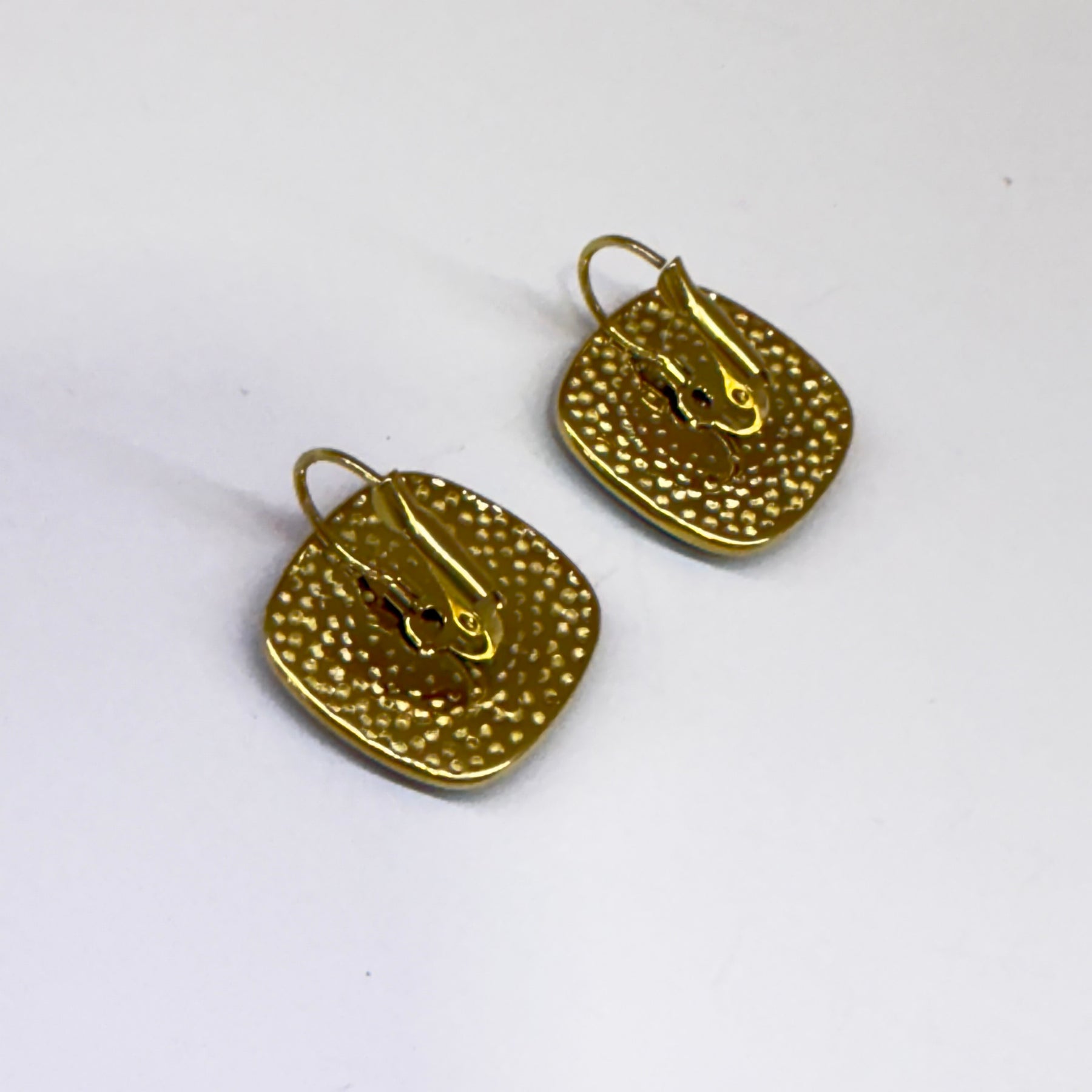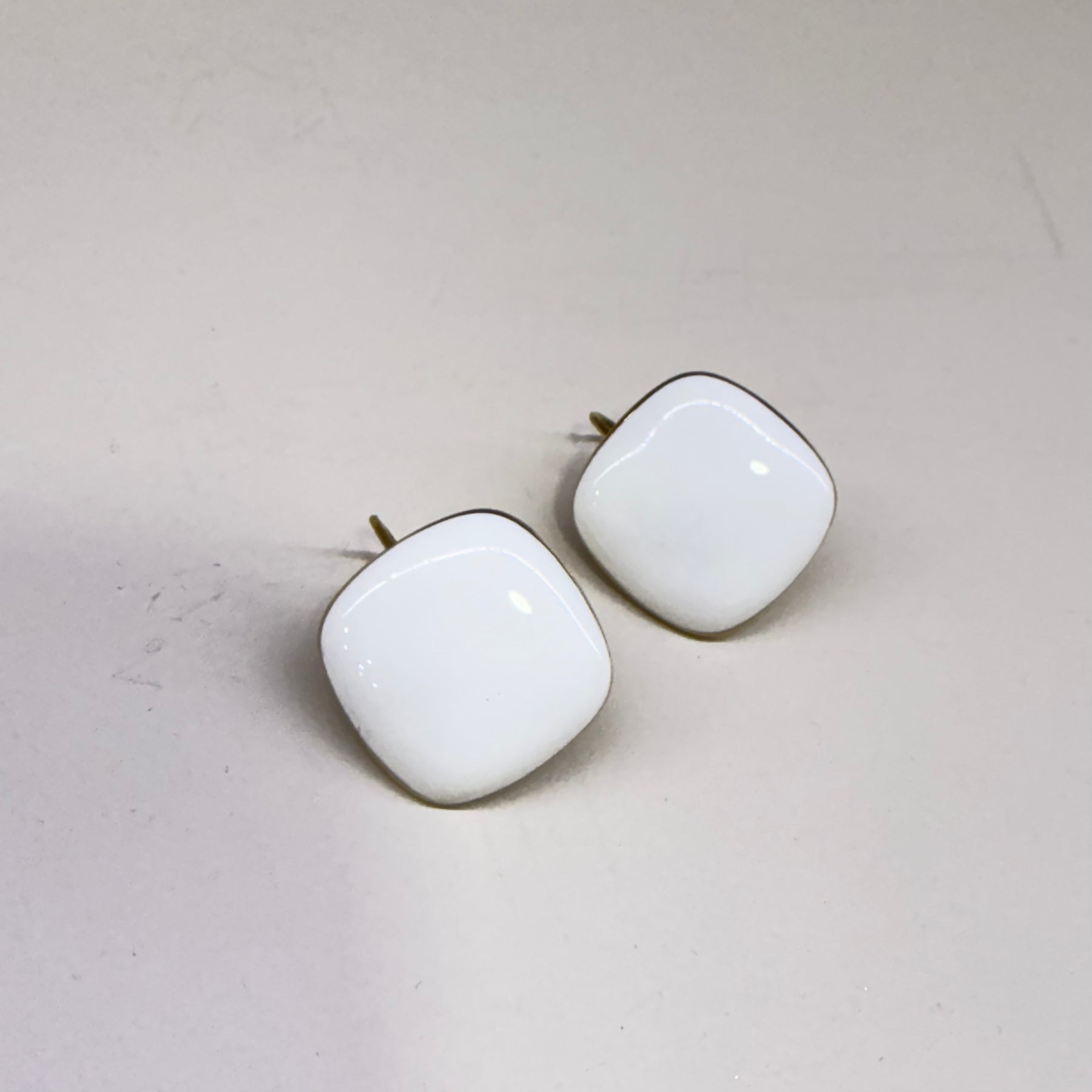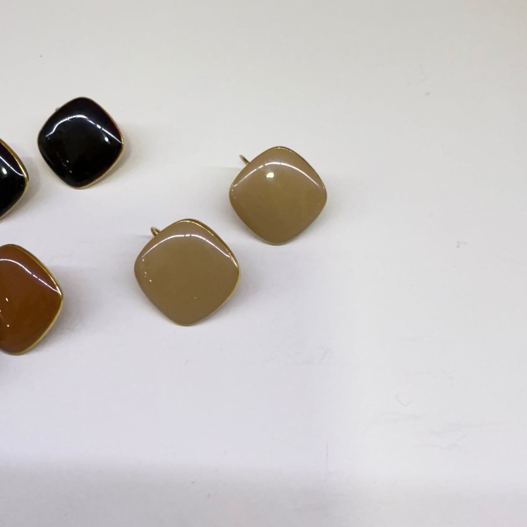 Orecchino con monachella e quadrato smaltato base oro, disponibile in diverse varianti colore.