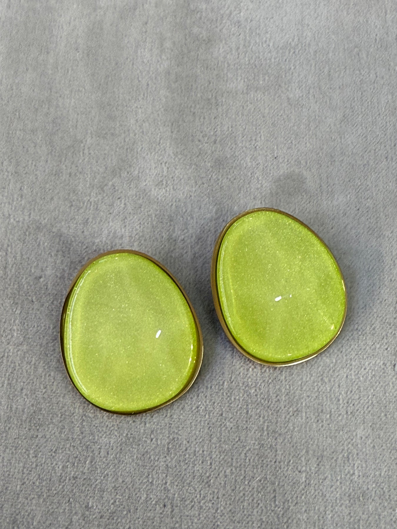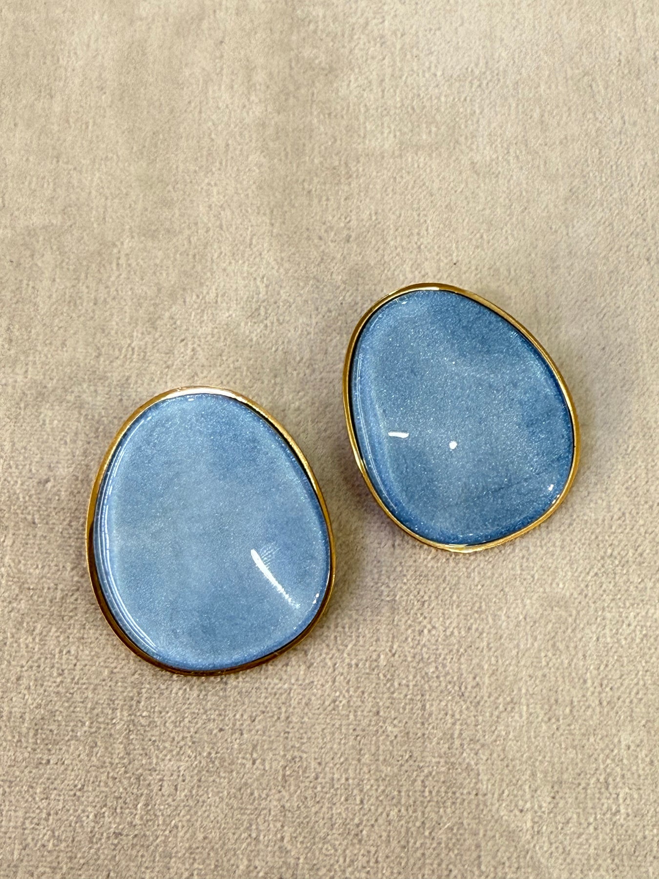 Orecchini ovali con ghiera oro e smalto colorato con strass disponibile in diverse varianti colore.