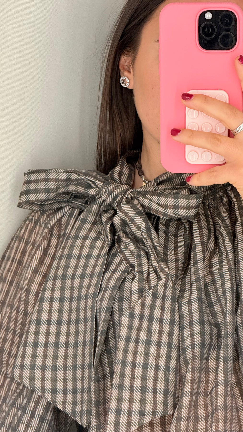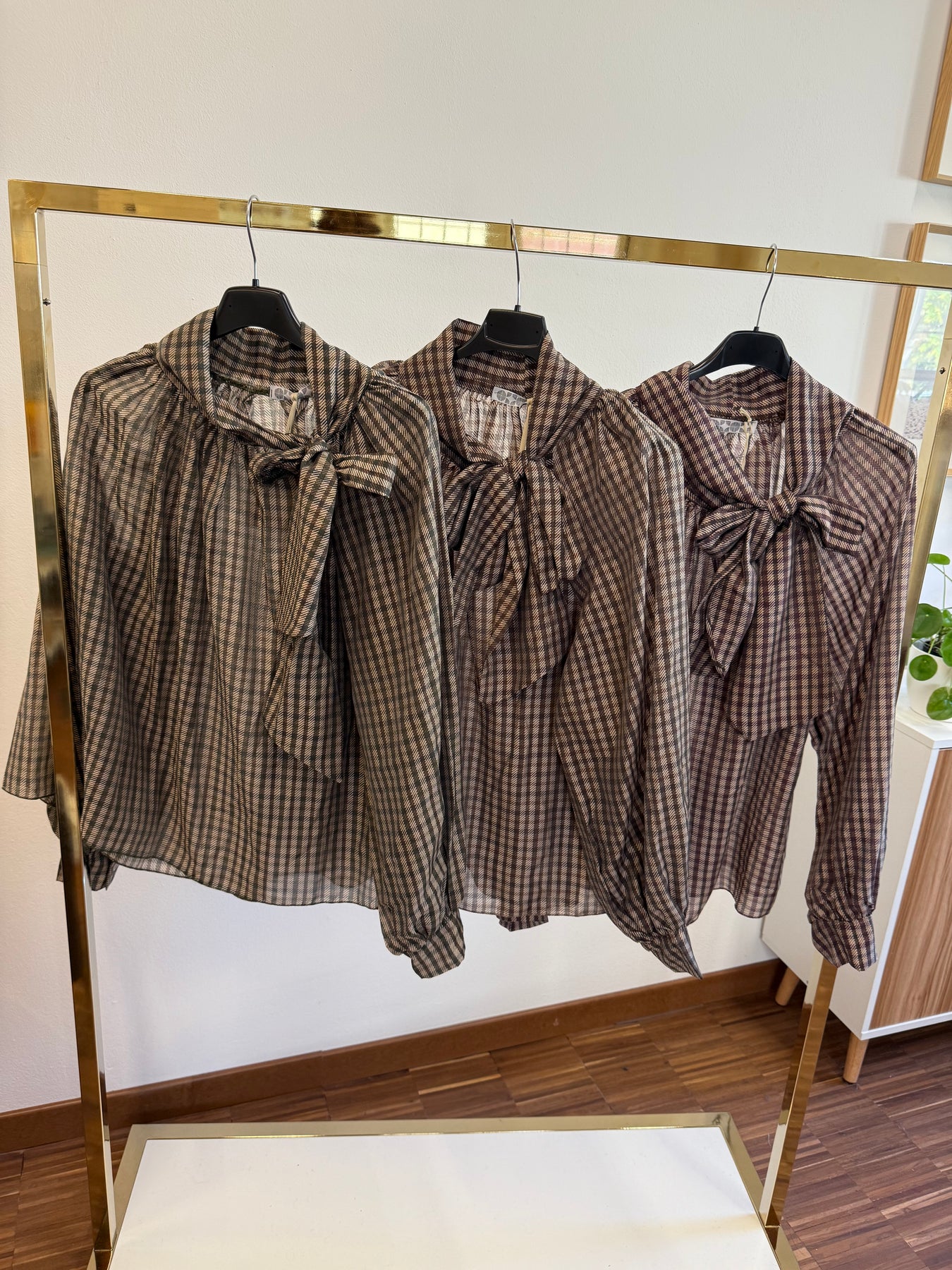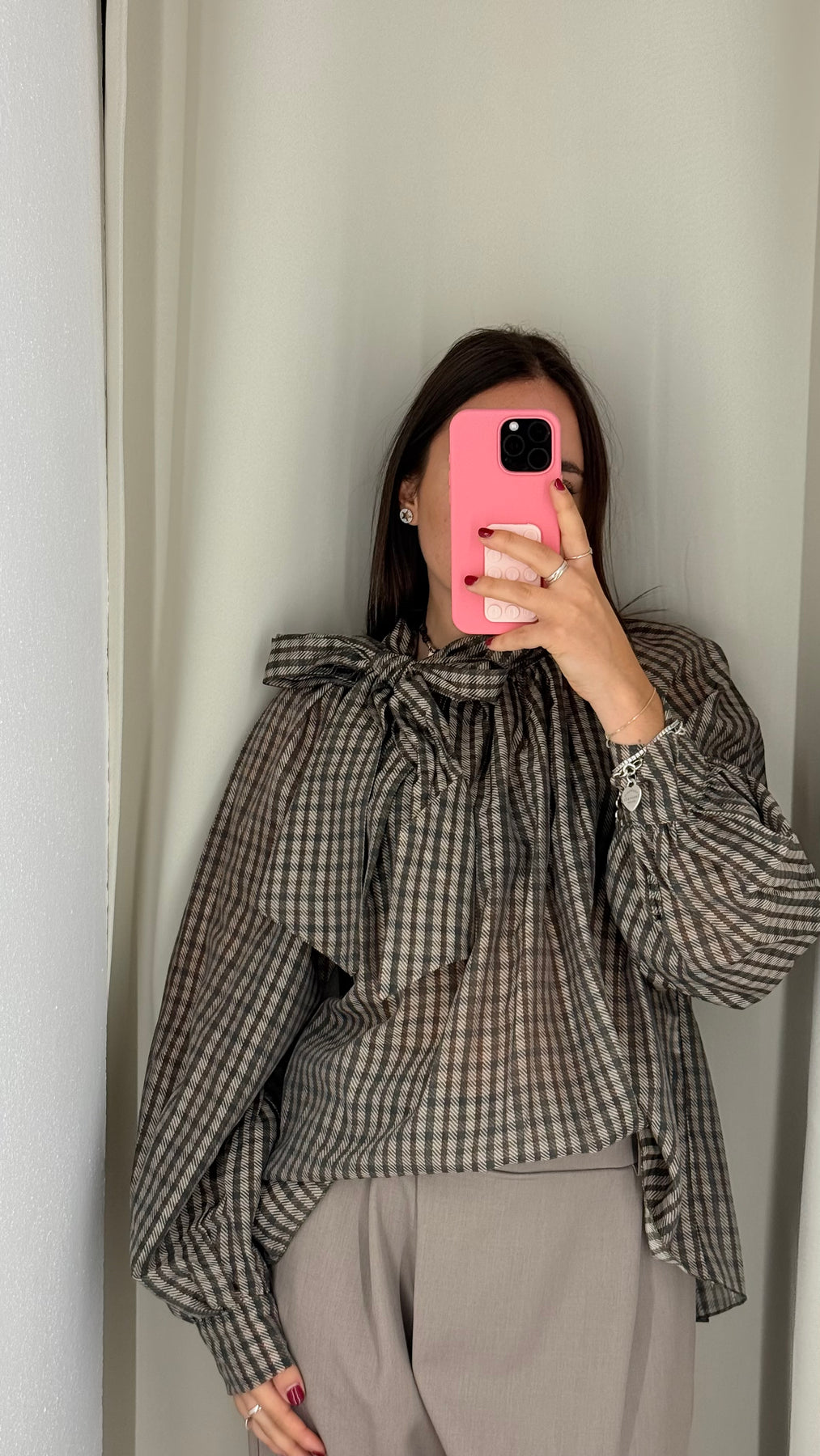 Camicia a quadri con fiocco ,disponibile in 3 varianti colore taglia unica, con manica a palloncino.
