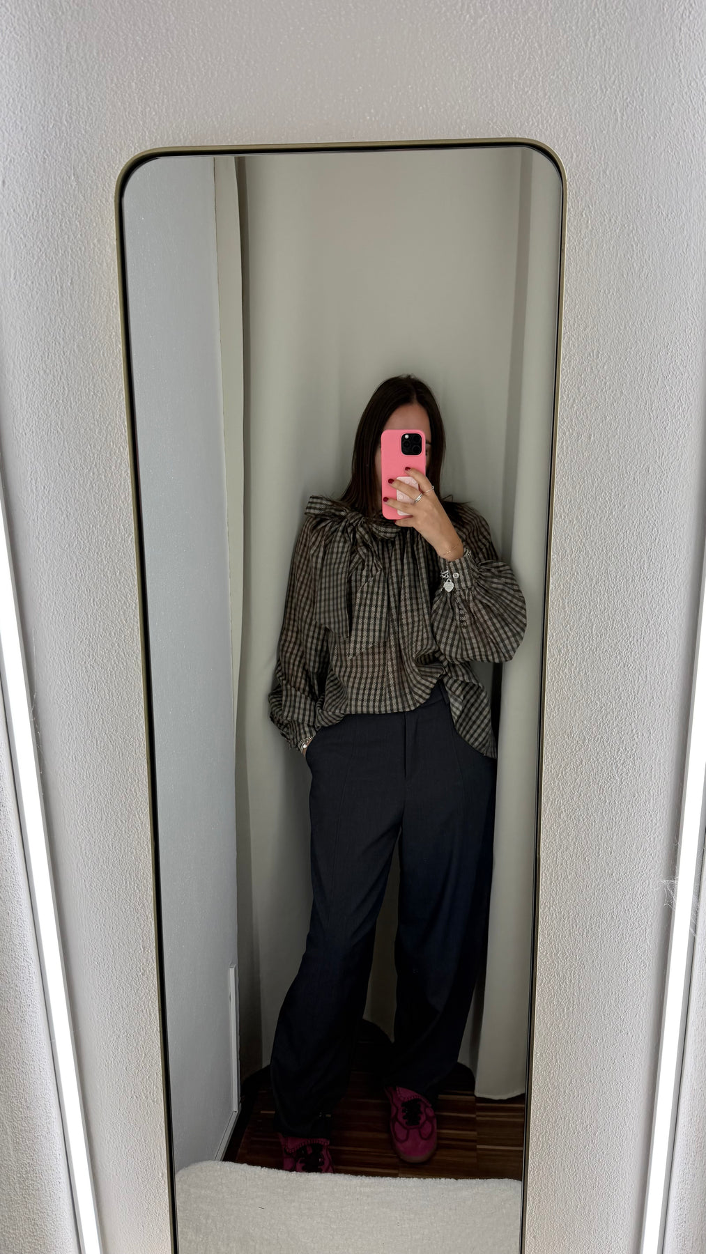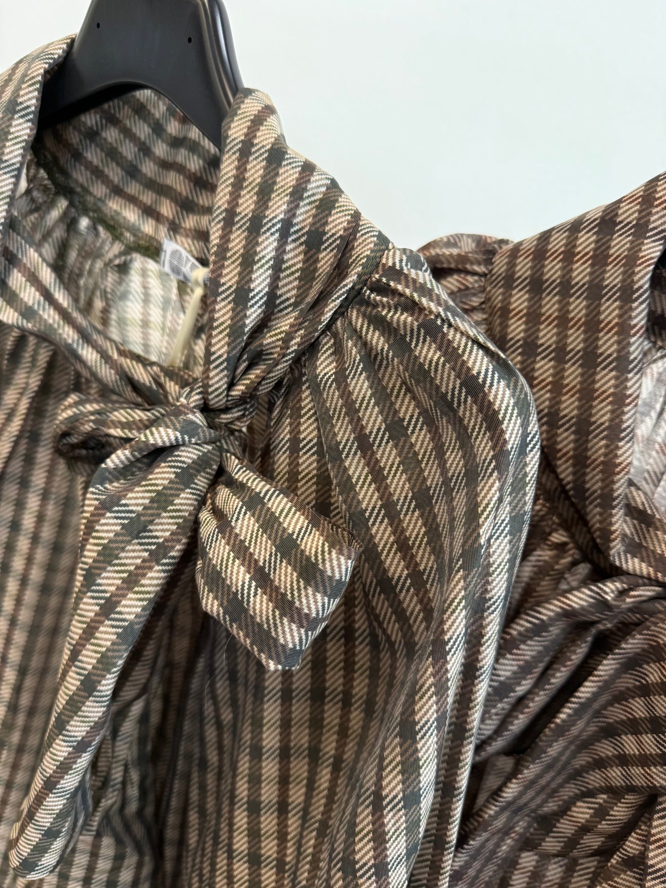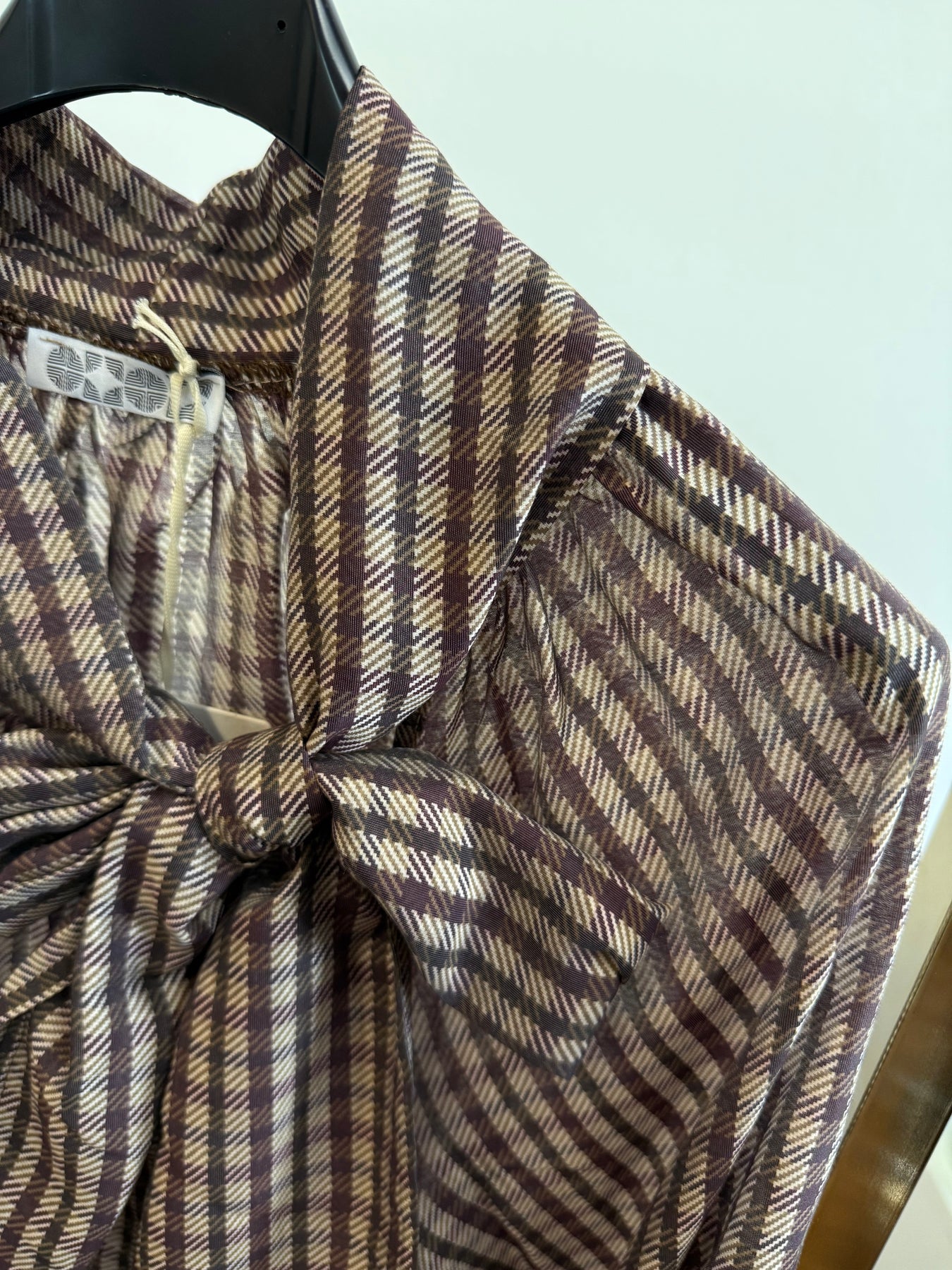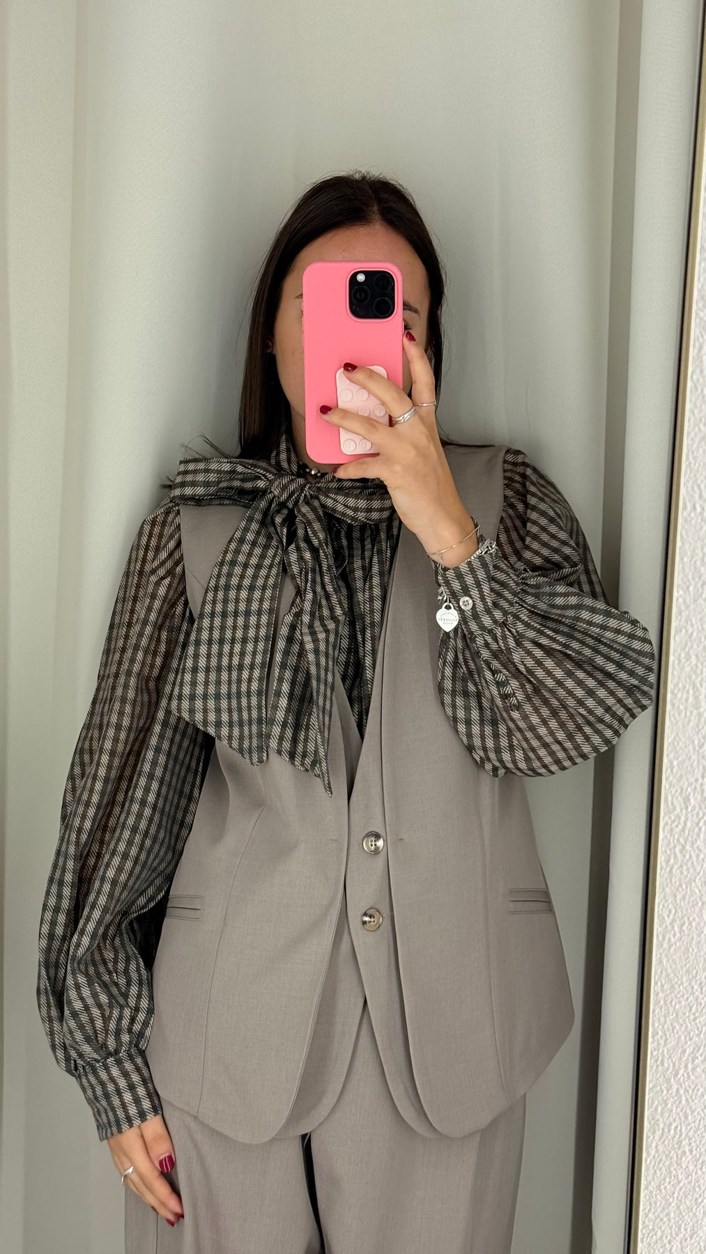 Camicia a quadri con fiocco ,disponibile in 3 varianti colore taglia unica, con manica a palloncino.
