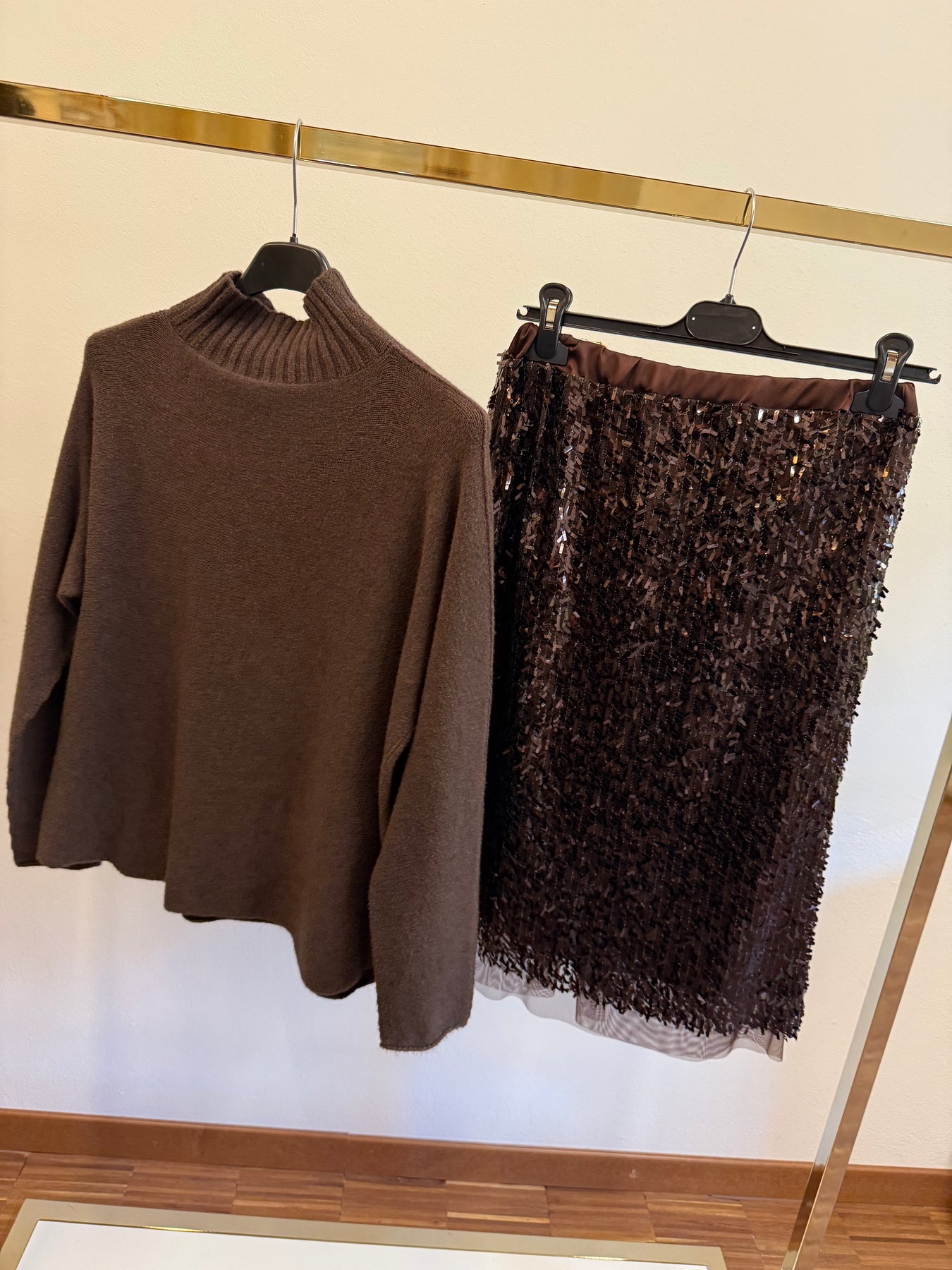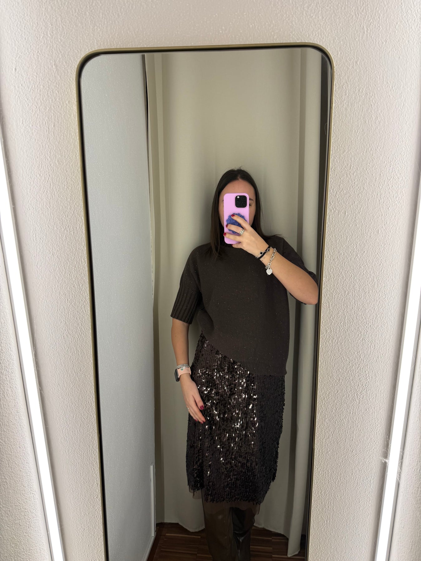 Gonna con elastico in vita e macro paillettes , misura sotto il ginocchio.
