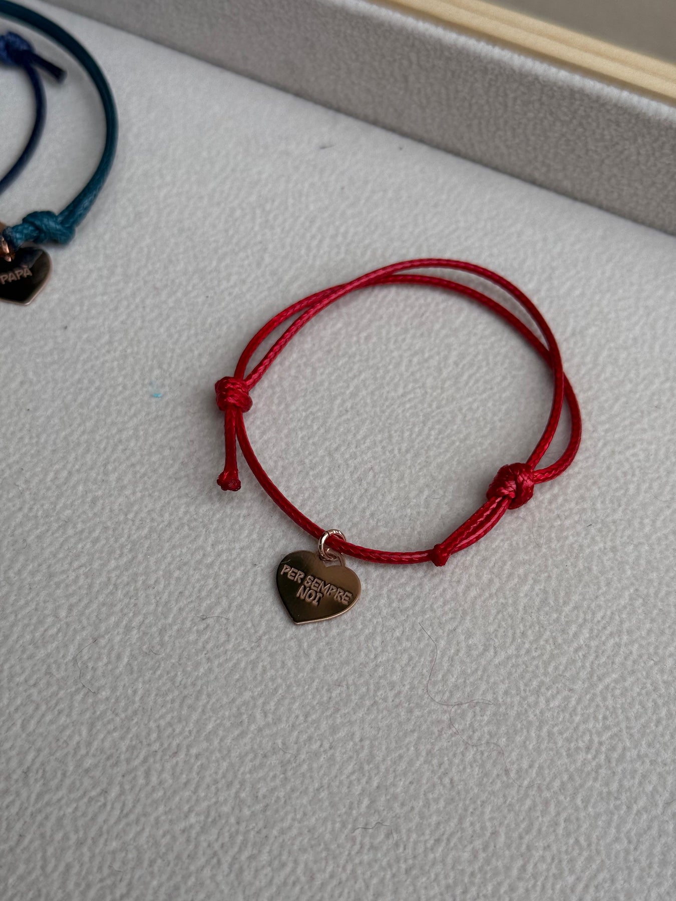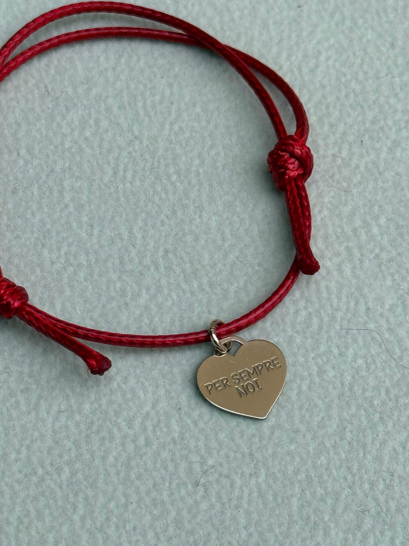 Bracciale con cordino e cuore con scritta per sempre noi , cordini regolabili e disponibili in diverse varianti colore.