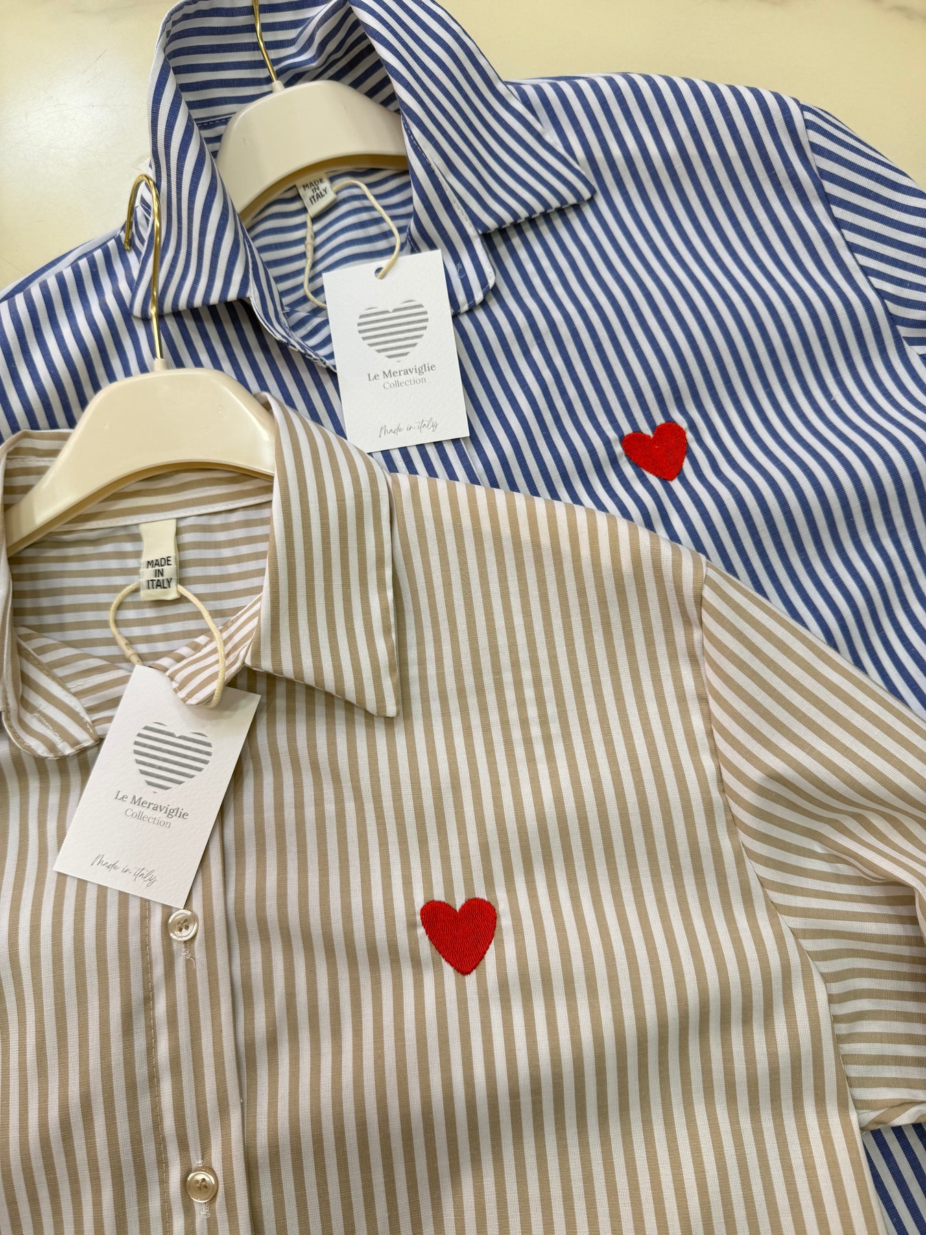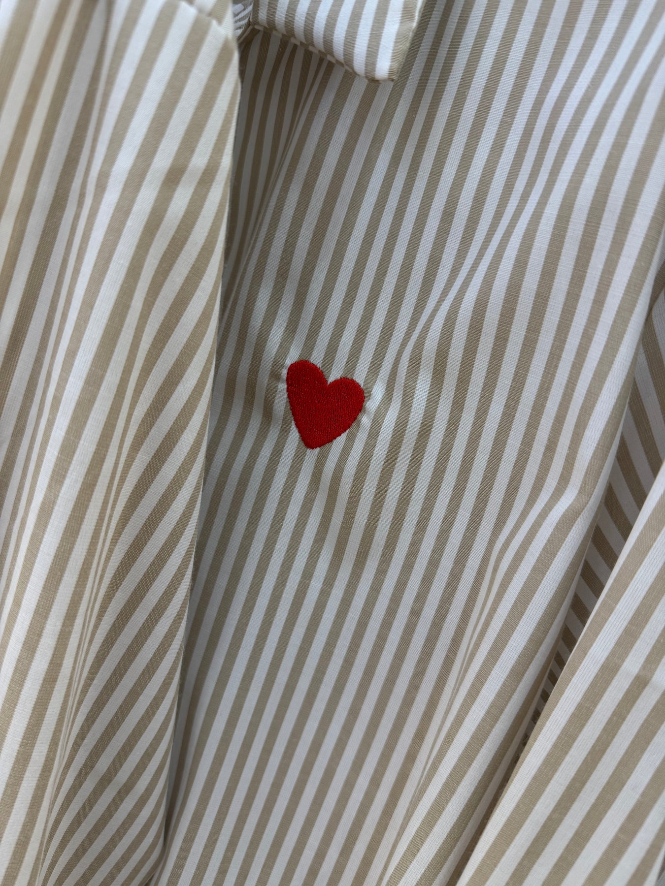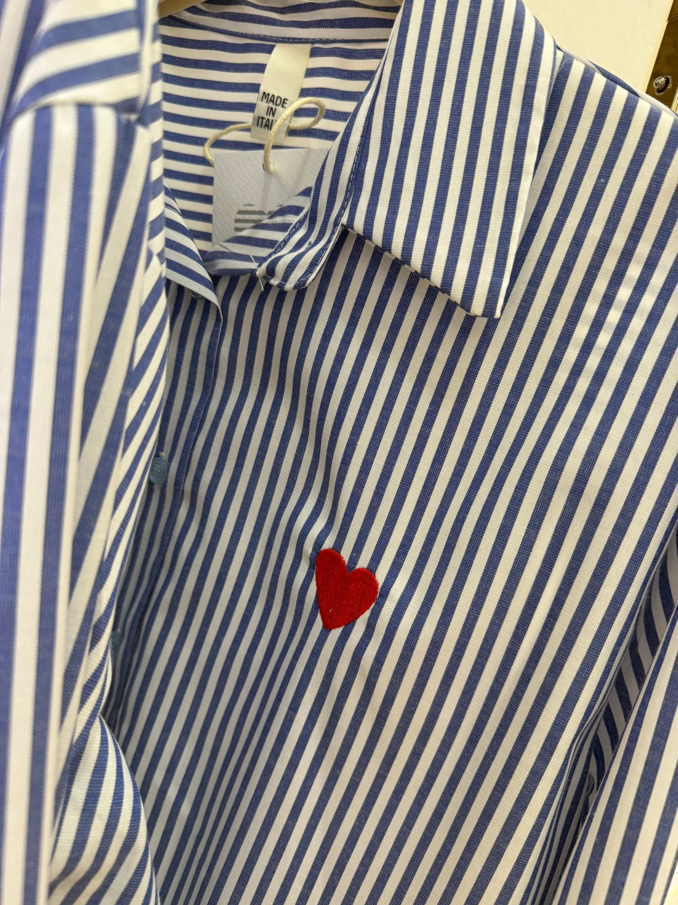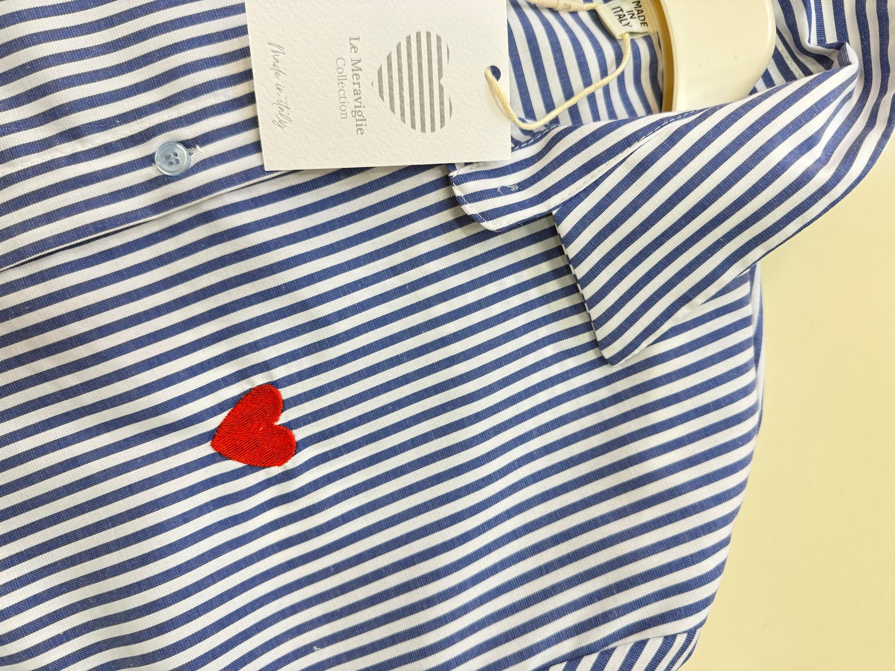 Camicia in cotone taglio over a righe , con cuore rosso ricamato