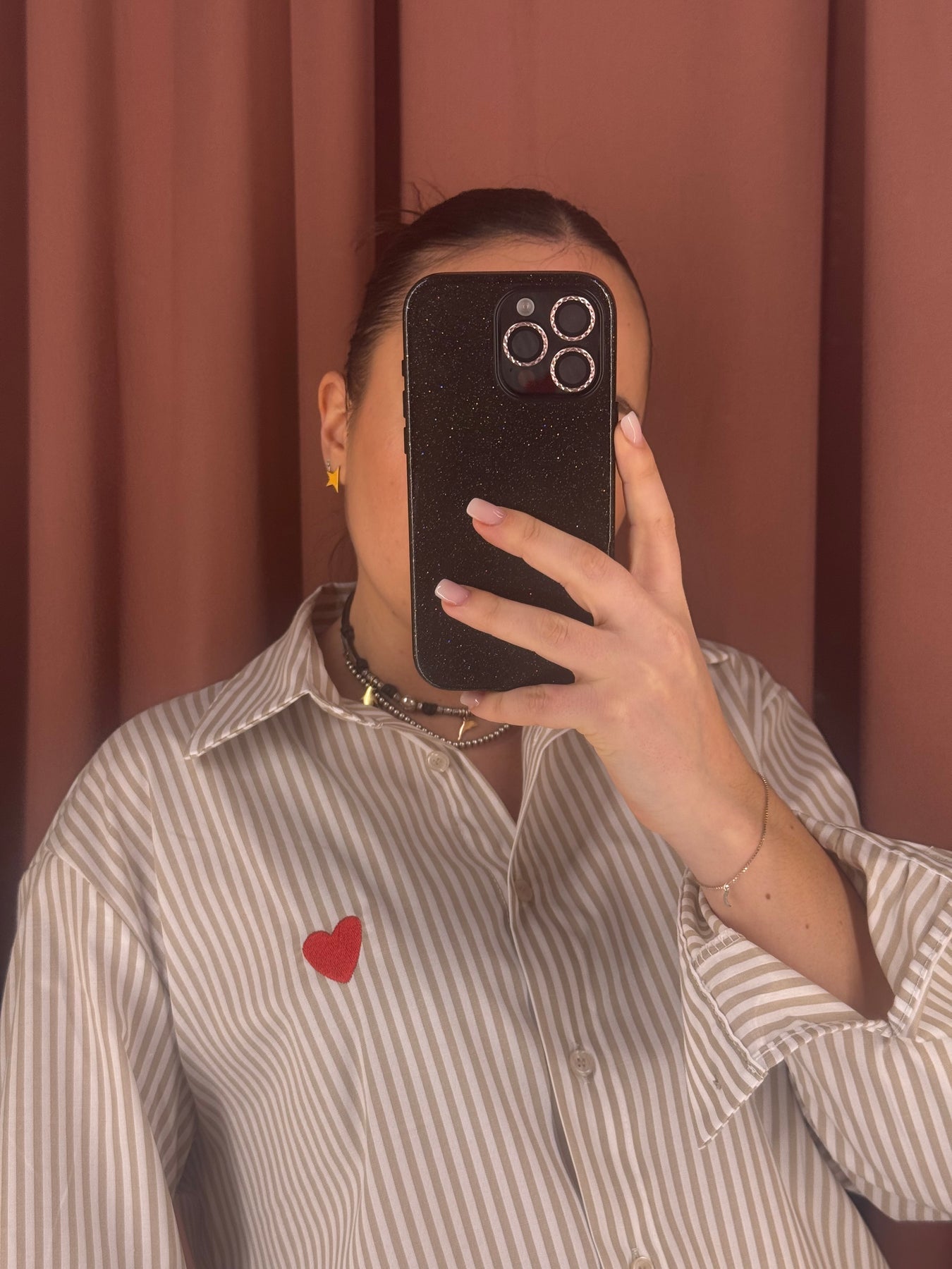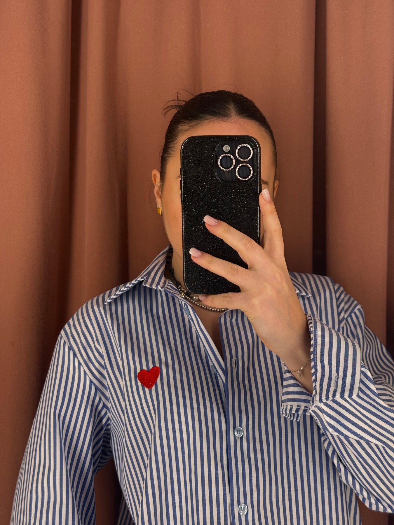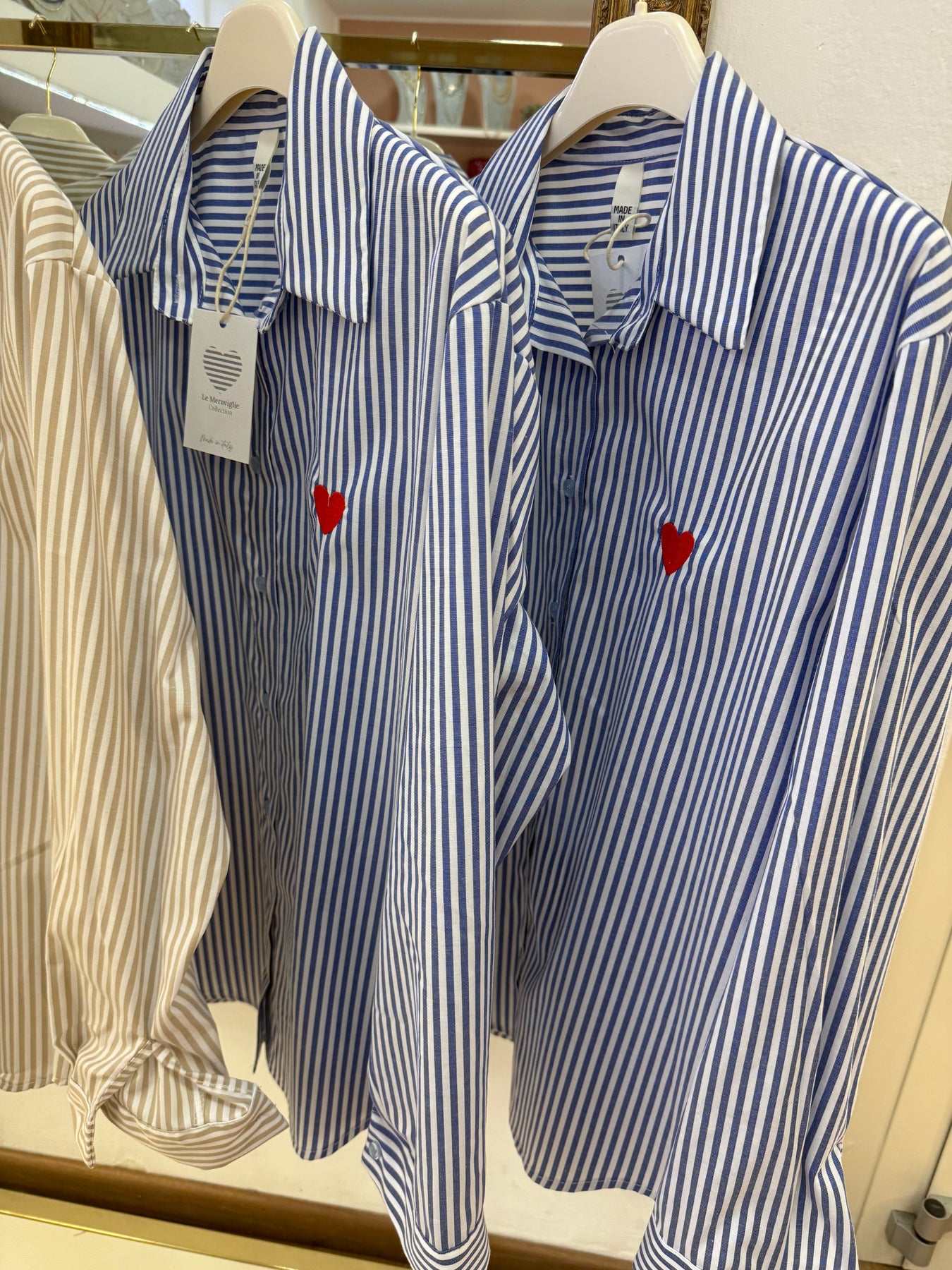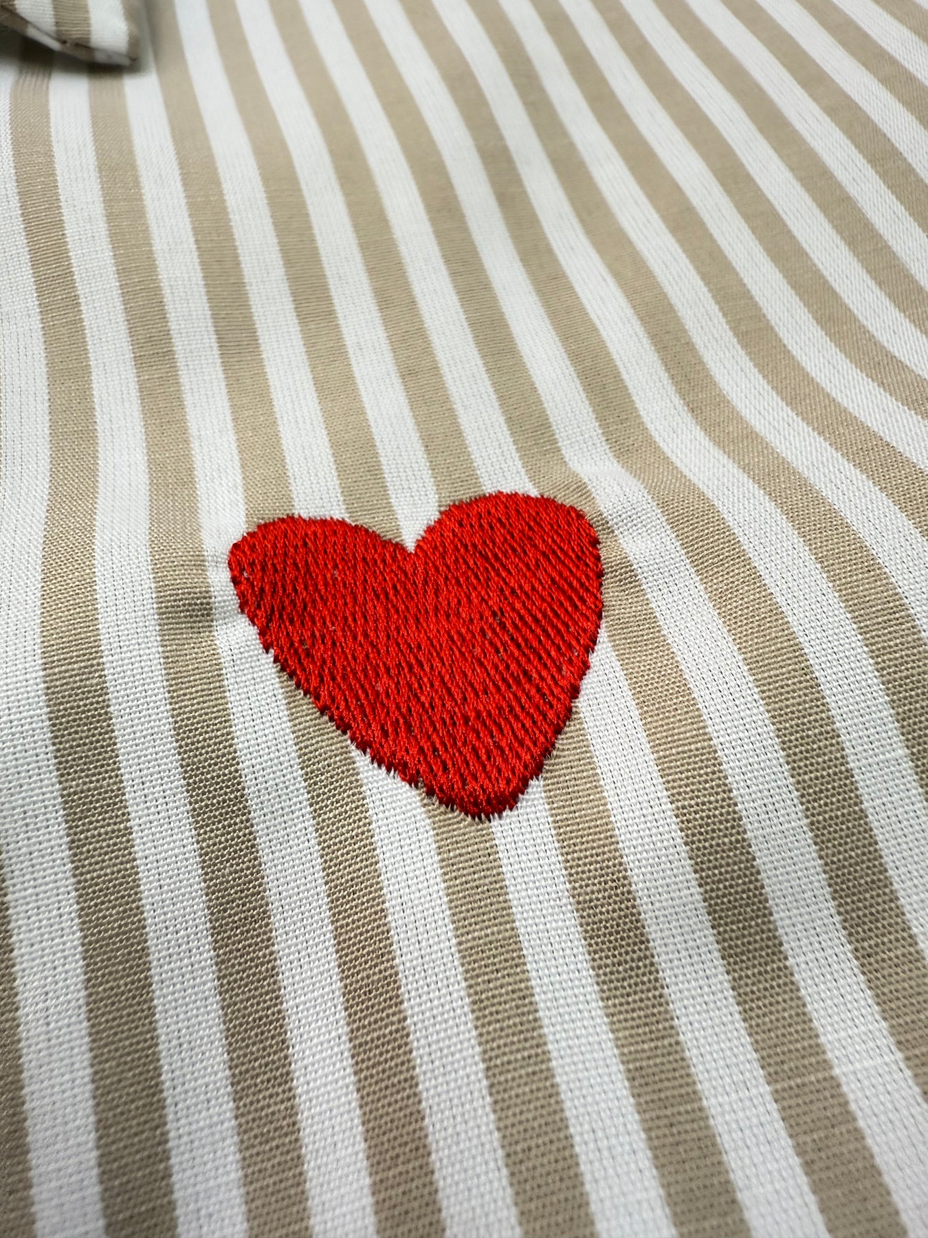 Camicia in cotone taglio over a righe , con cuore rosso ricamato