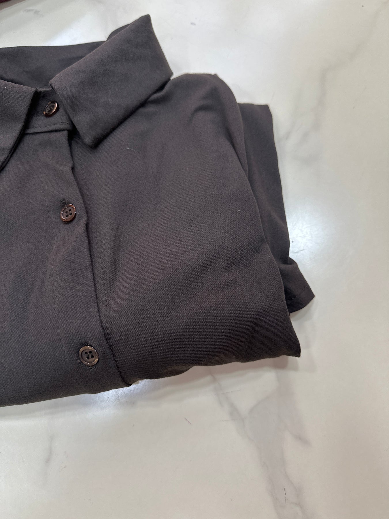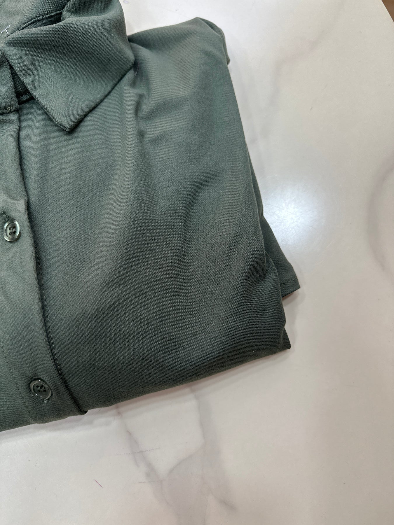 Camicia in tinta unita in Jersey, disponibile nella versione over taglia unica. Composizione: 20% viscosa , 75% poliestere, 5% elastane.