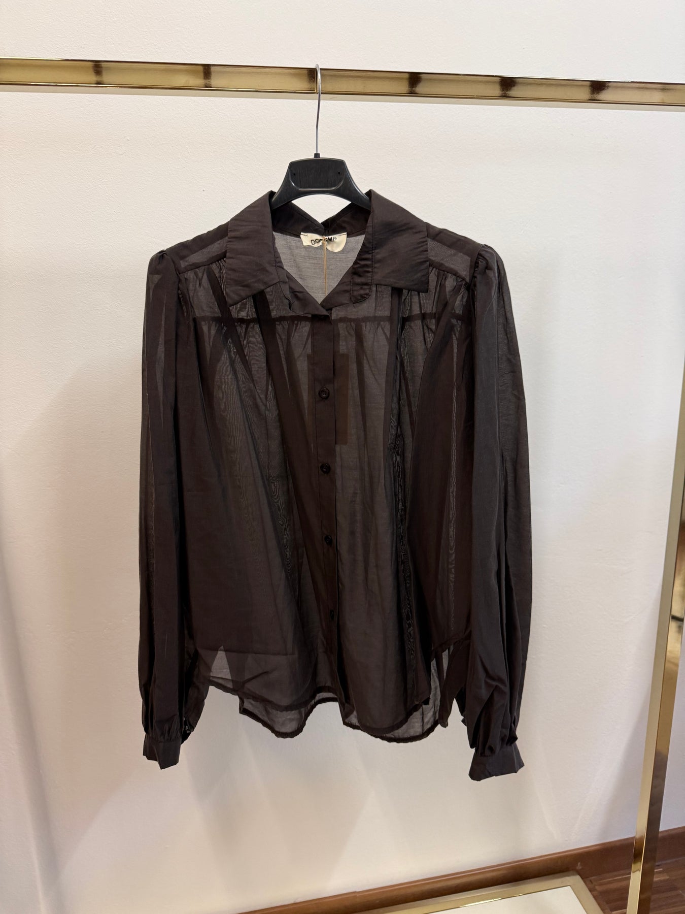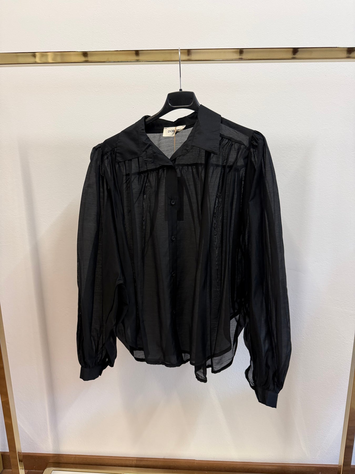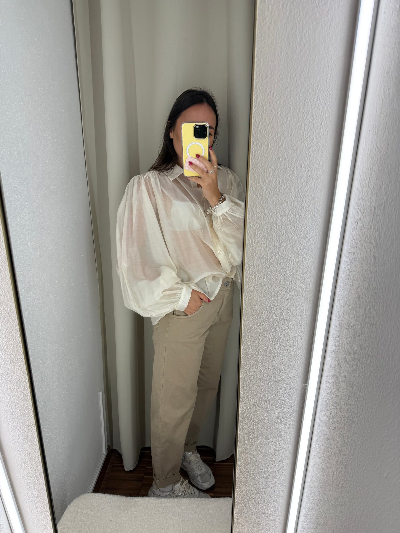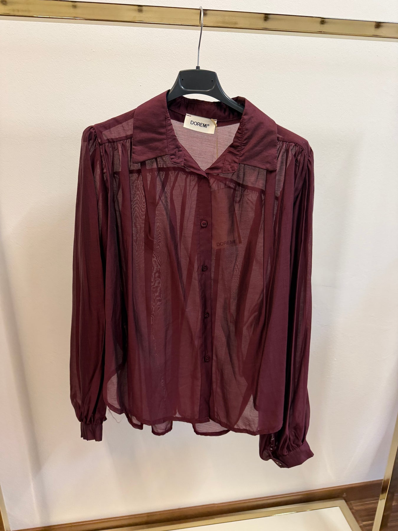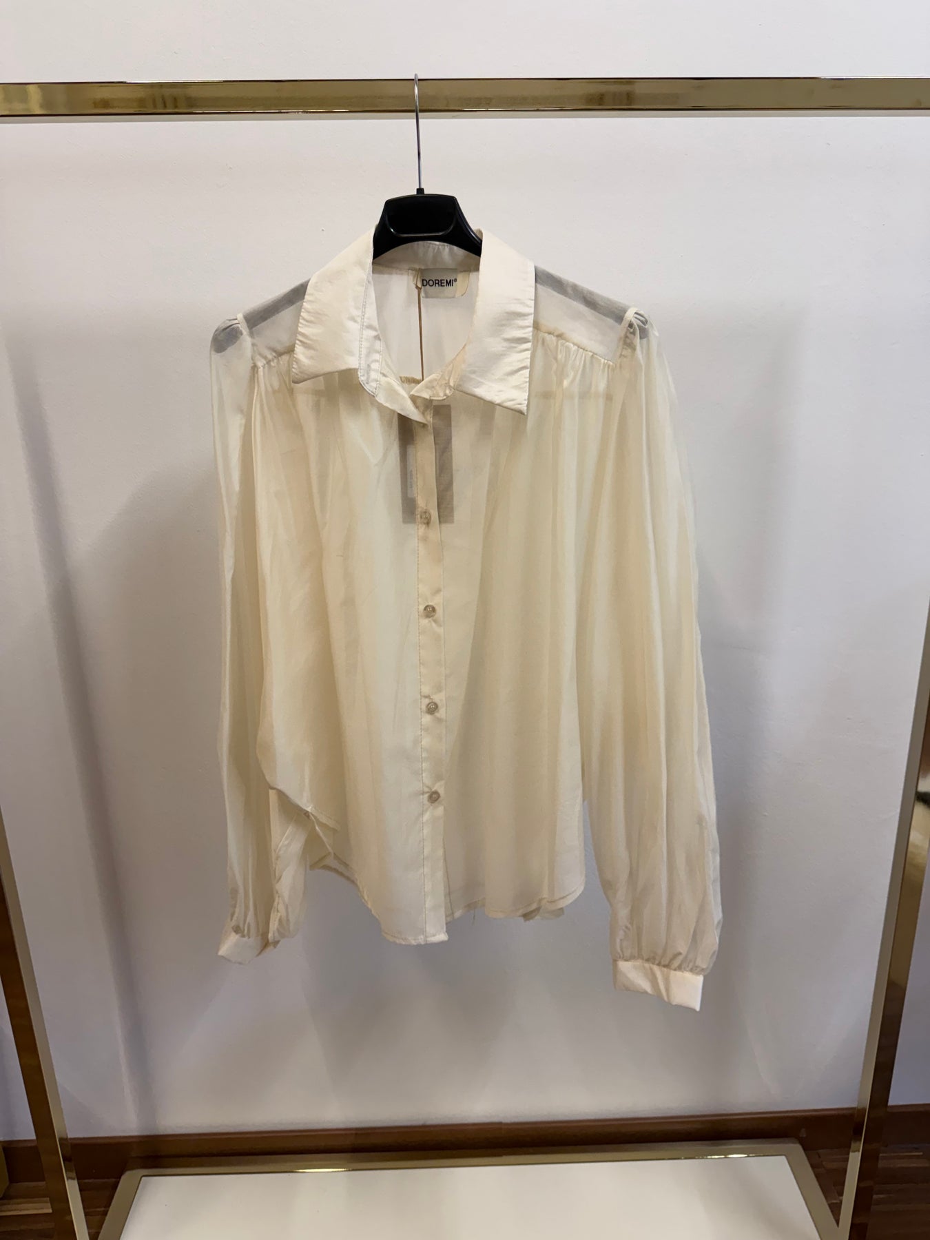 Camicia in viscosa con manica lunga a palloncino con bottoncino sul polso, taglia unica. Disponibile in 4 colori.