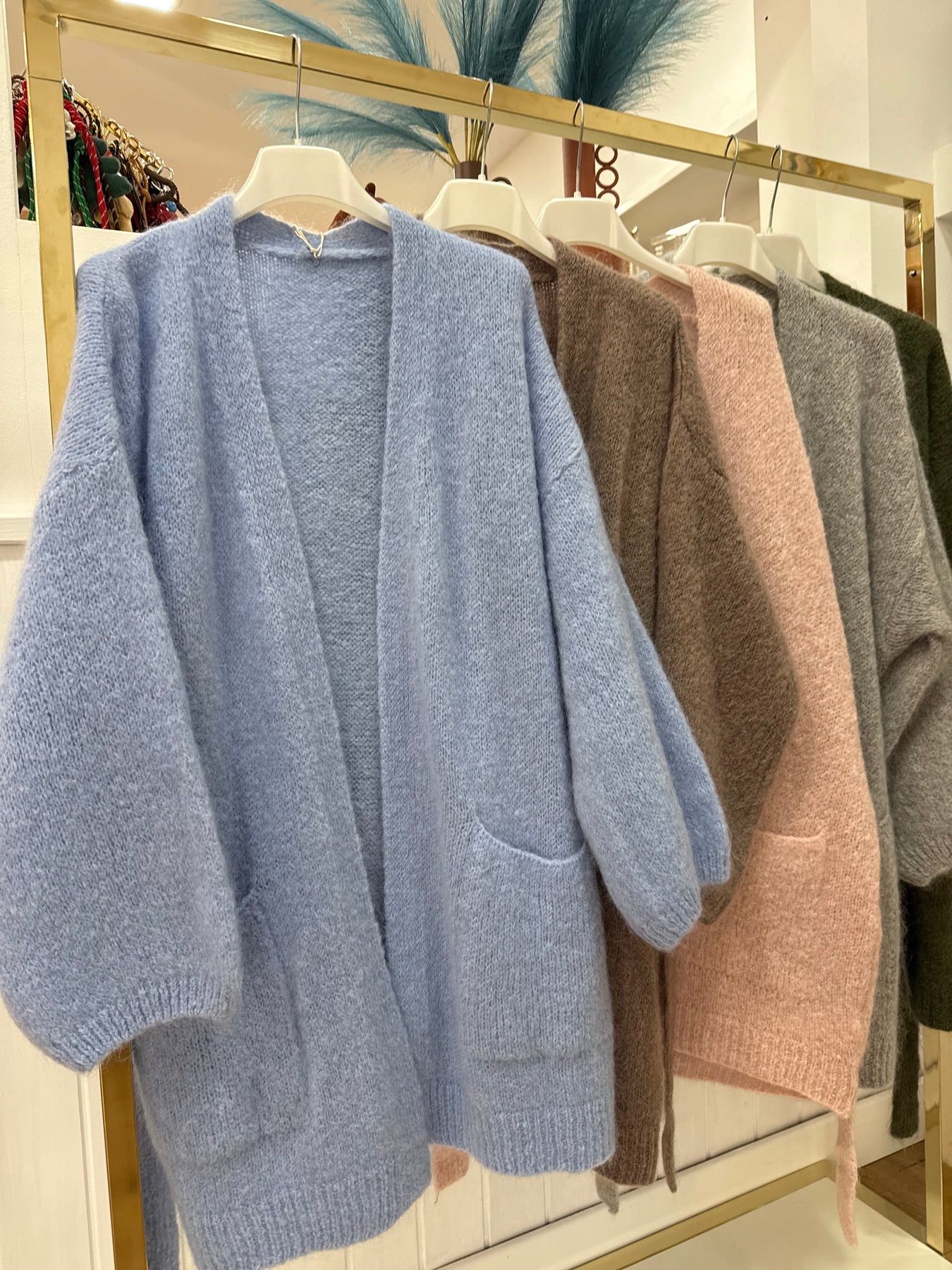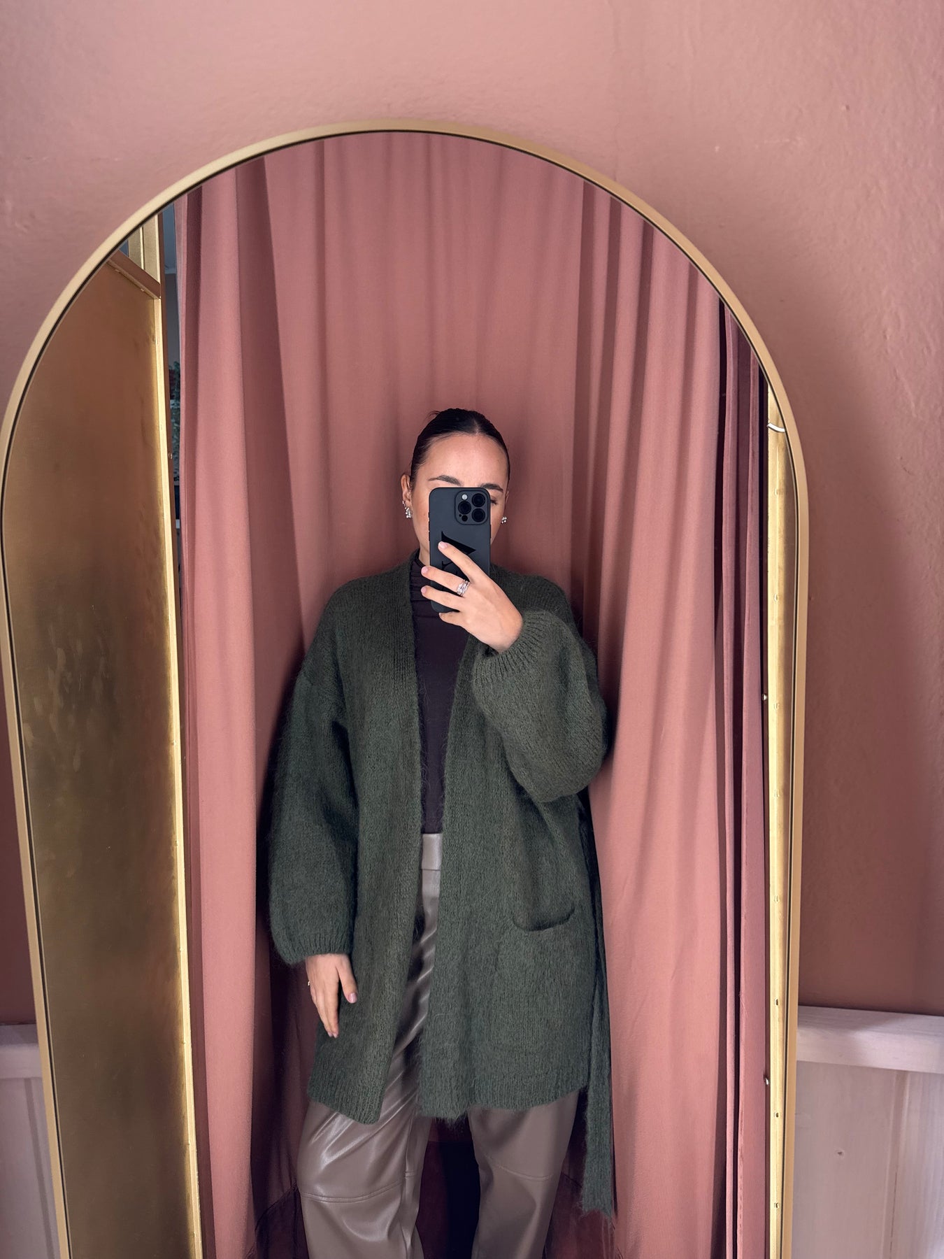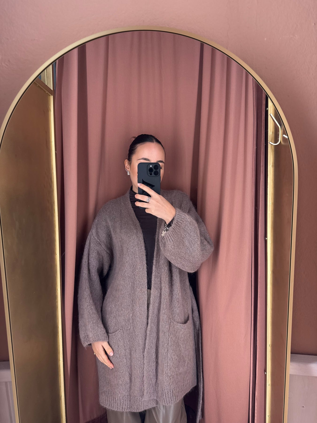Cardigan in mohair lungo con tasche con cintura super soffice non punge