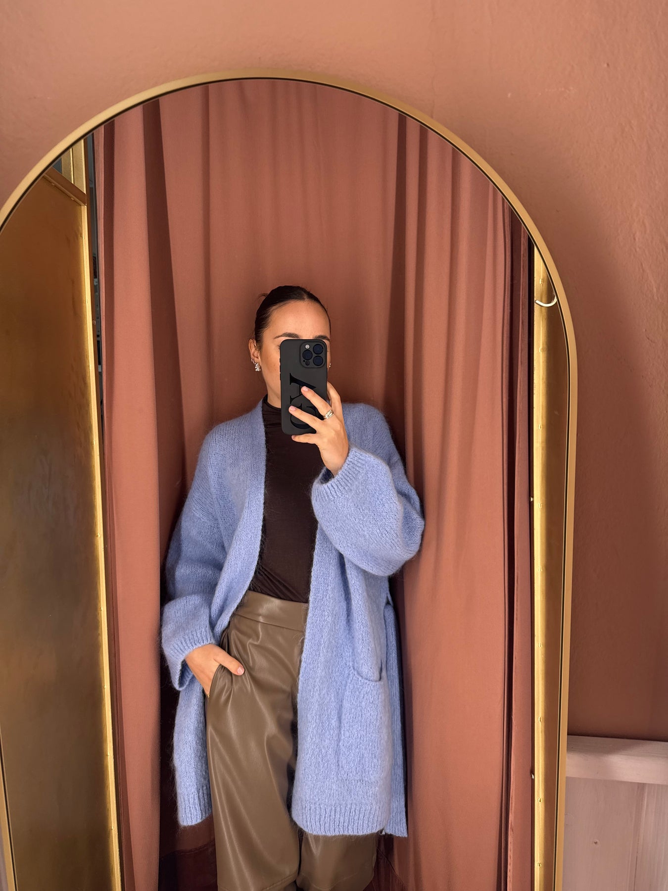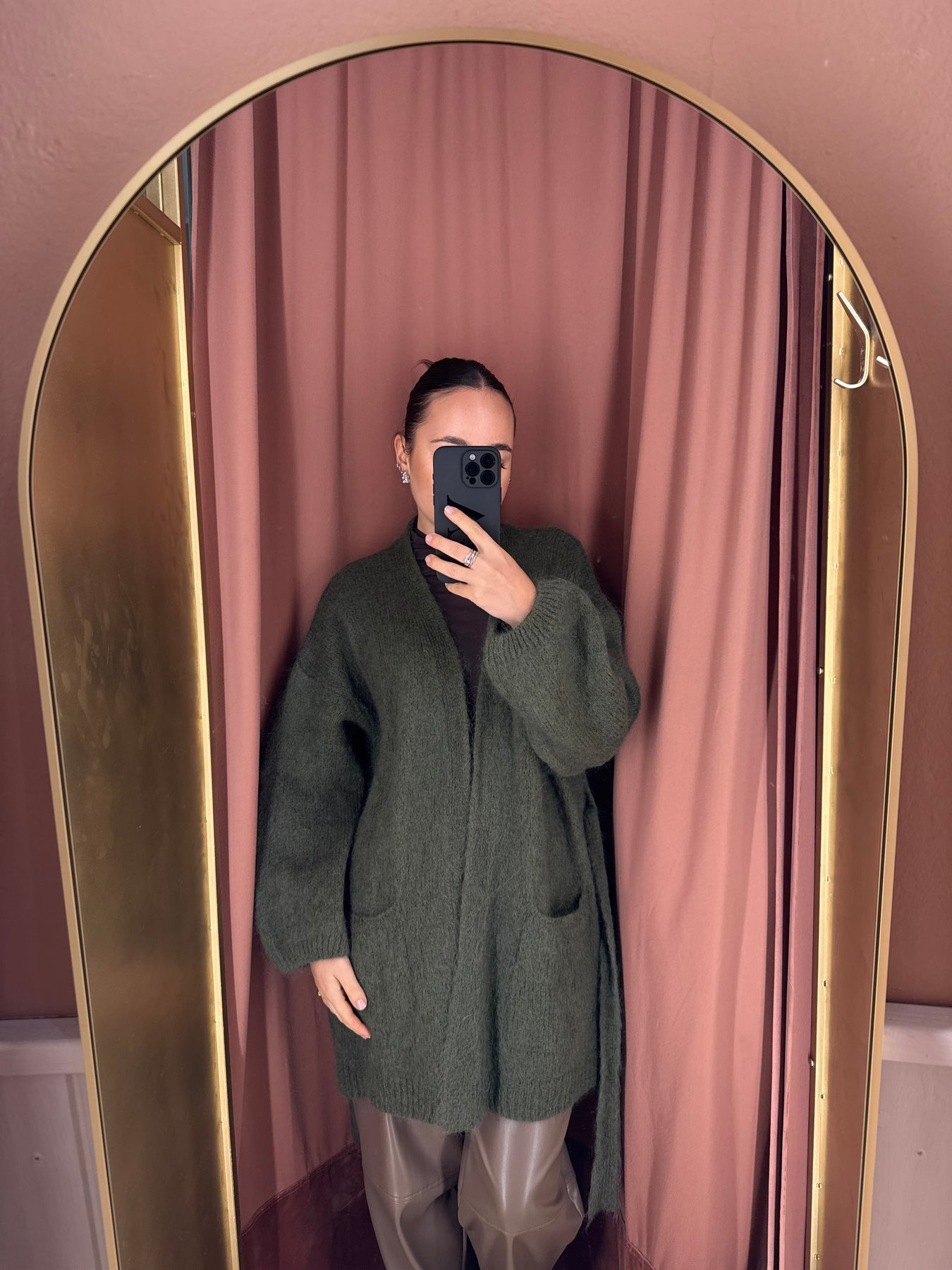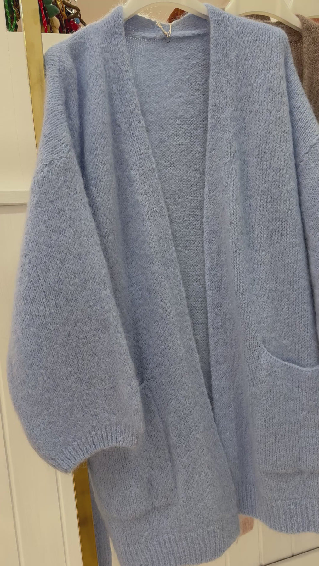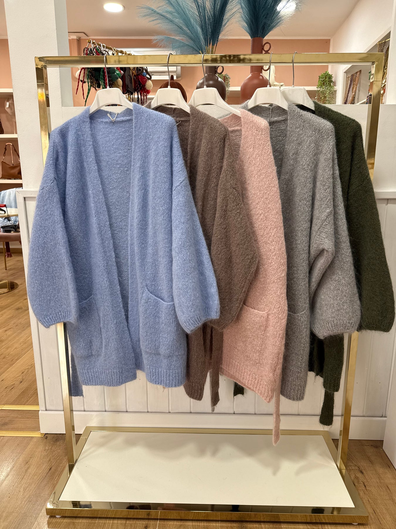 Cardigan in mohair lungo con tasche con cintura super soffice non punge