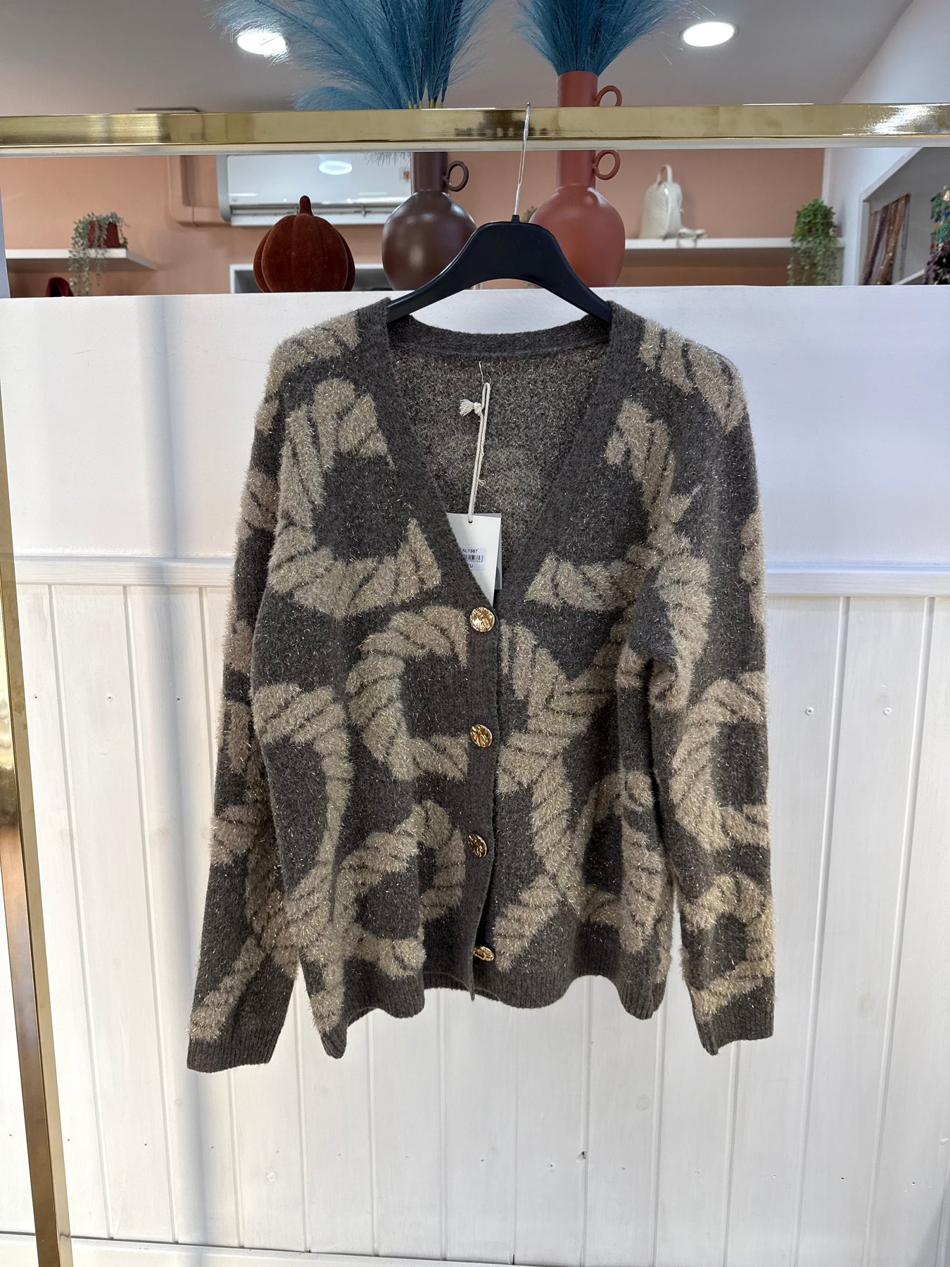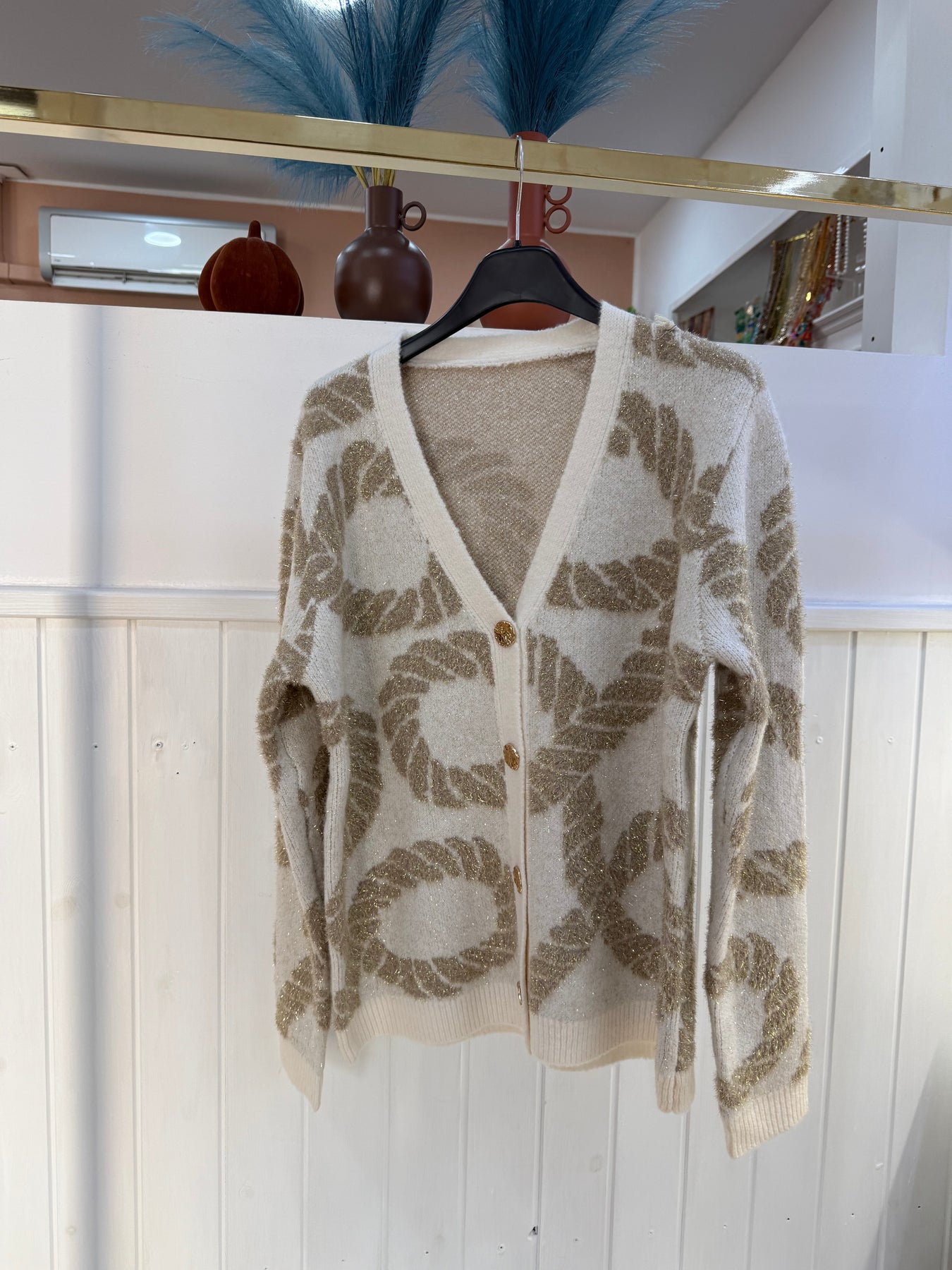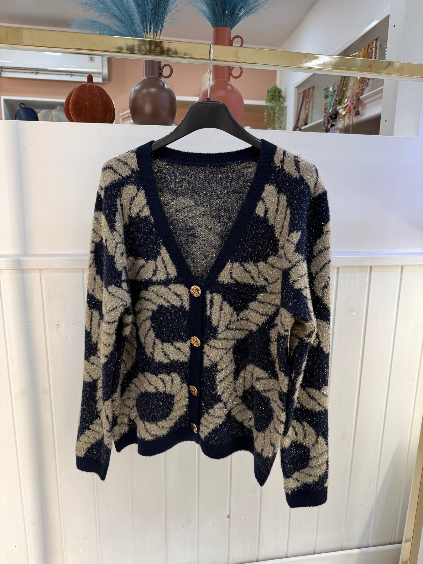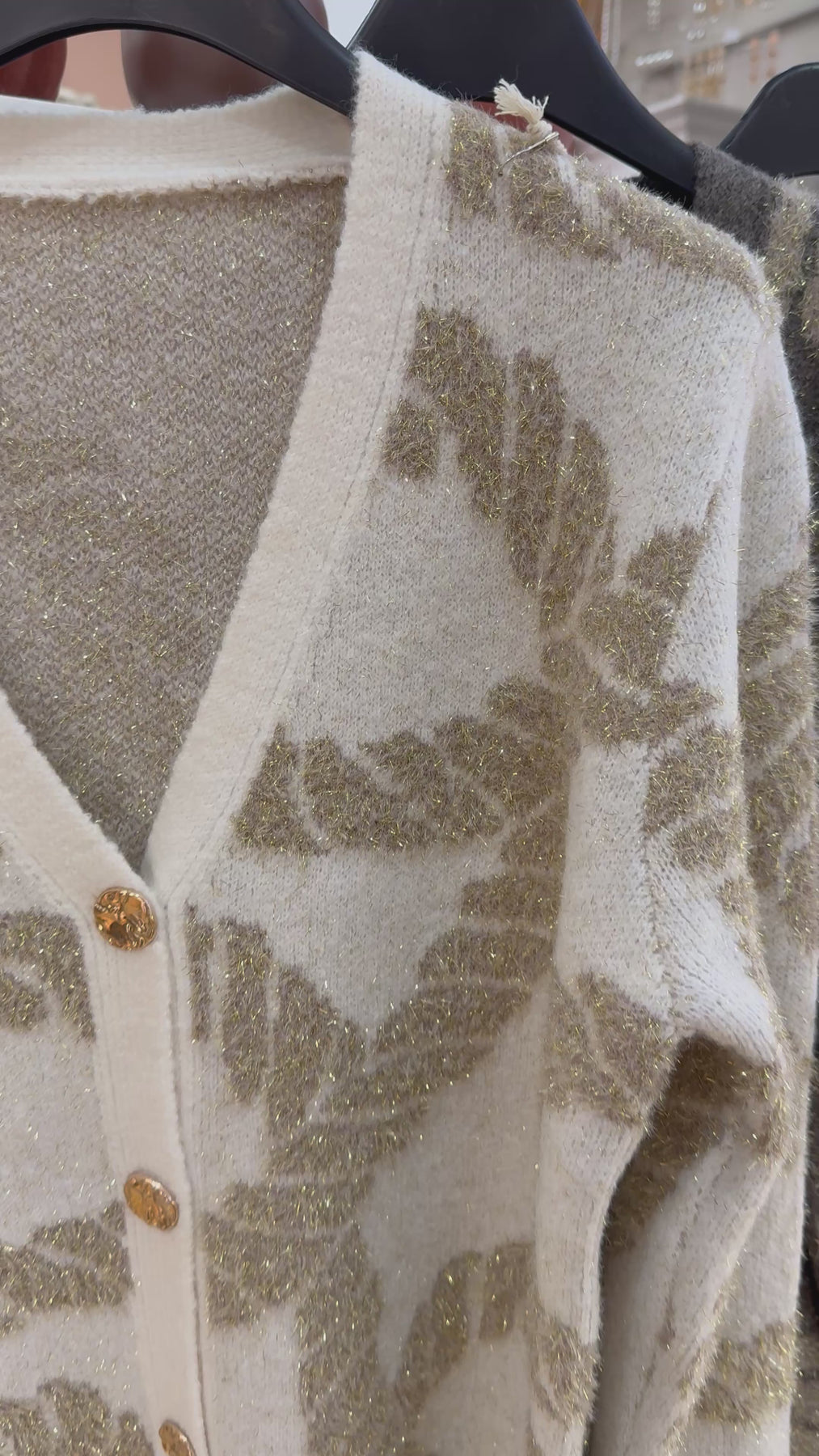 Cardigan con bottoni lavorati oro , taglia unica. Vestibilita’ fino a taglia XL