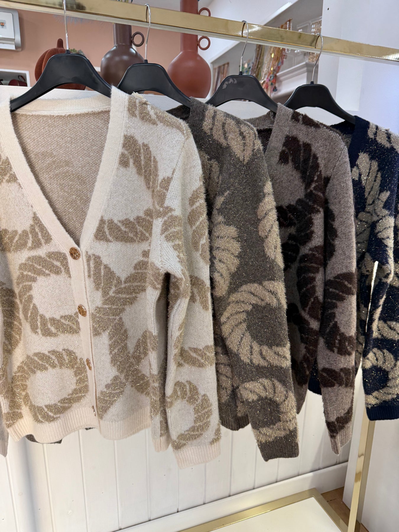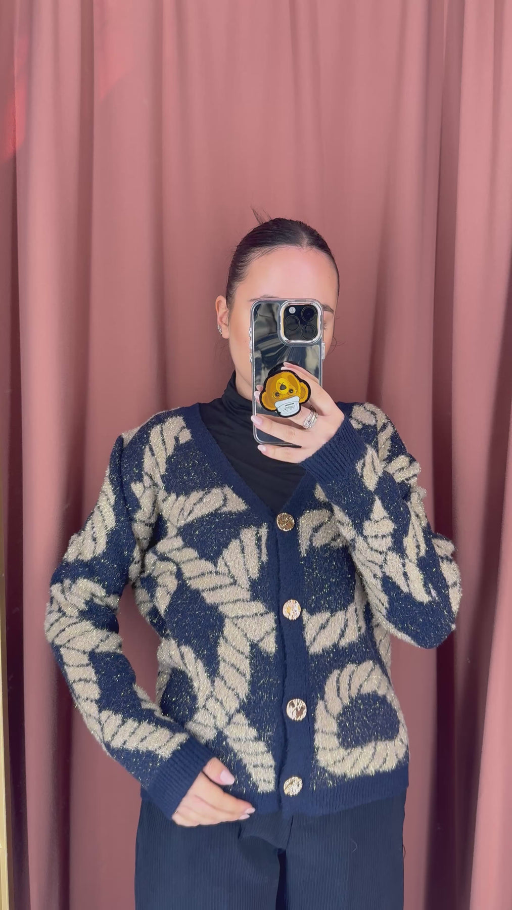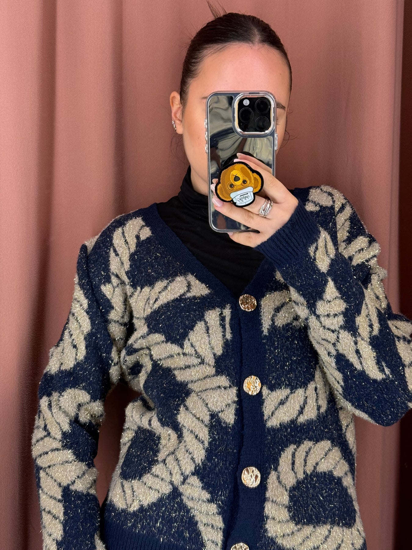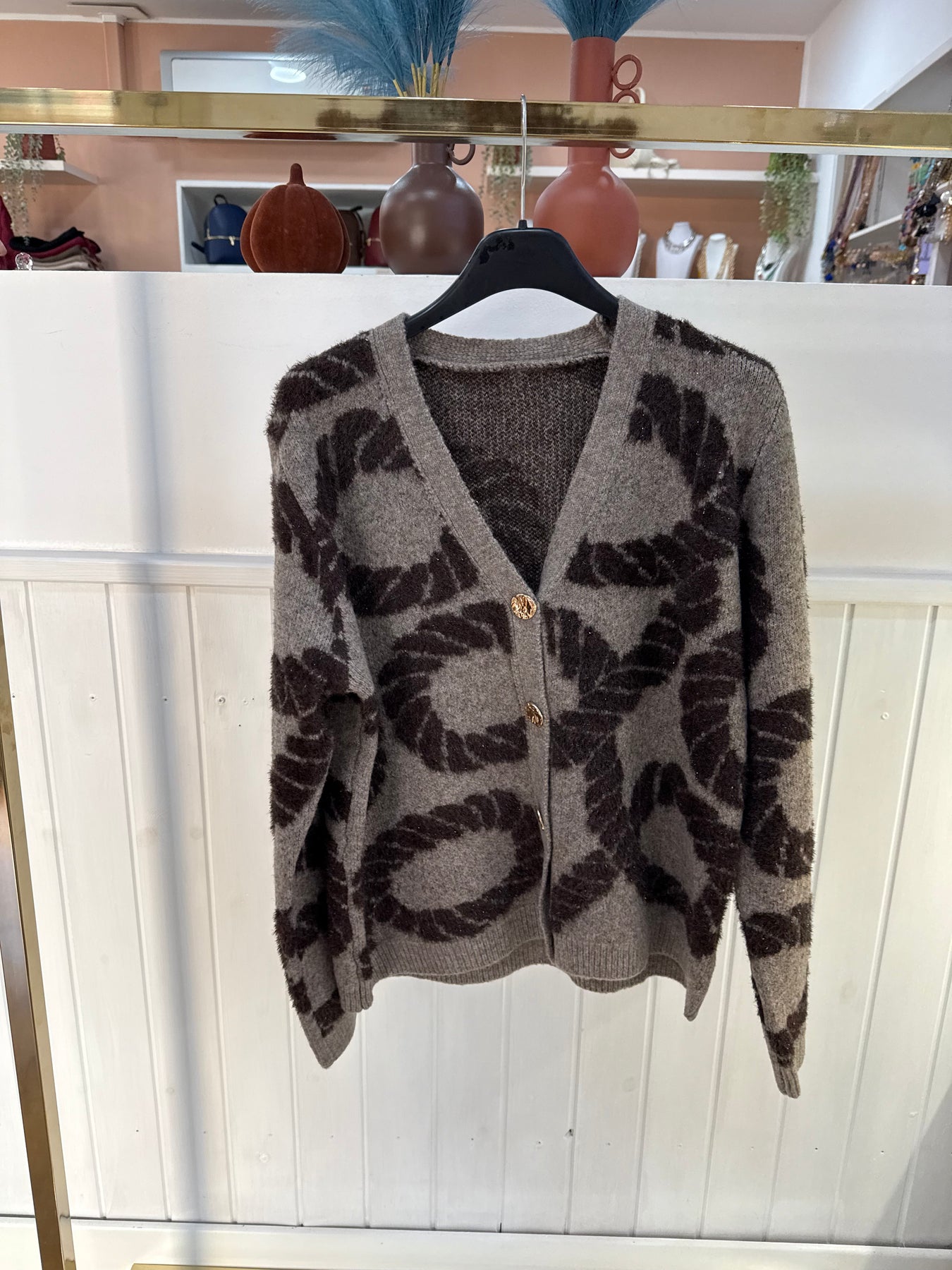 Cardigan con bottoni lavorati oro , taglia unica. Vestibilita’ fino a taglia XL