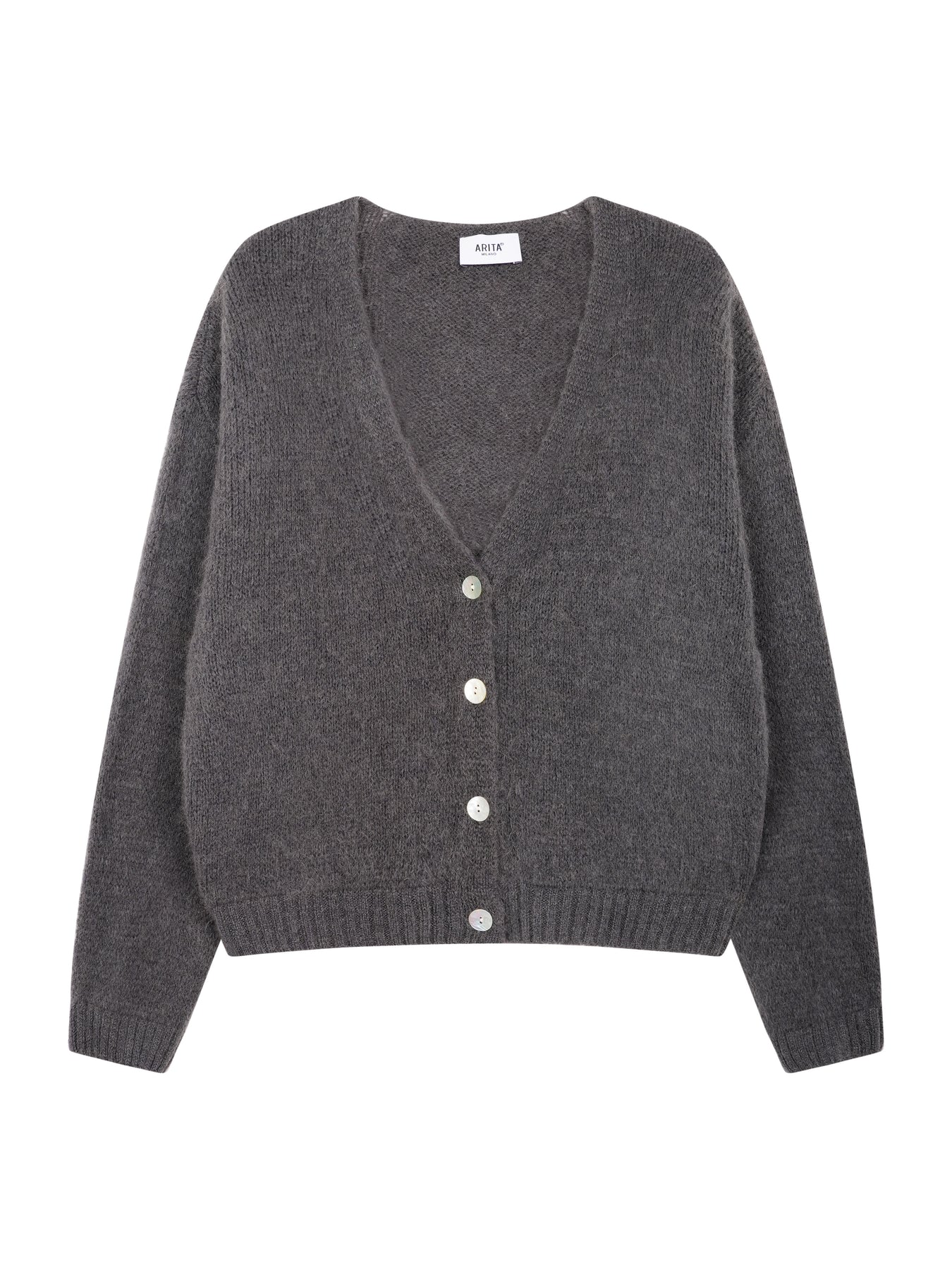 Maglione a cardigan con bottoni bianchi madreperla, tinta unita, taglia unica.