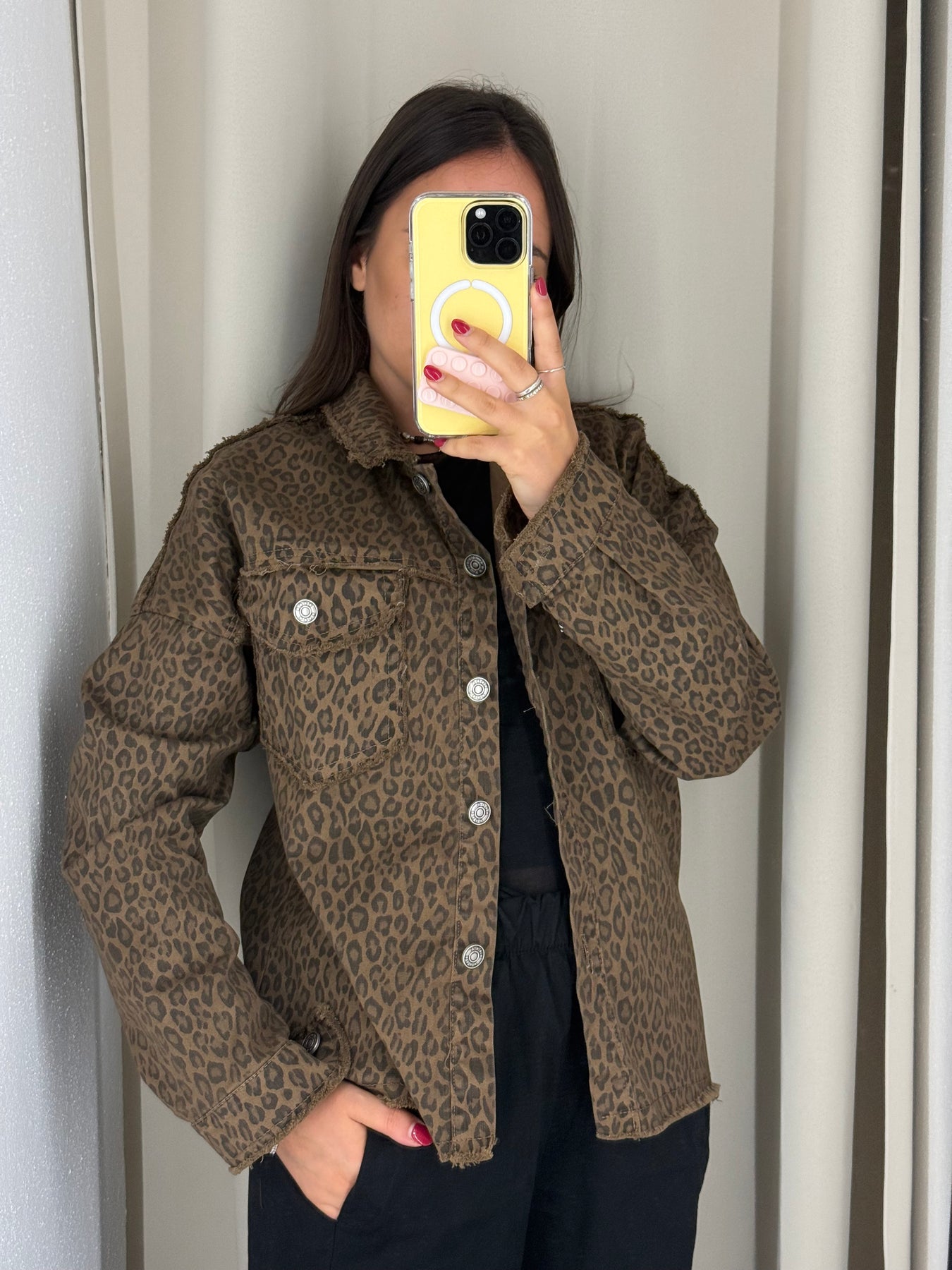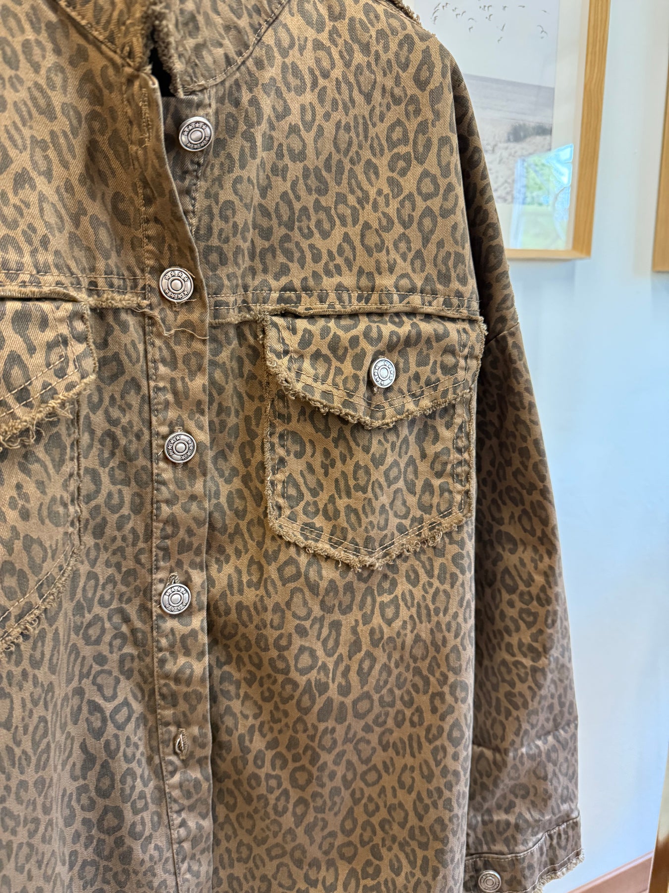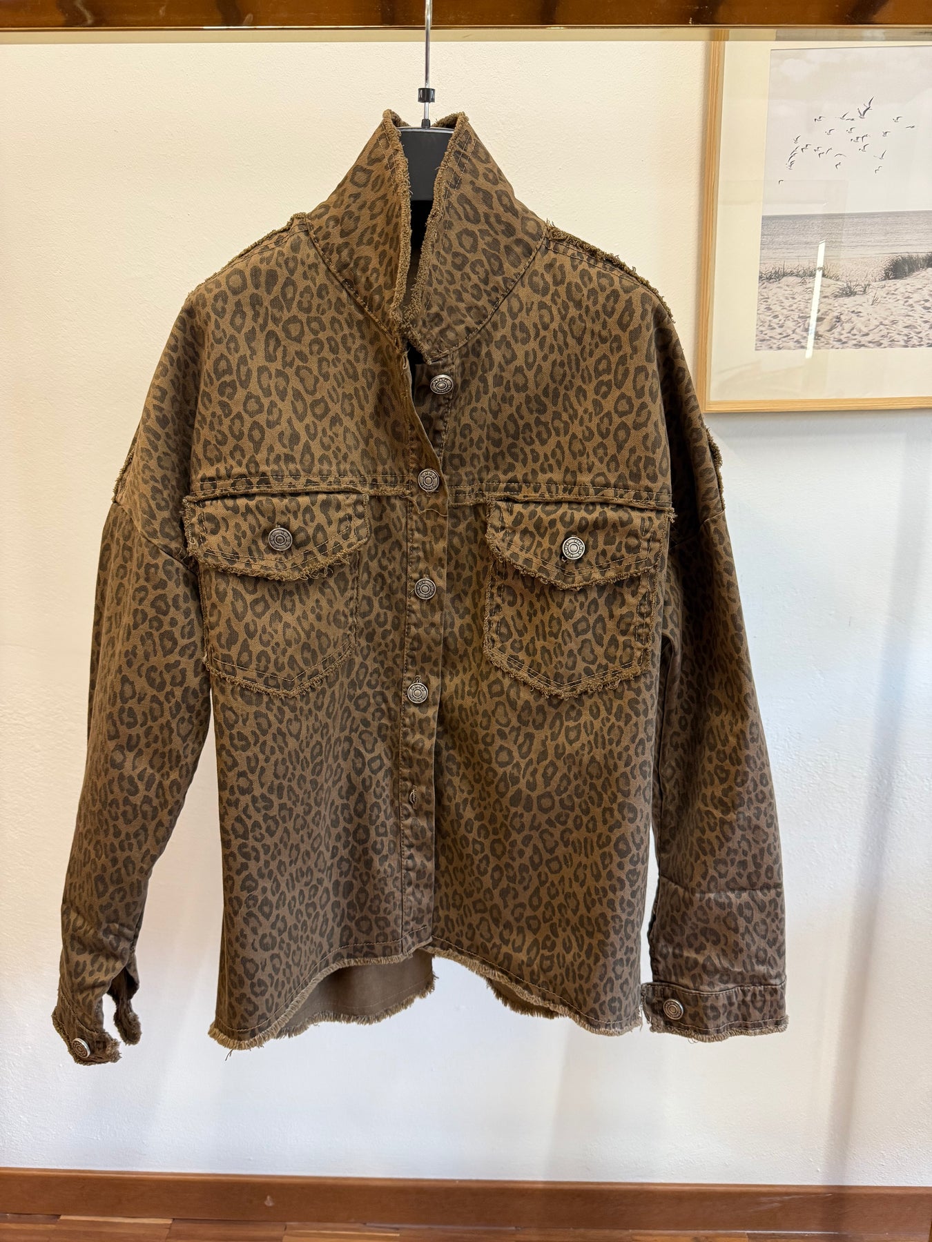 Giacca in denim maculata con bottoni , taglia unica. Vestibilita’ fino a taglia L