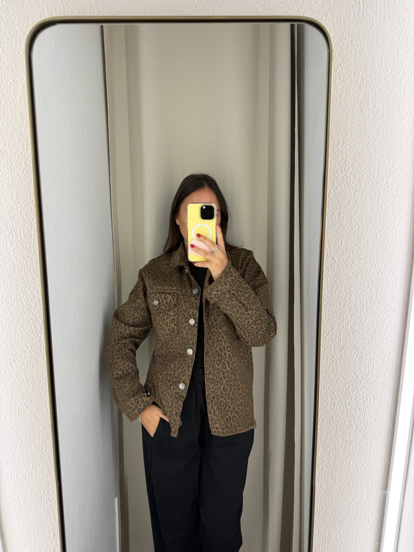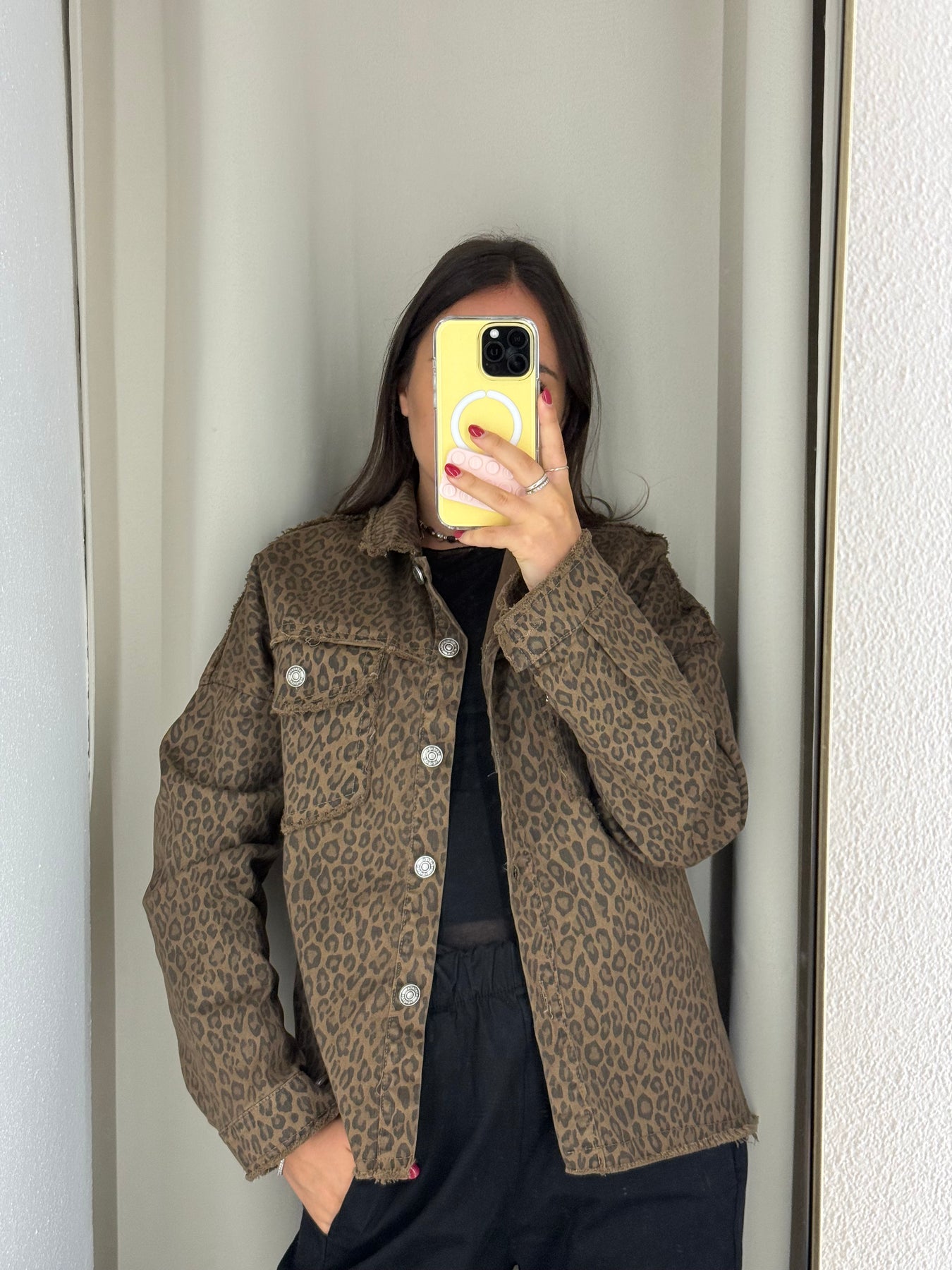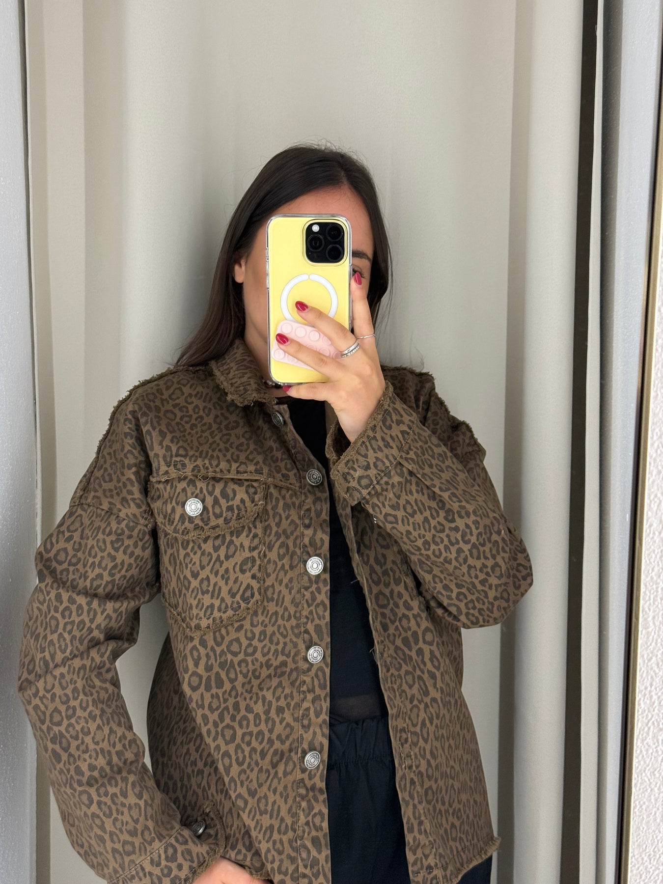 Giacca in denim maculata con bottoni , taglia unica. Vestibilita’ fino a taglia L