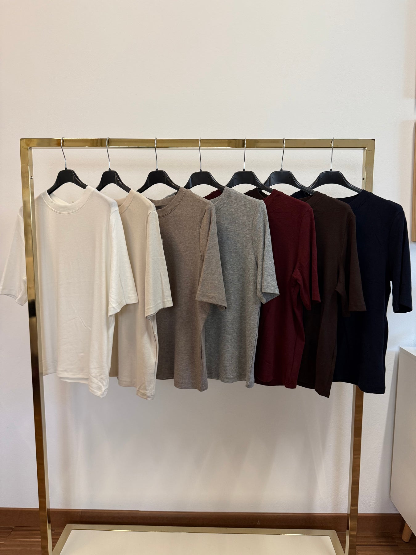Maglietta a girocollo basic , taglia unica, disponibile in diverse varianti colore.