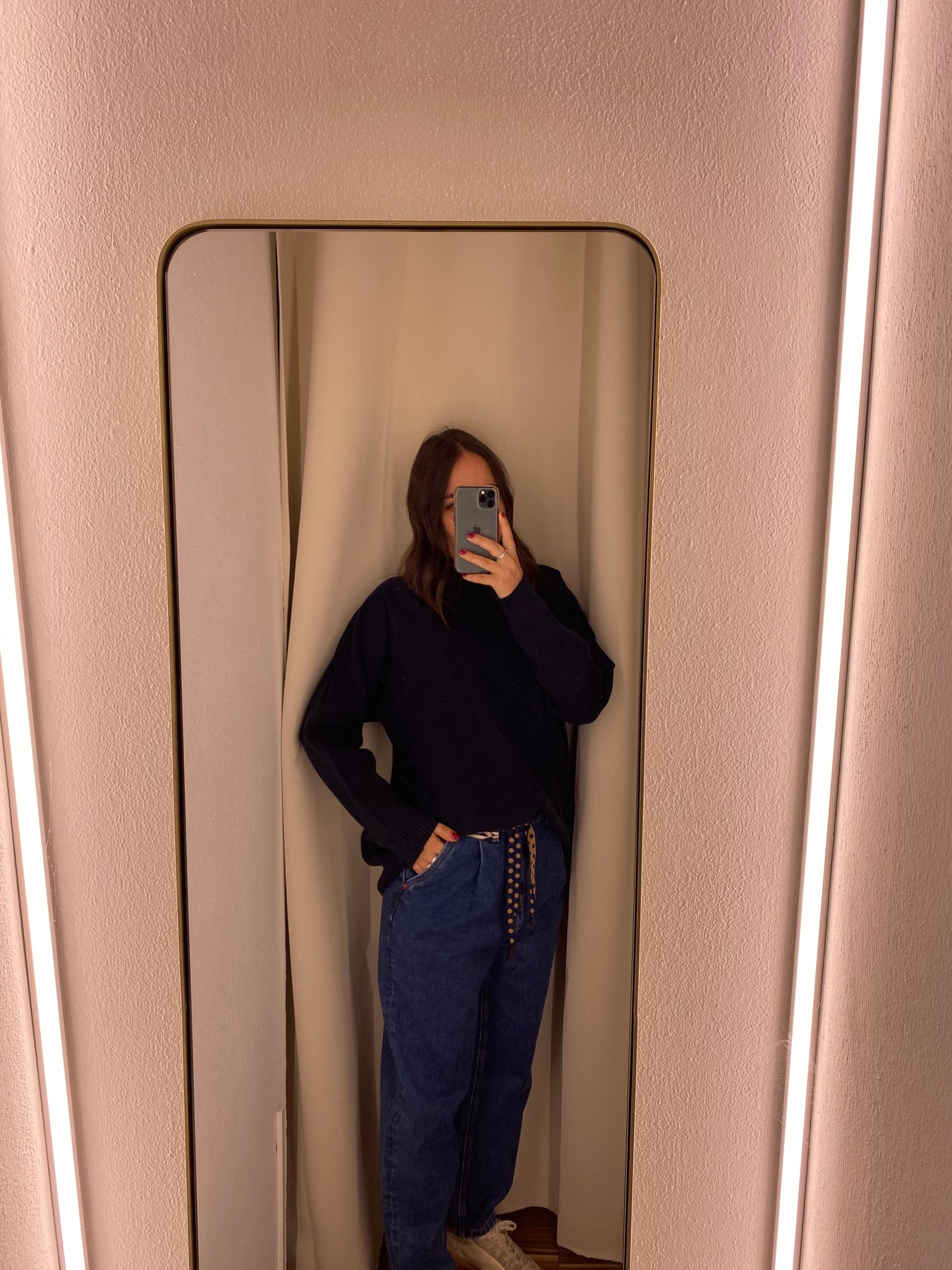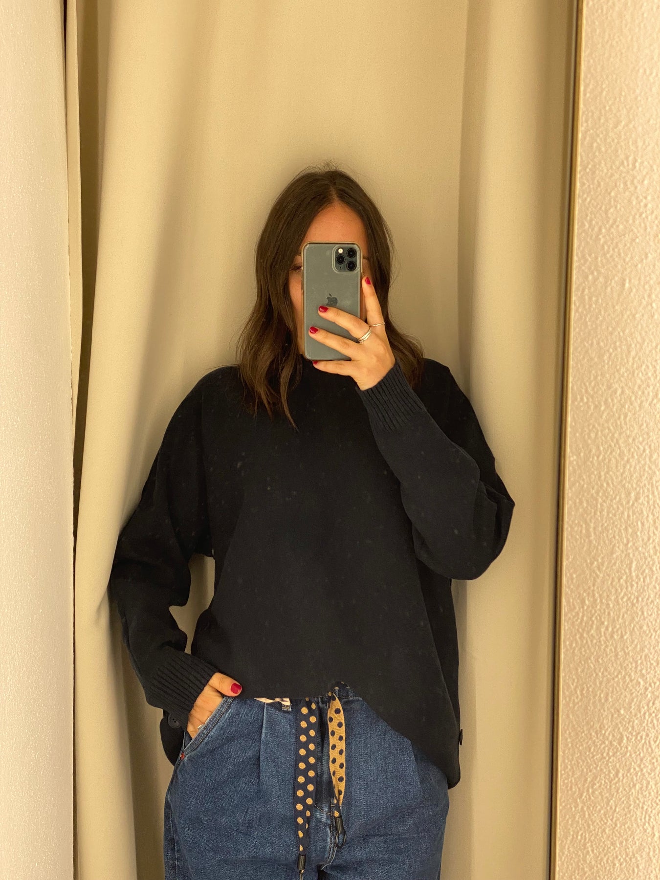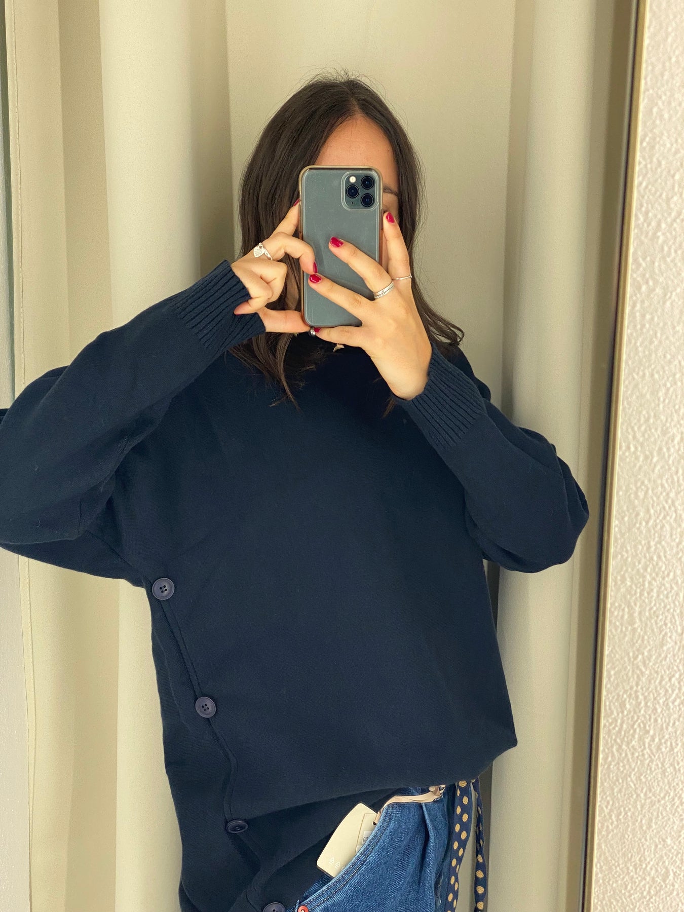 Maglione a girocollo a scatola modello over con bottoncini sul laterale, taglia unica. Vestibilita’ dalla M alla XL