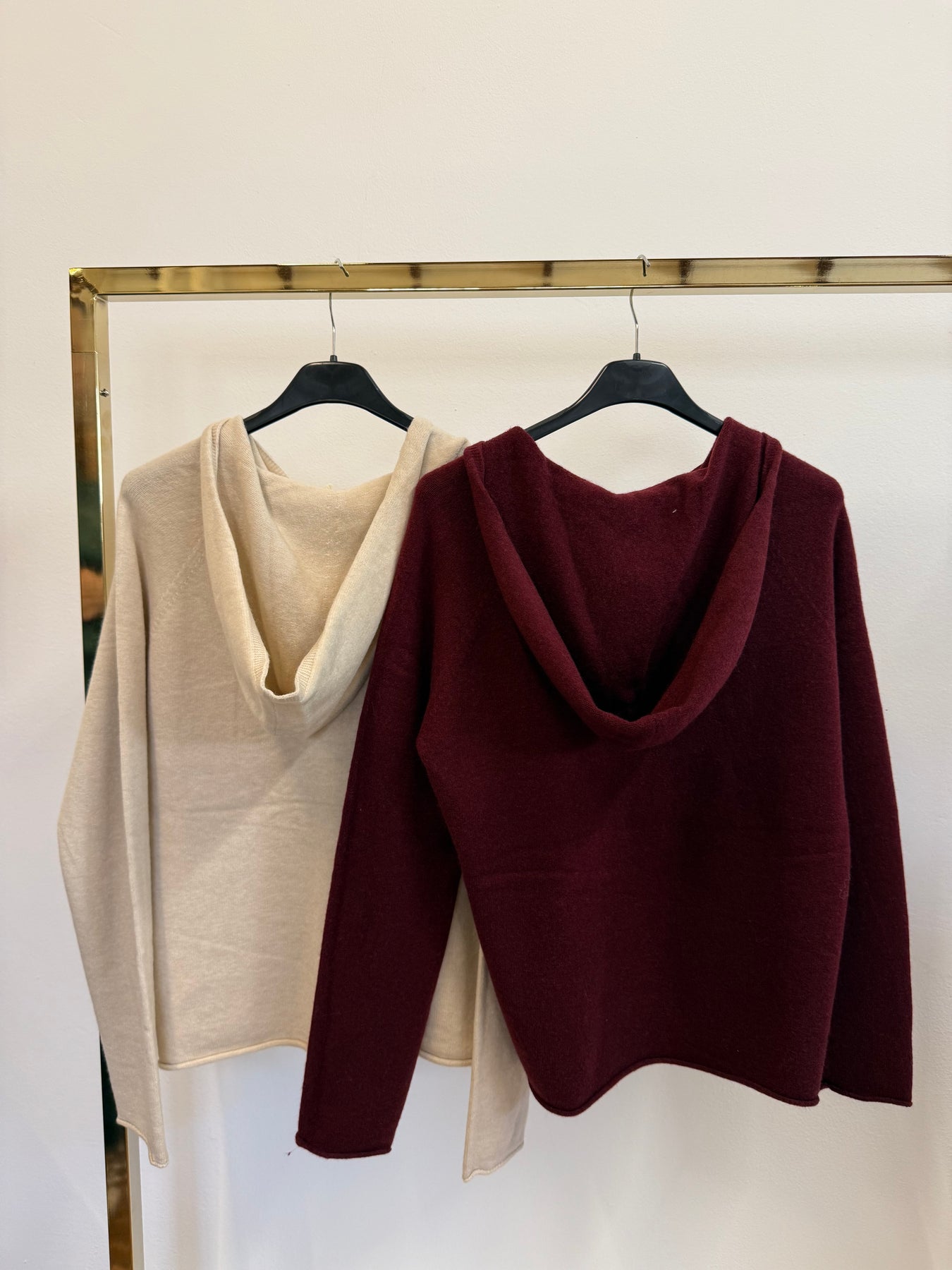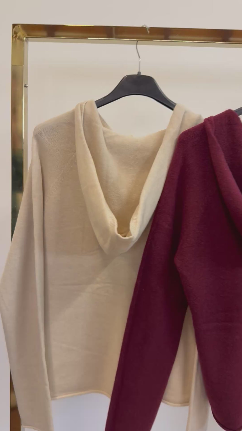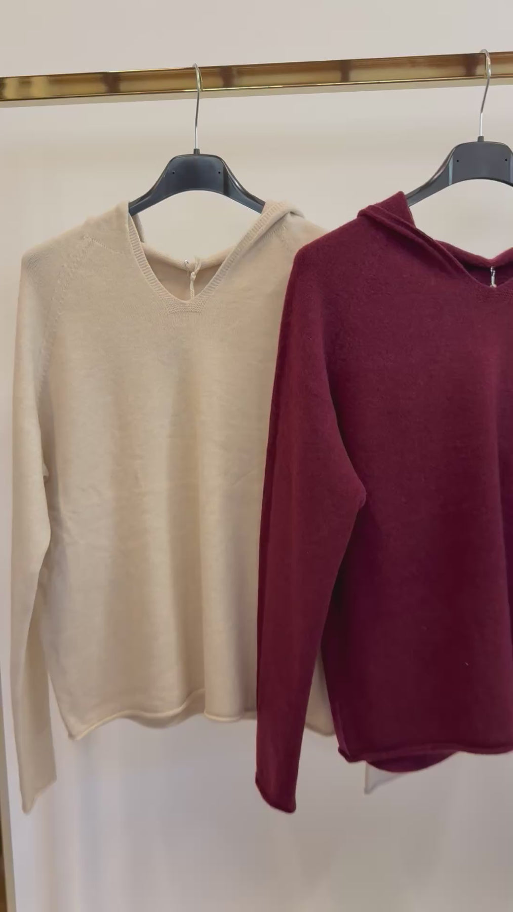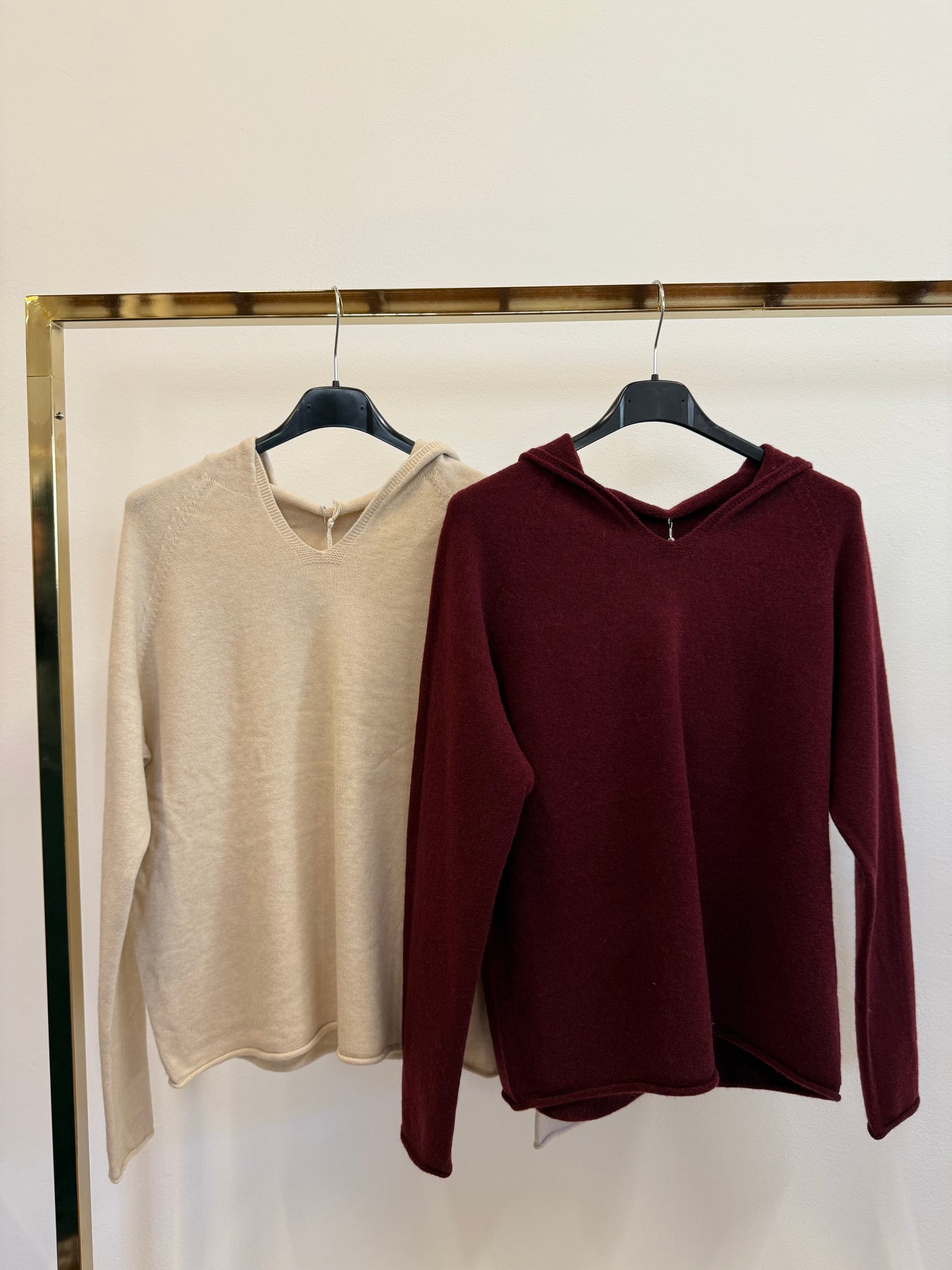 Maglione a V con cappuccio, vestibilita’ slim, taglia unica.