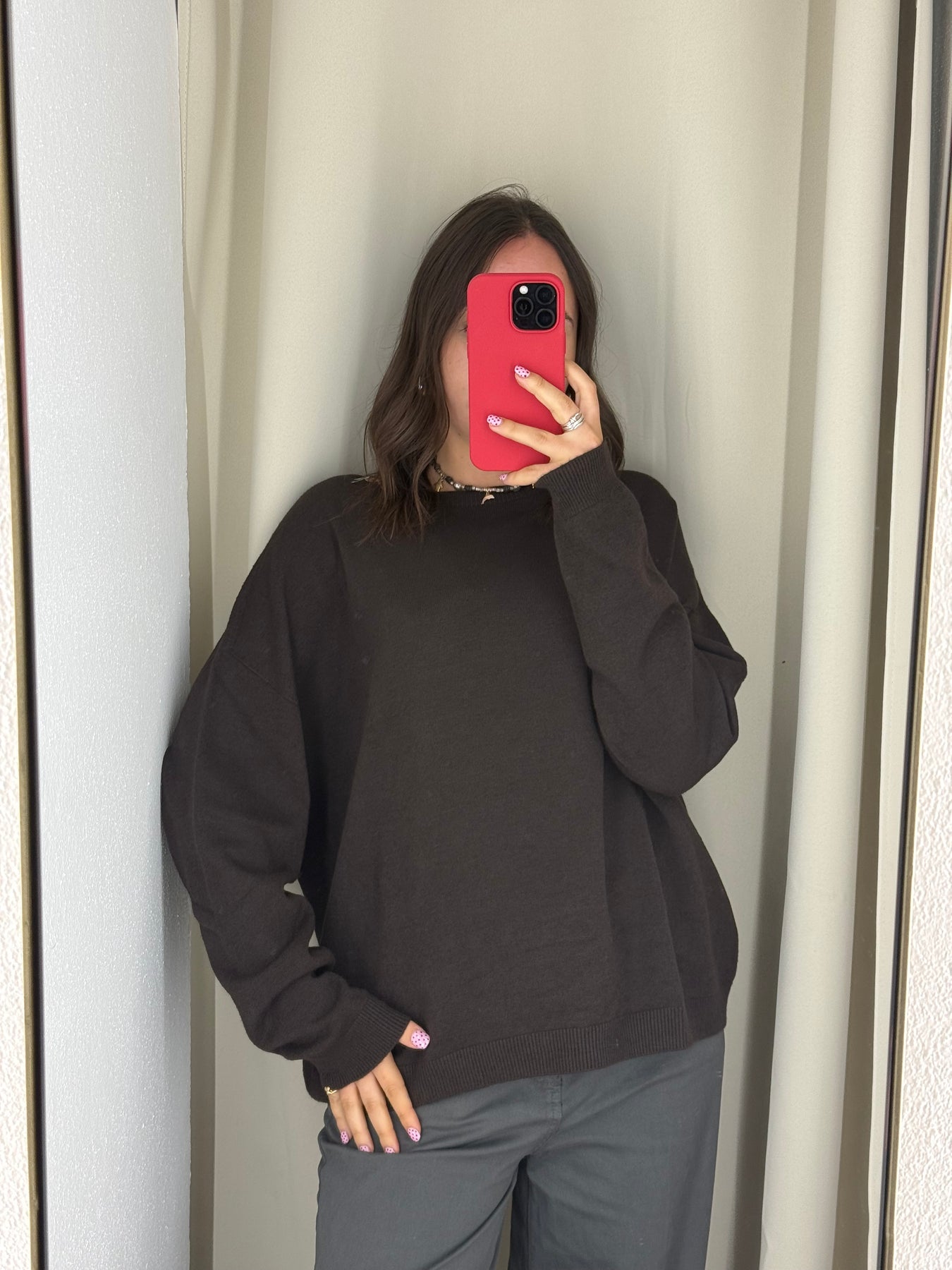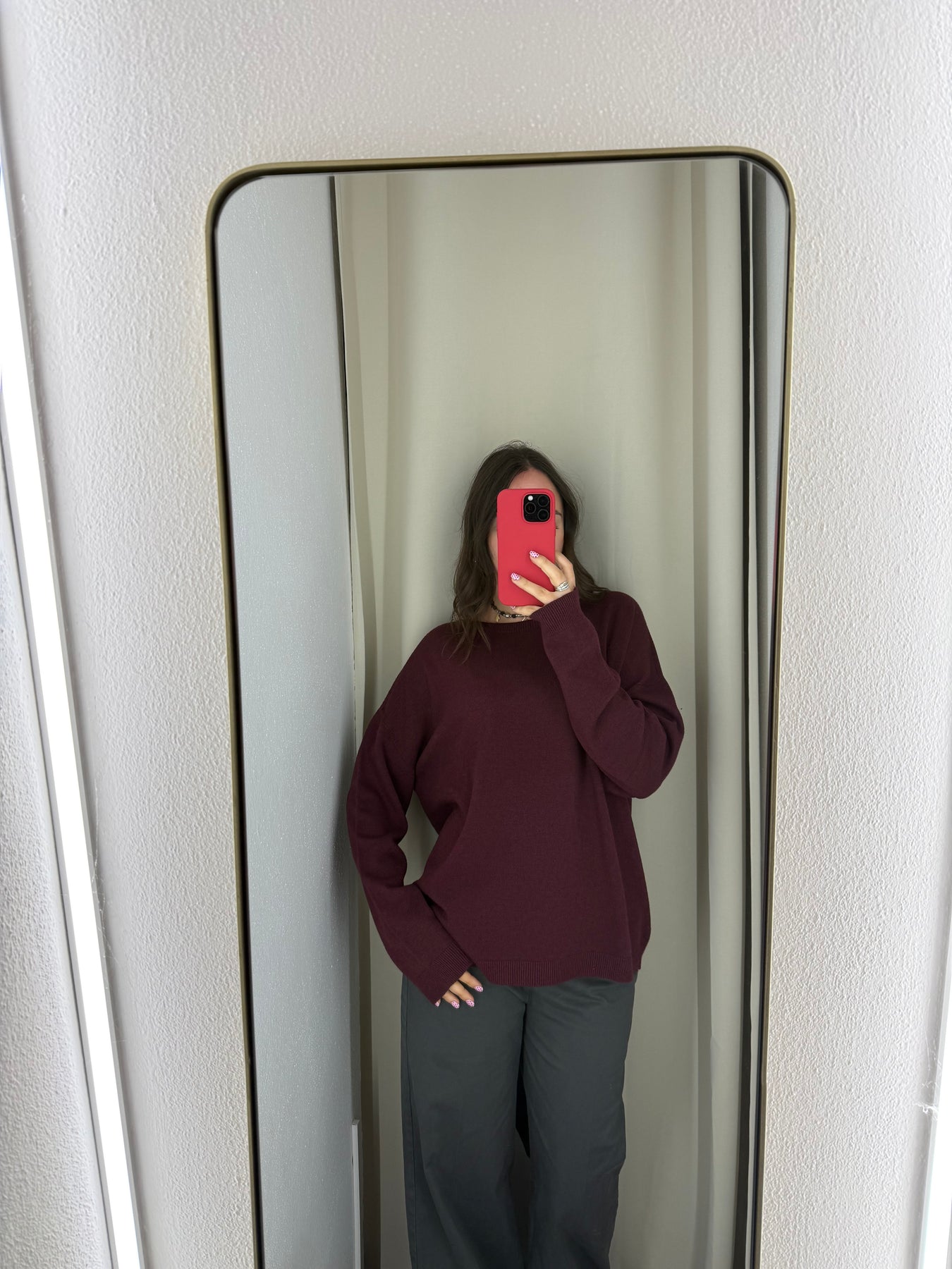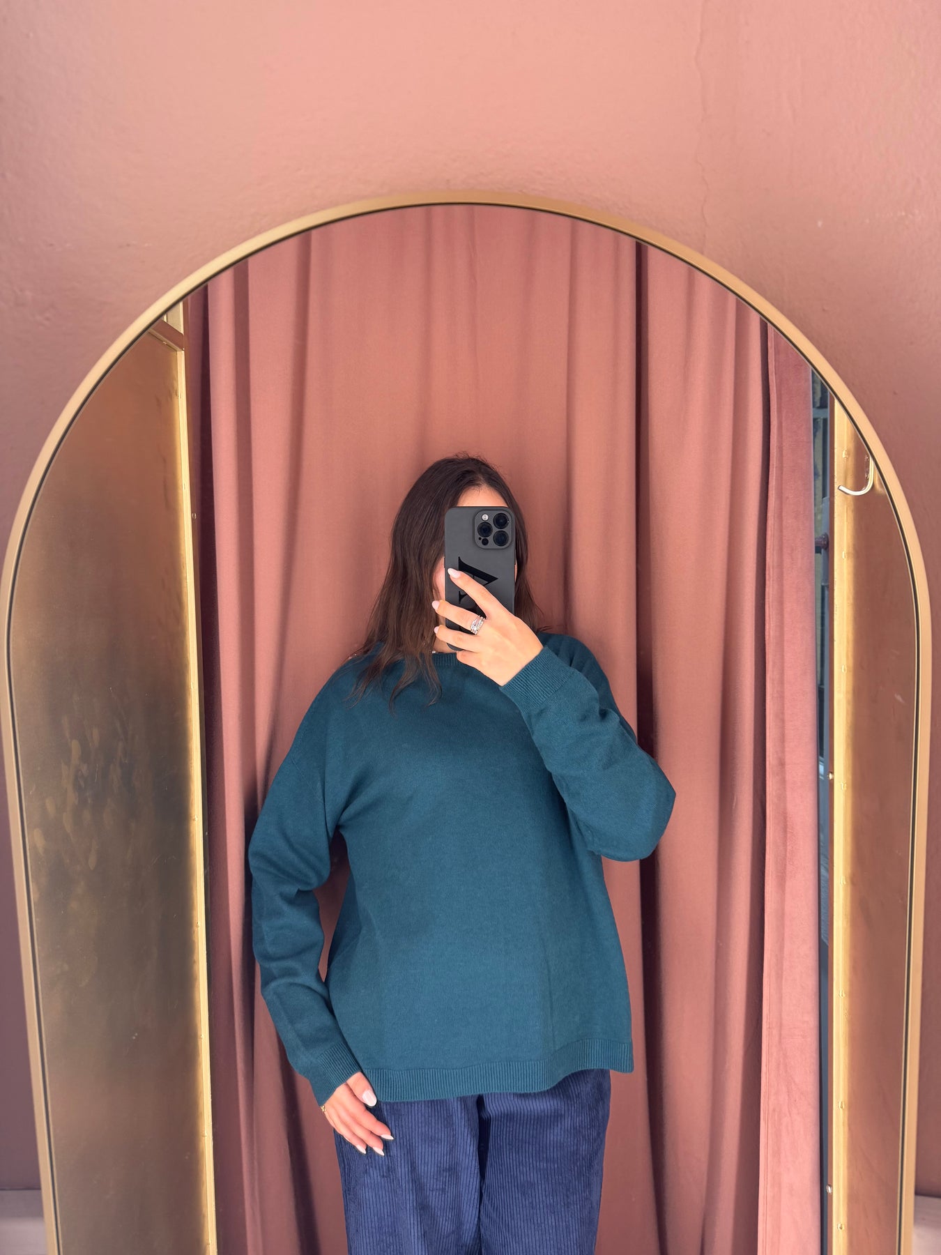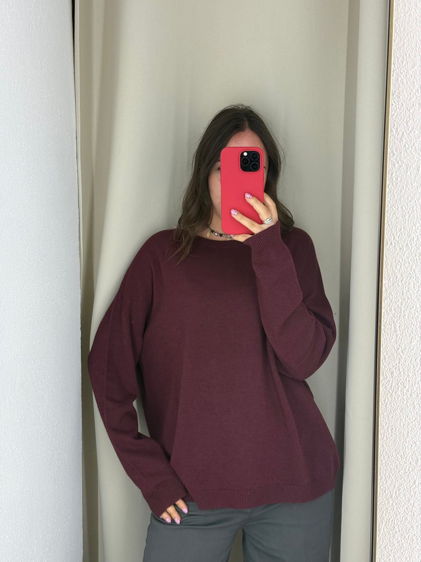 Maglione girocollo barchetta lungo , leggermente over e manica lunga tagli unica, vestibilita fino XL
