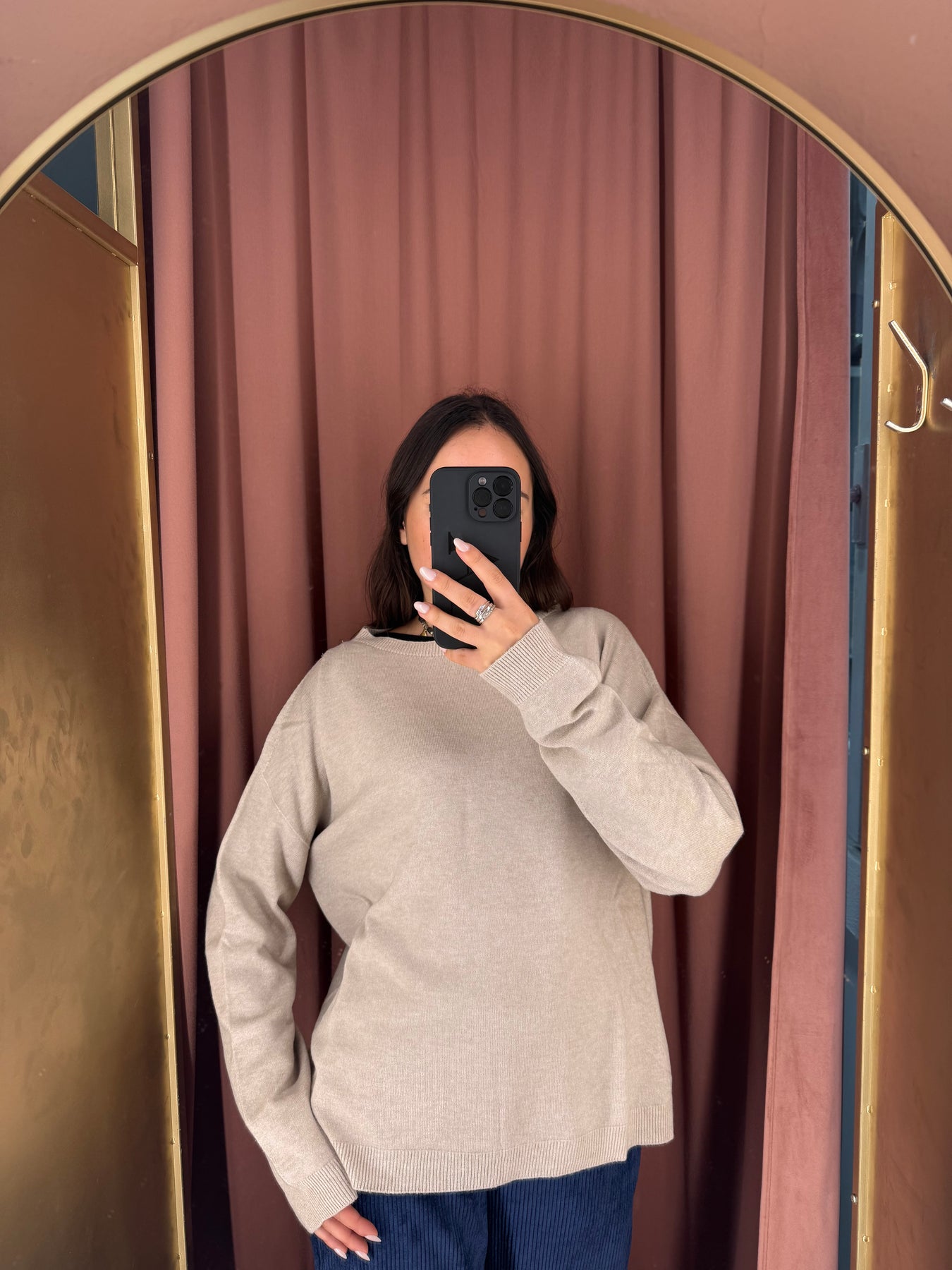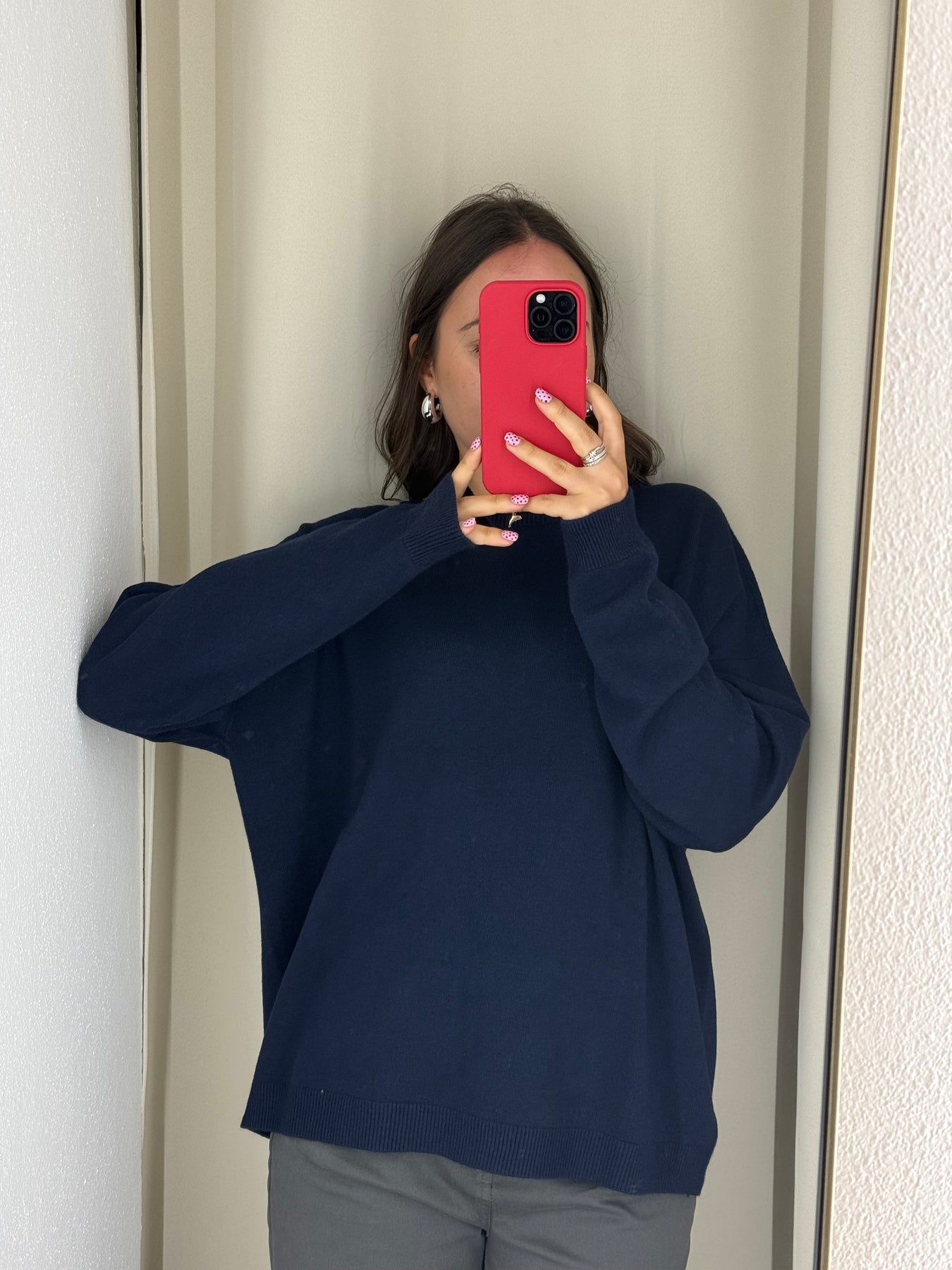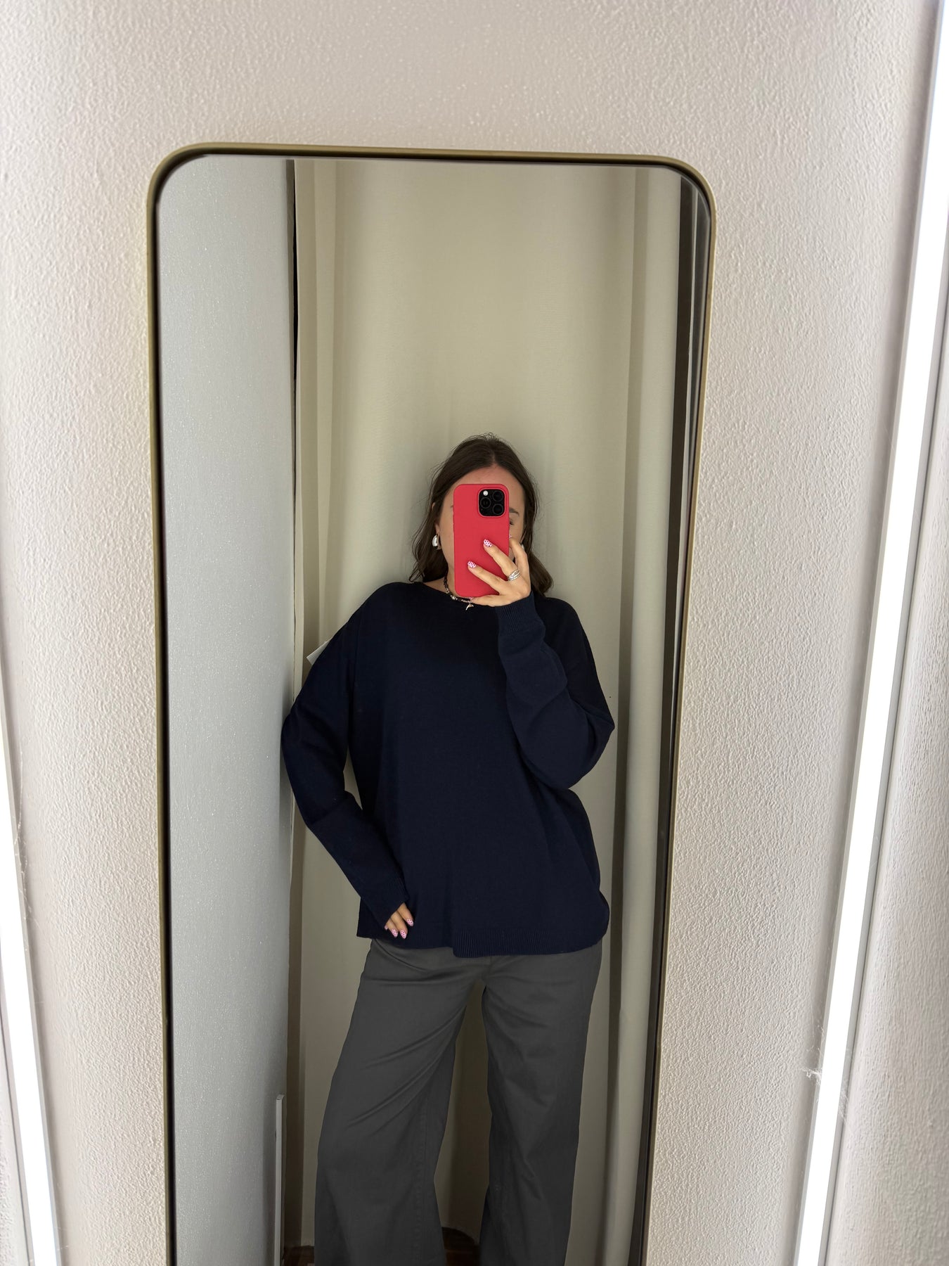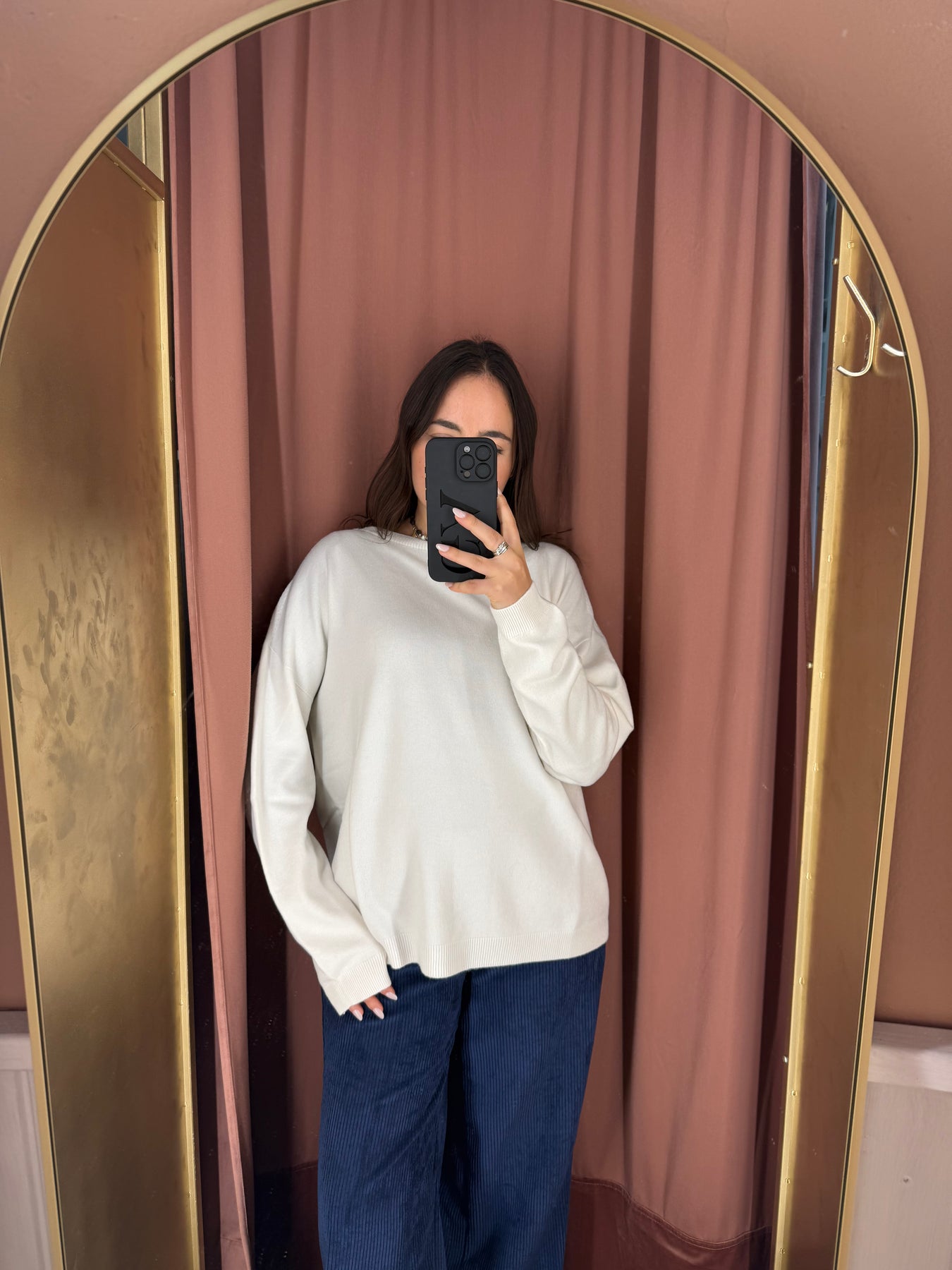 Maglione girocollo barchetta lungo , leggermente over e manica lunga tagli unica, vestibilita fino XL