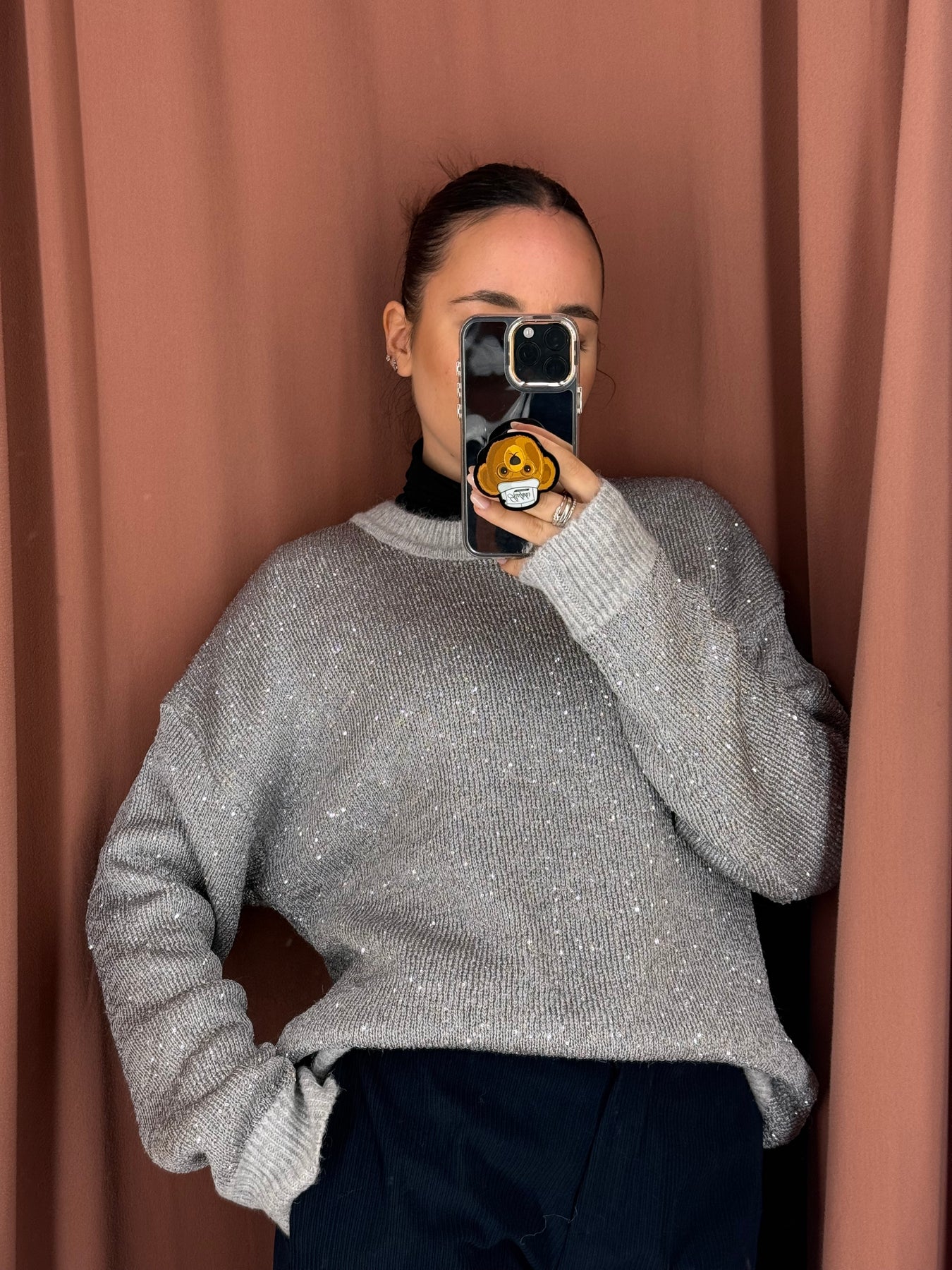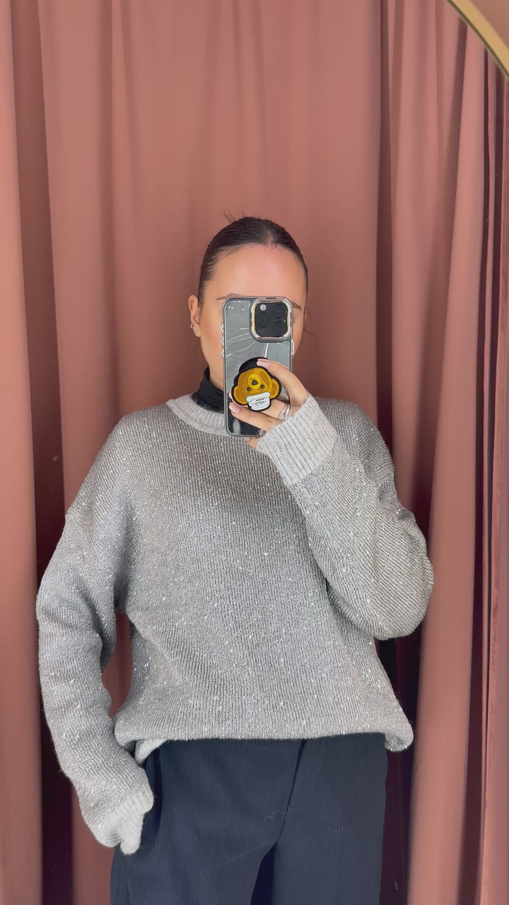 Maglione con lurex taglia unica, vestibilita’ fino a taglia XL.