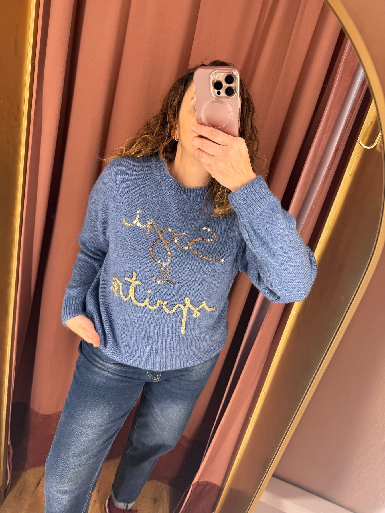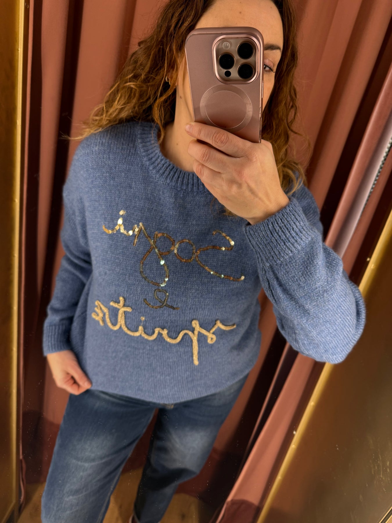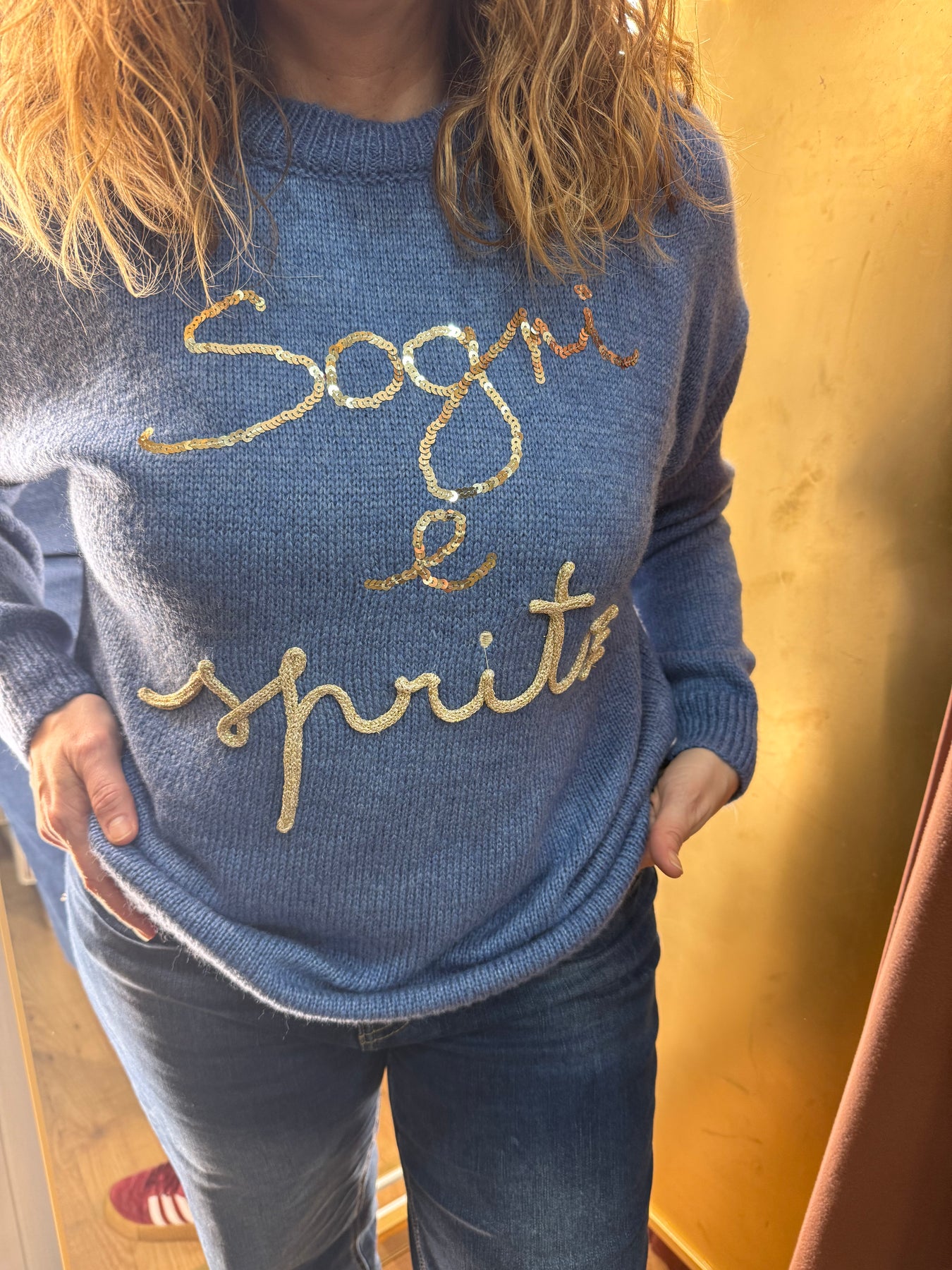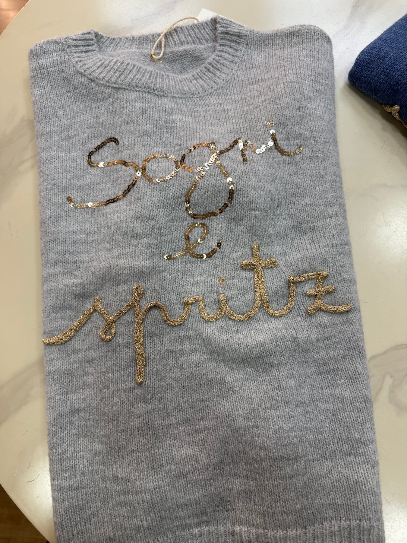 Maglione a girocollo con scritta oro sogni e spritz, taglia unica.