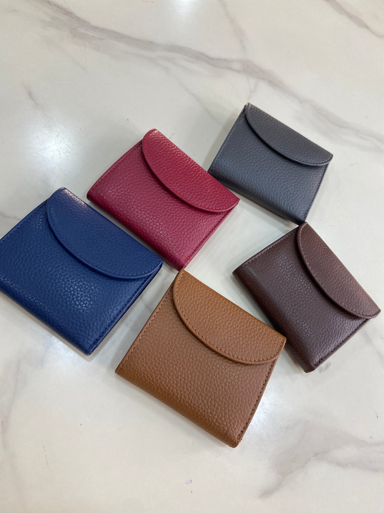 Portafoglio in vera pelle con bottone .