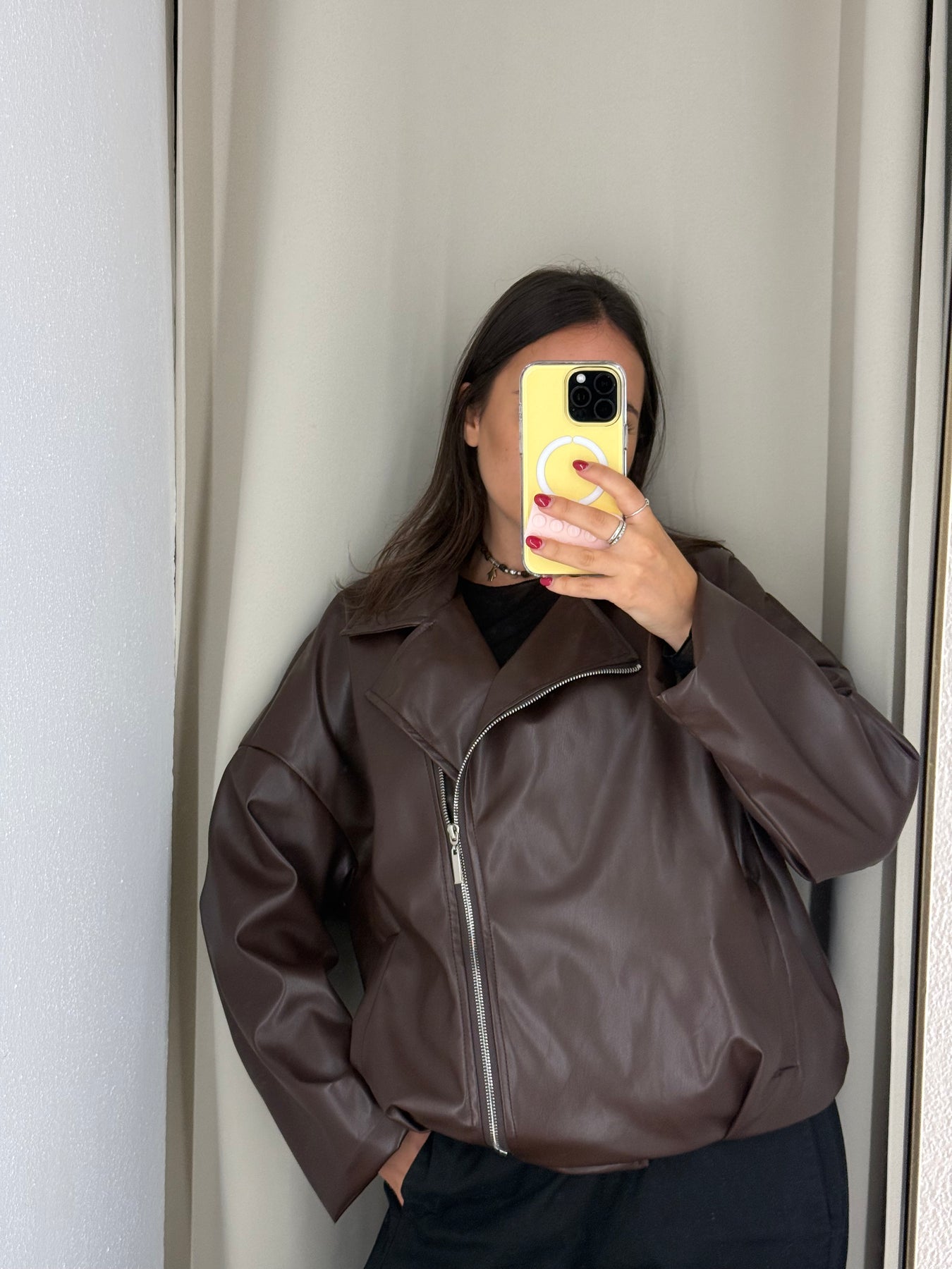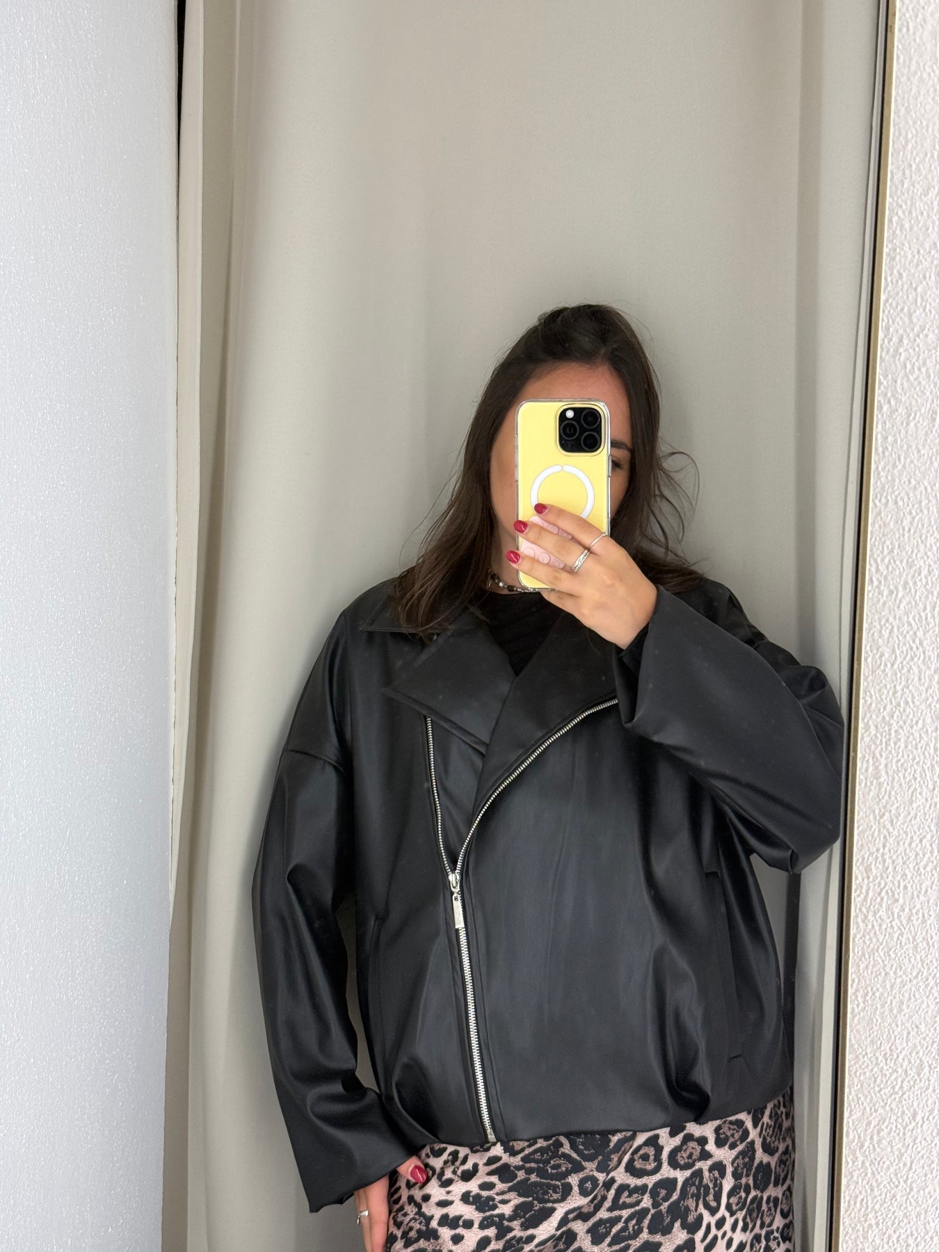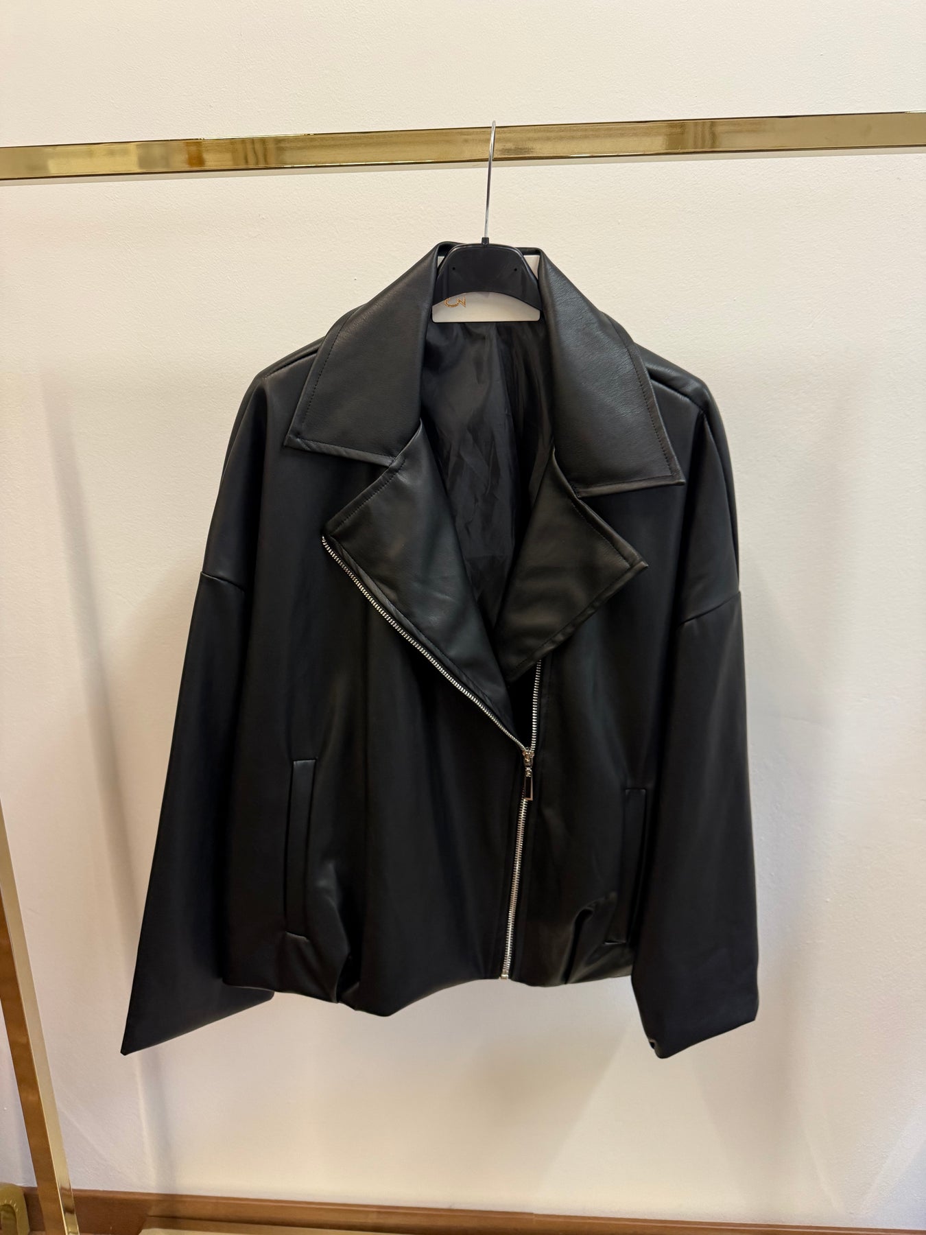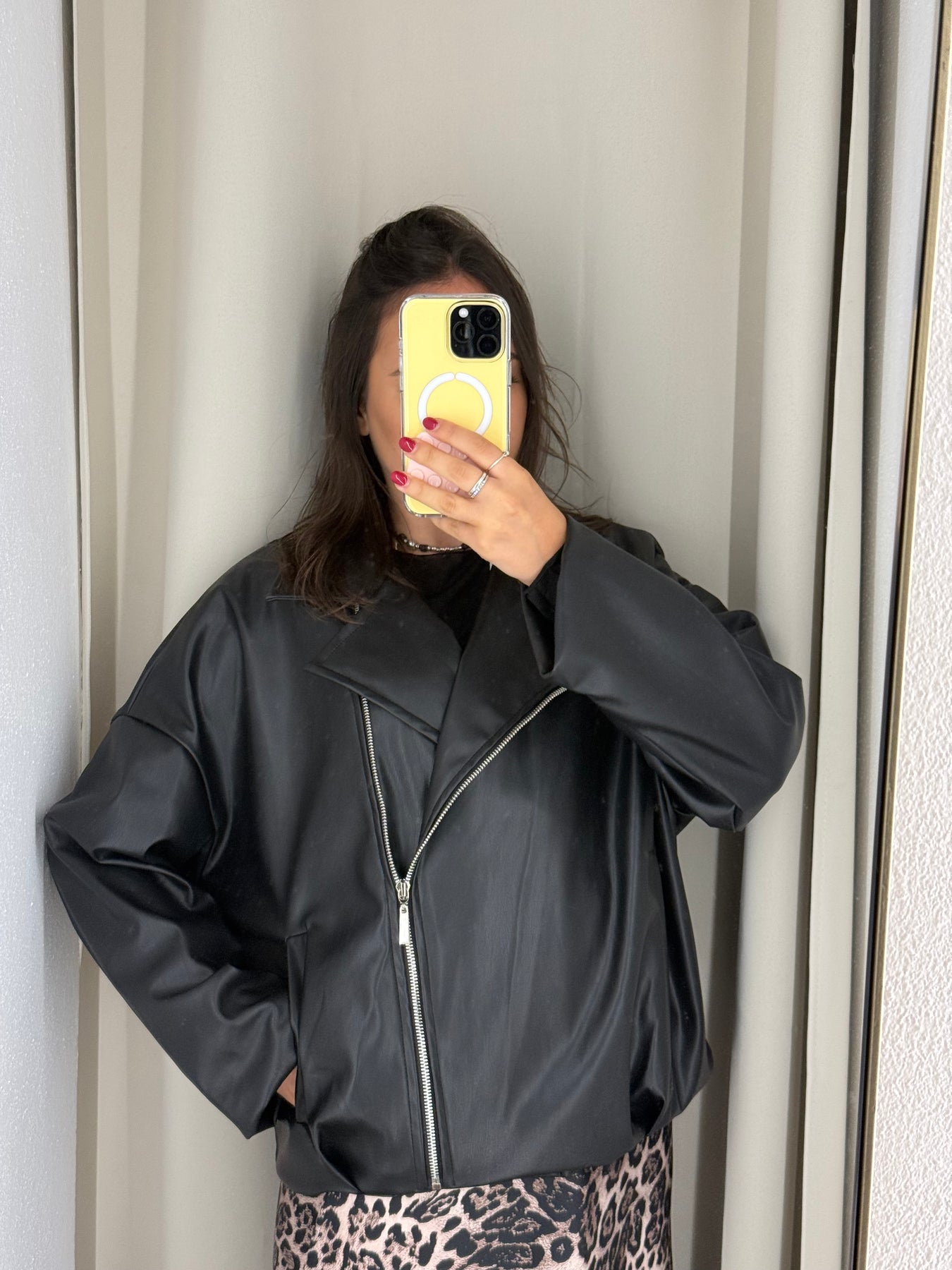 Giacca in ecopelle con taglio chiodo ma stile bomber