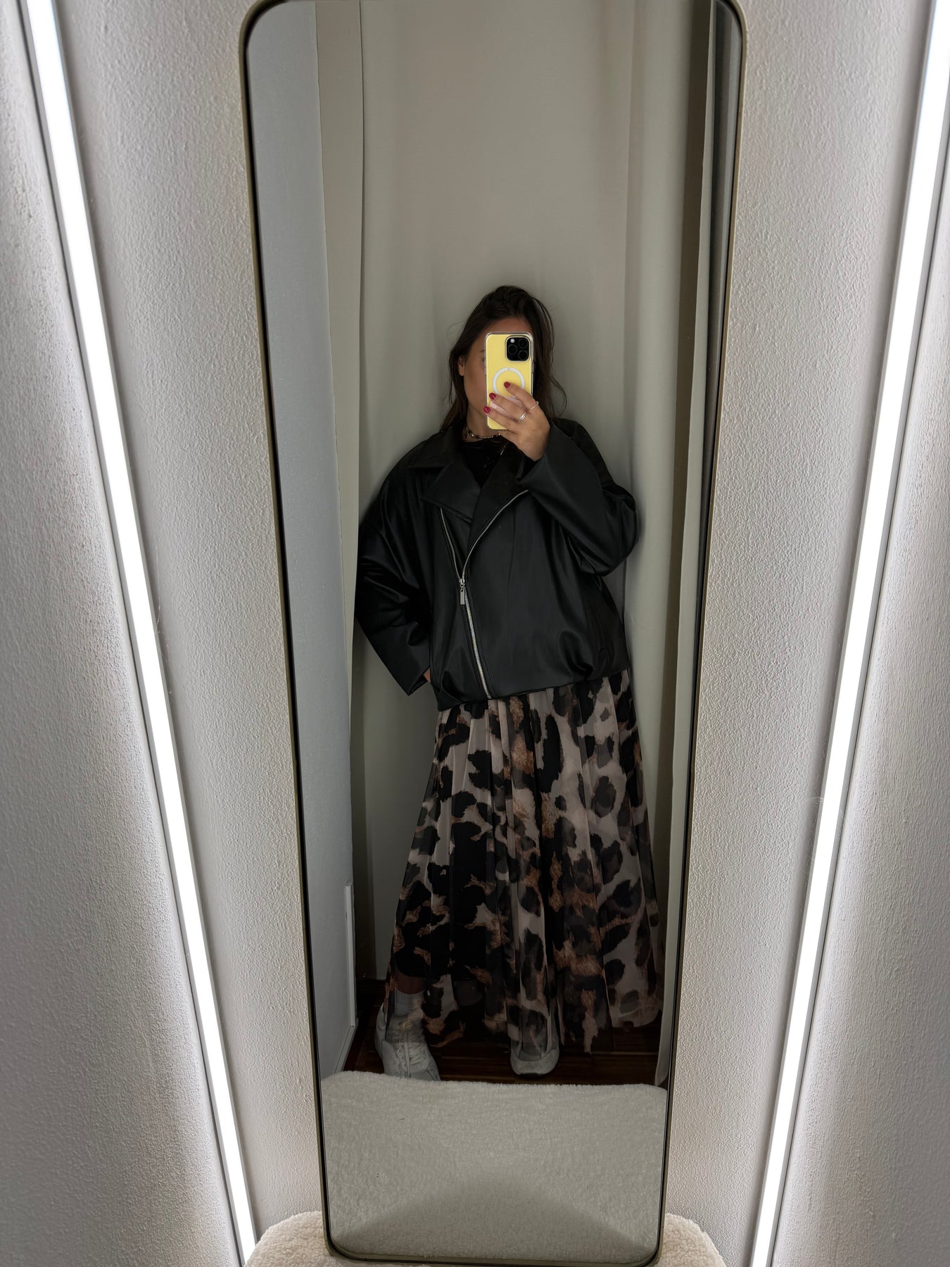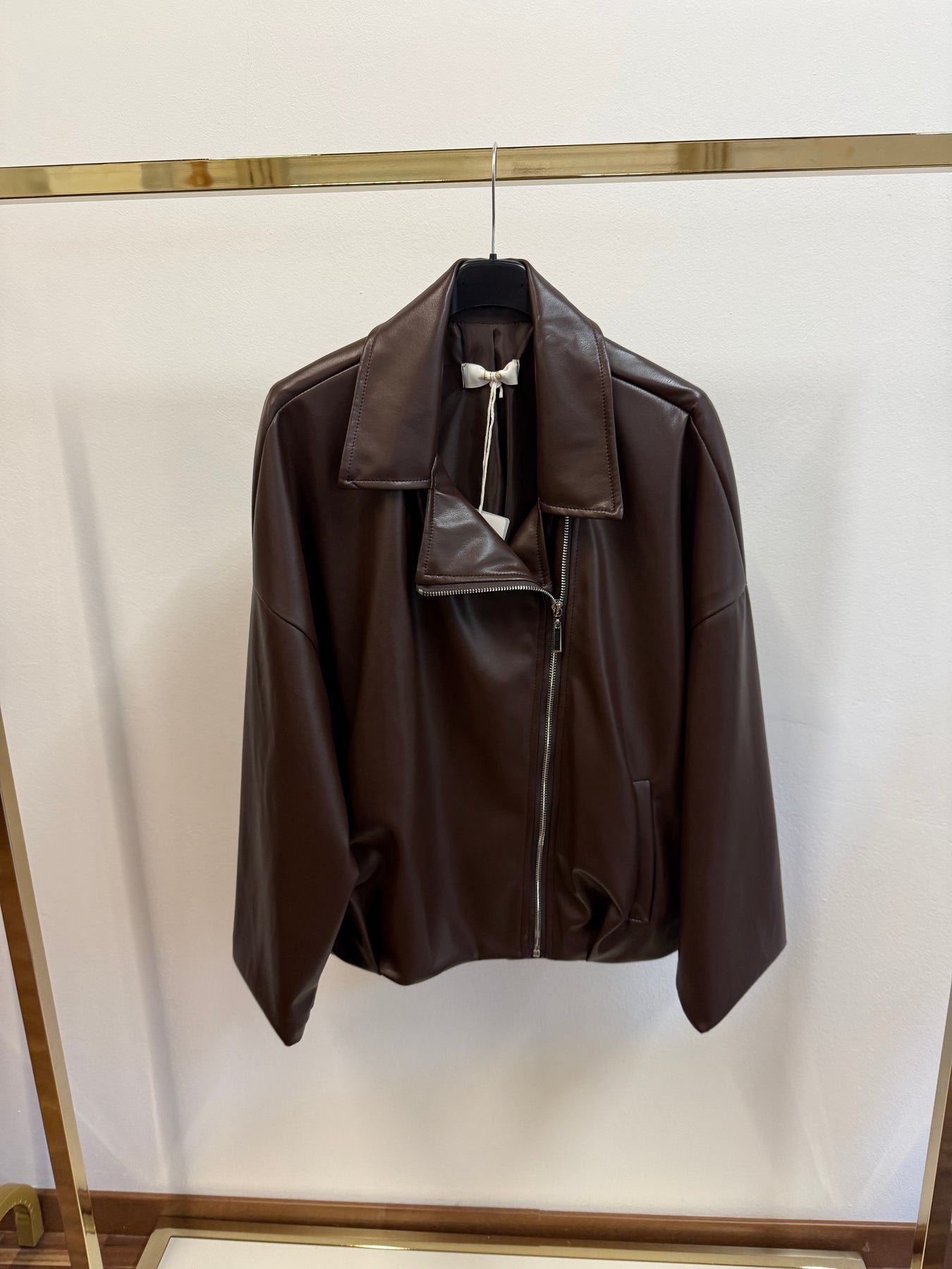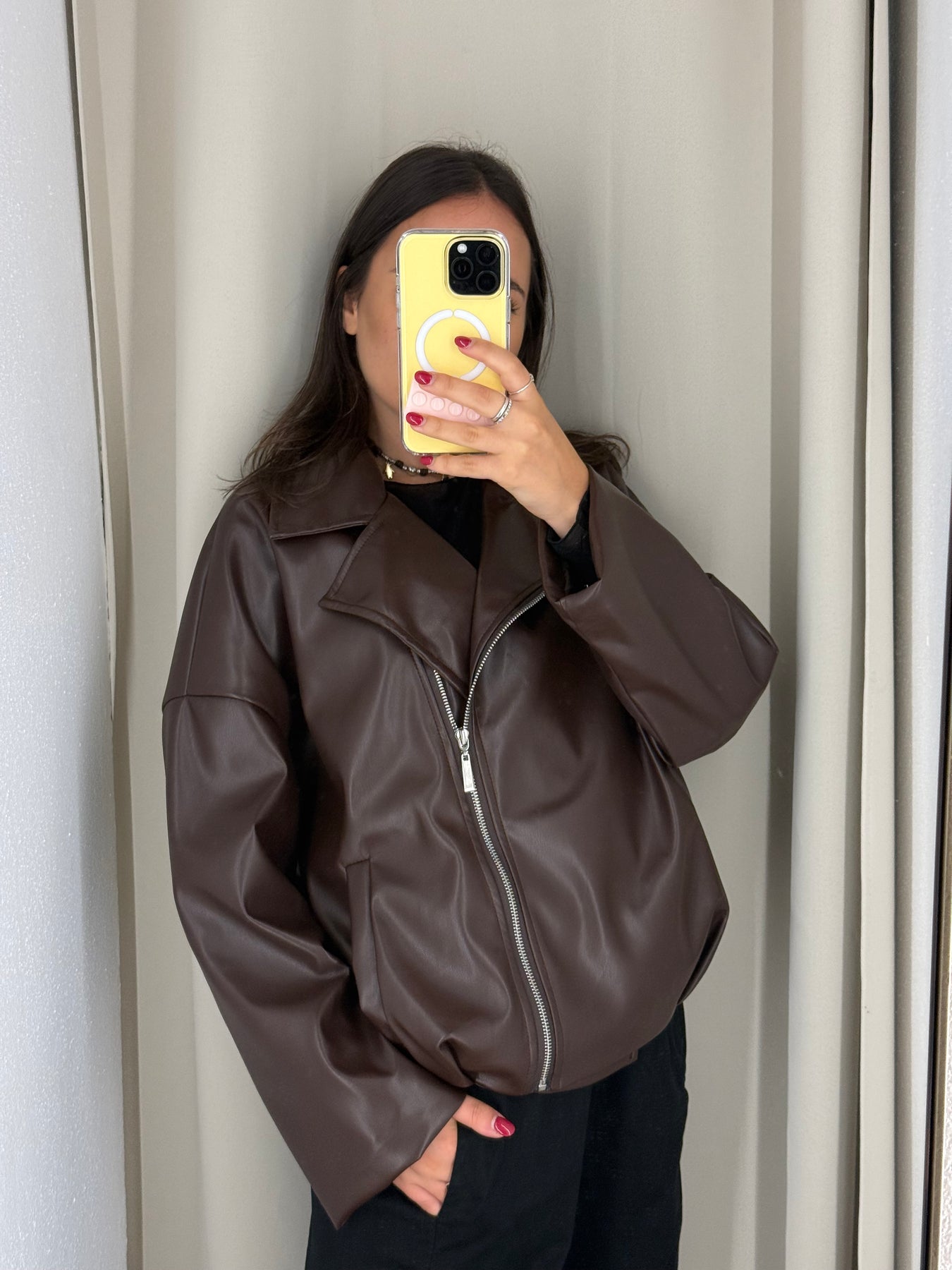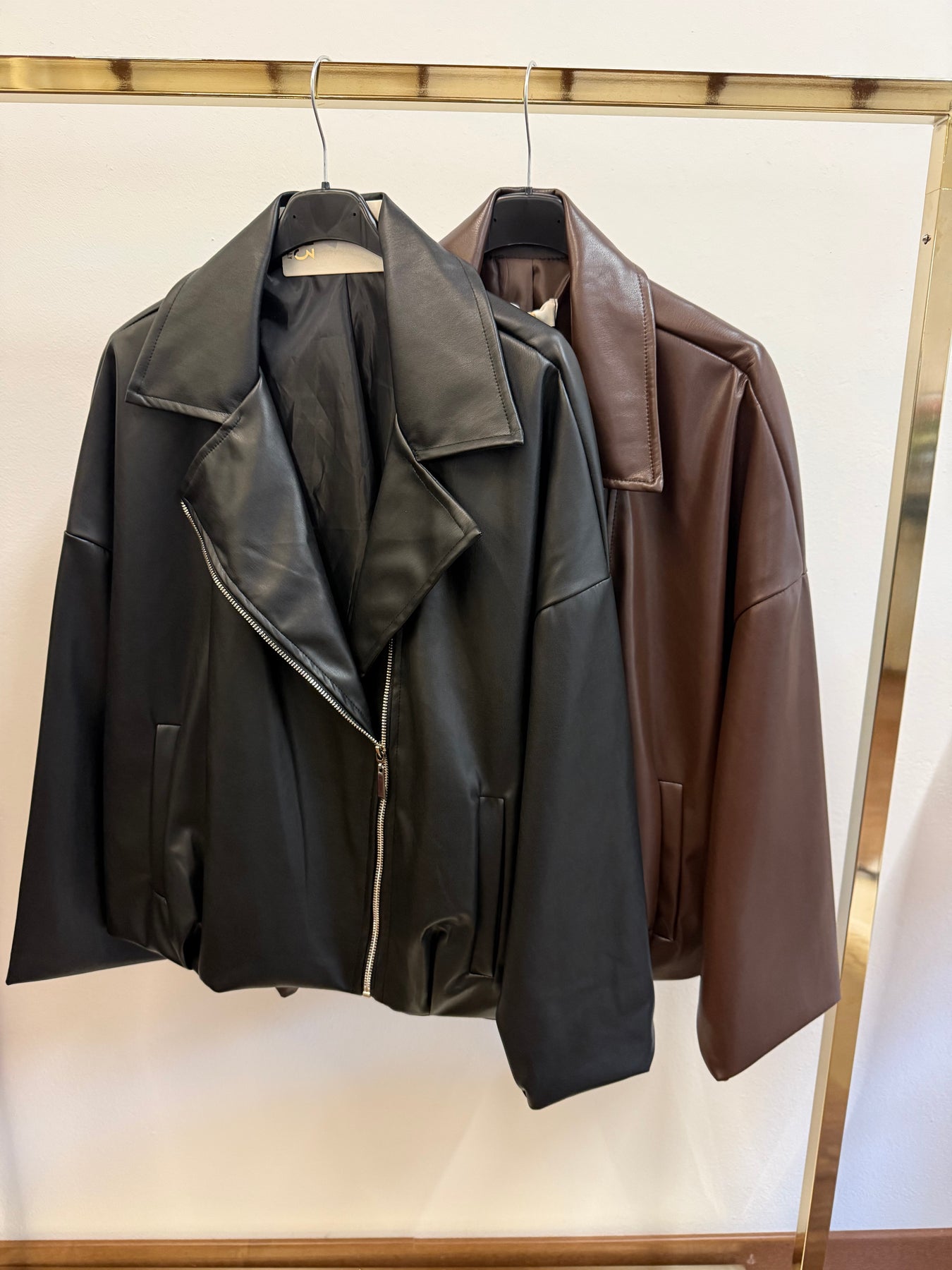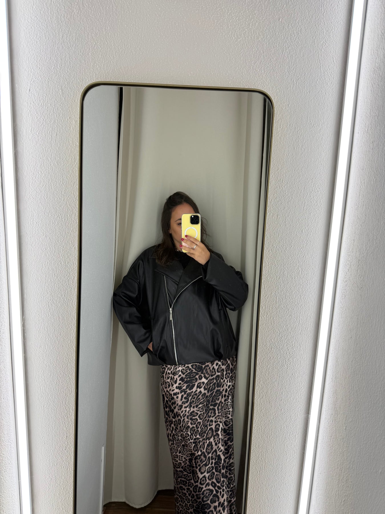 Giacca in ecopelle con taglio chiodo ma stile bomber