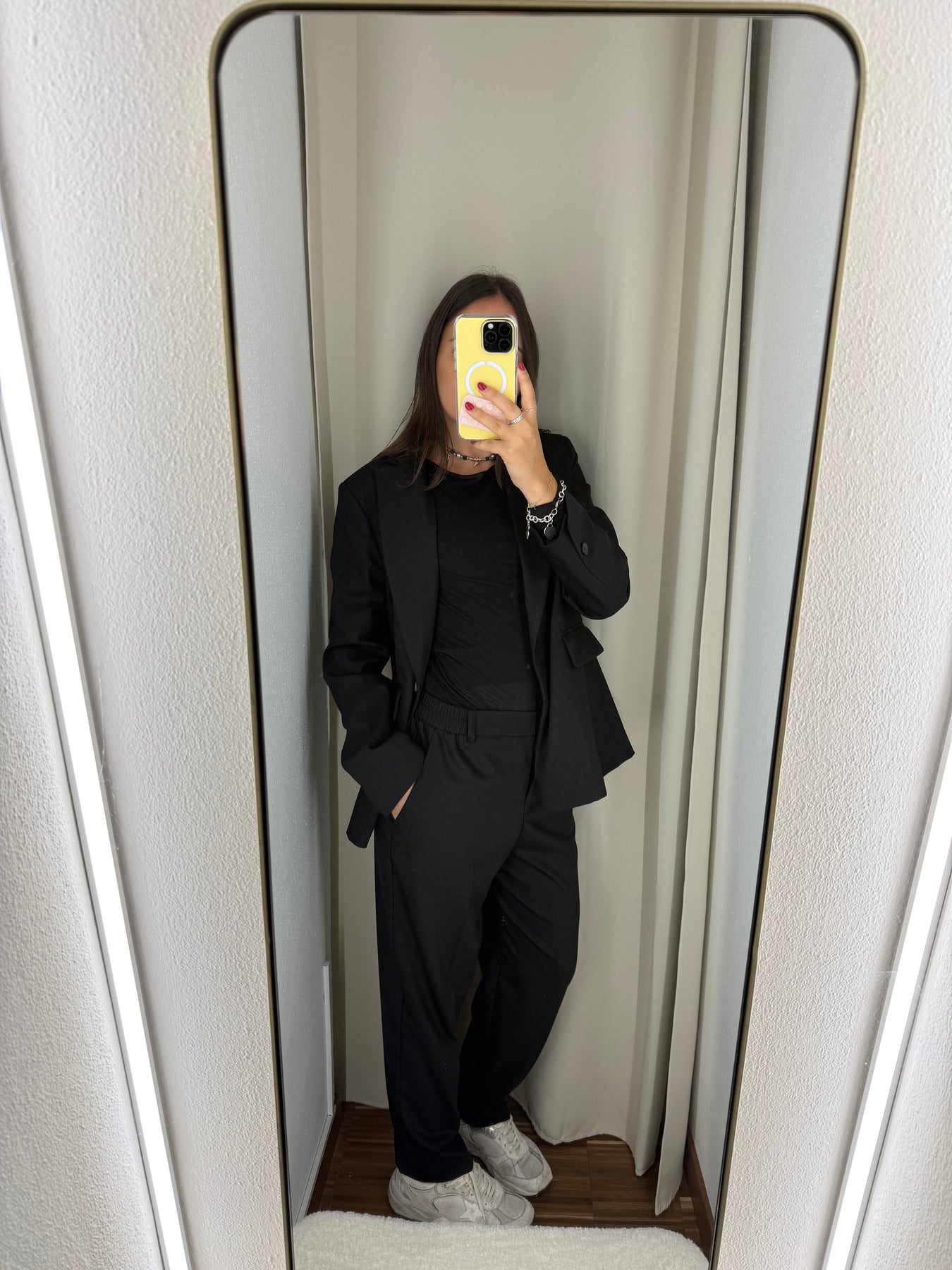 Giacca monopetto modello over foderata con bottone e taschine. Disponibile in 2 colori e in doppia taglia.